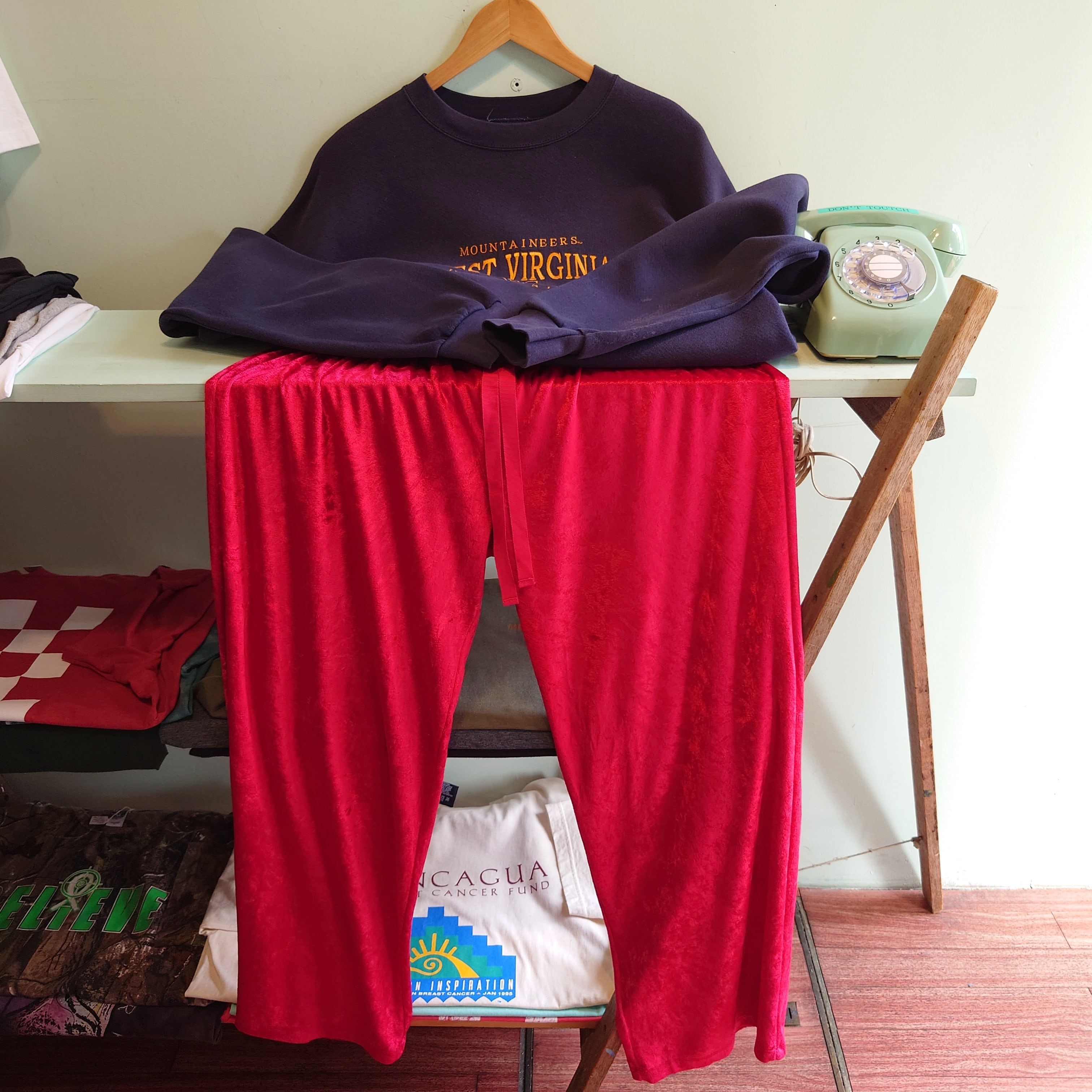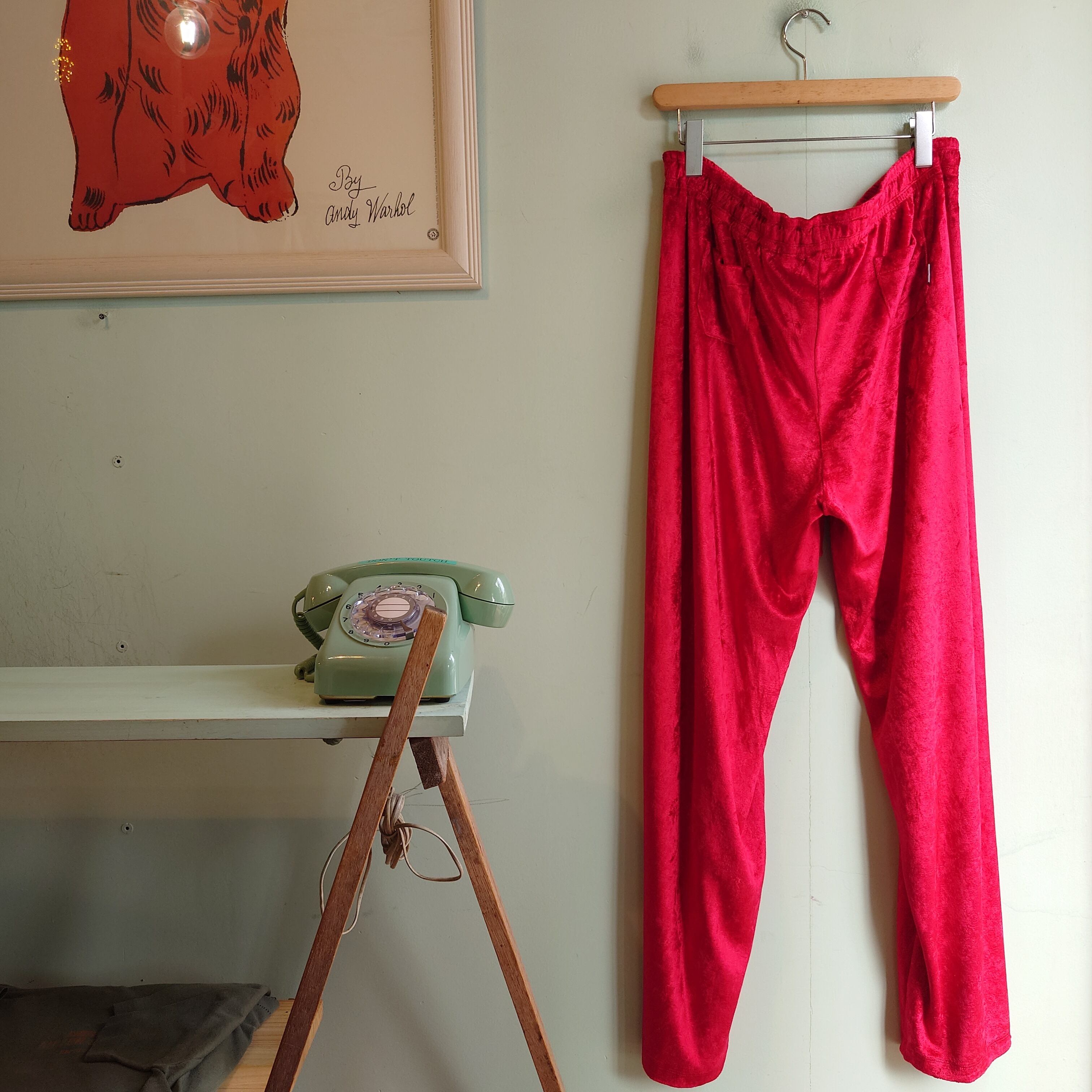 ◎DKNY 00s ベロアパンツ ベロアイージーパンツ セミフレアパンツ 赤 異素材