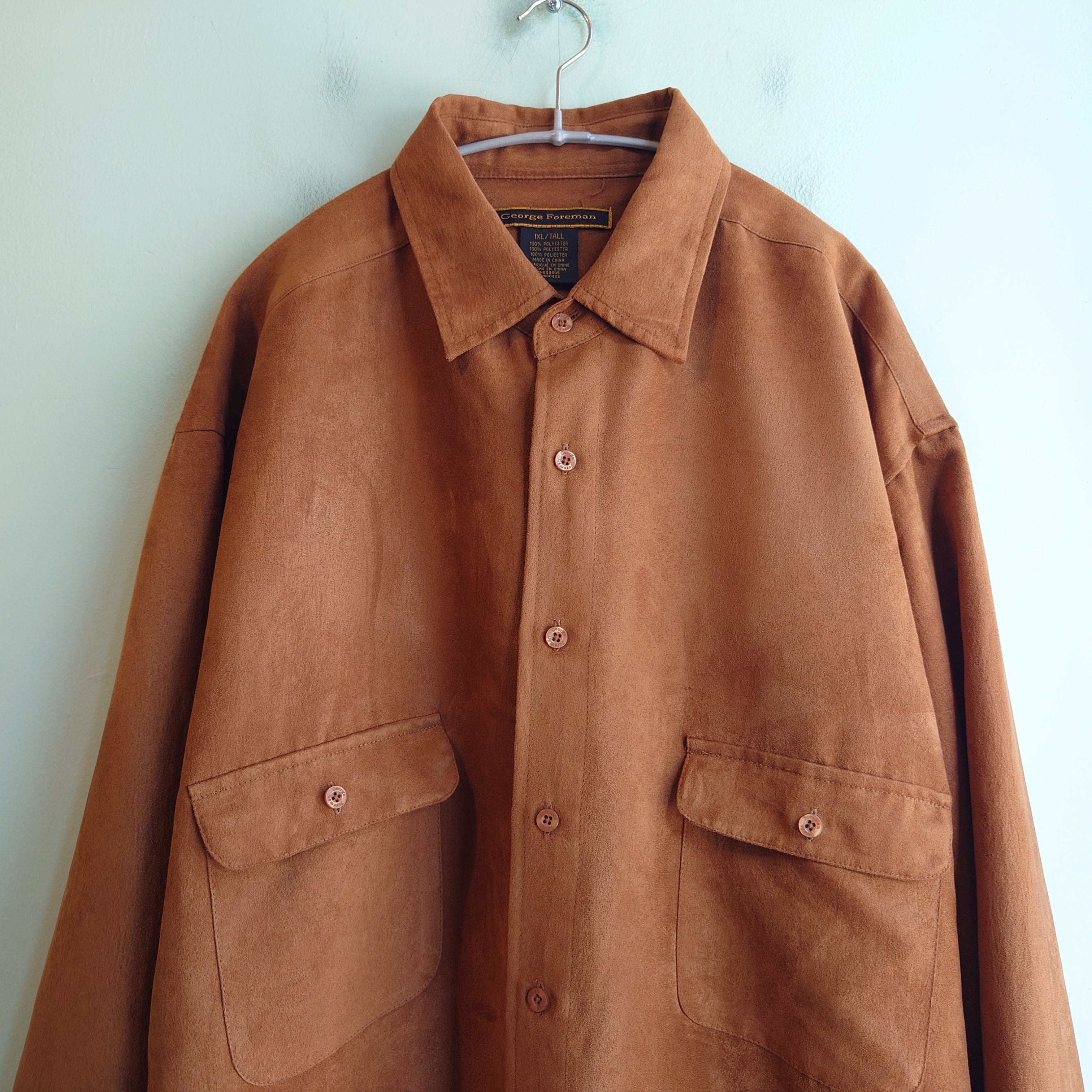 george foreman 90-00s フェイクスウェードシャツ ドレスシャツ 異素材シャツ ブラウン キャラメル XL オーバーサイズ