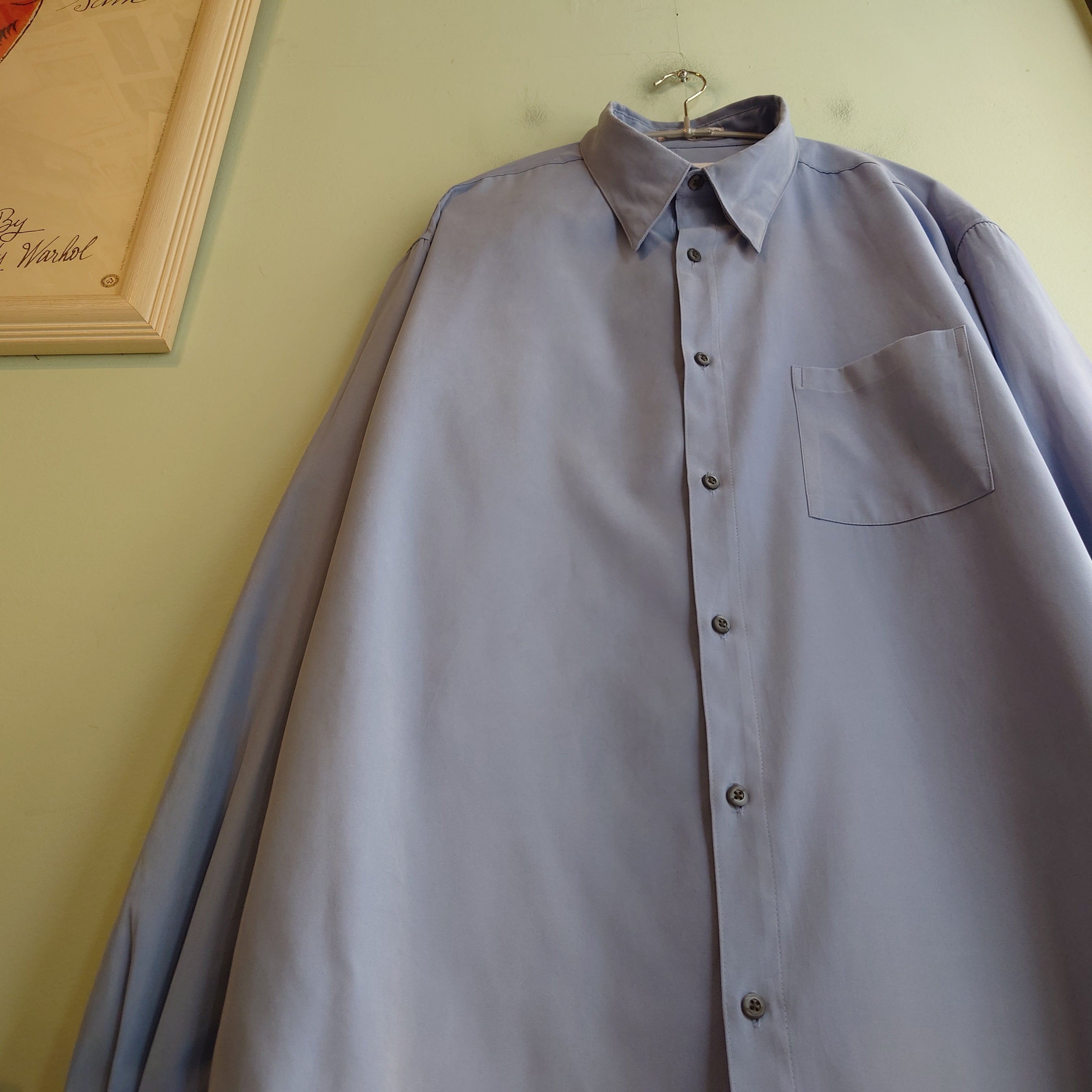 ALFANI 90-00s レアカラー フェイクスウェードシャツ ドレスシャツ 青系 L