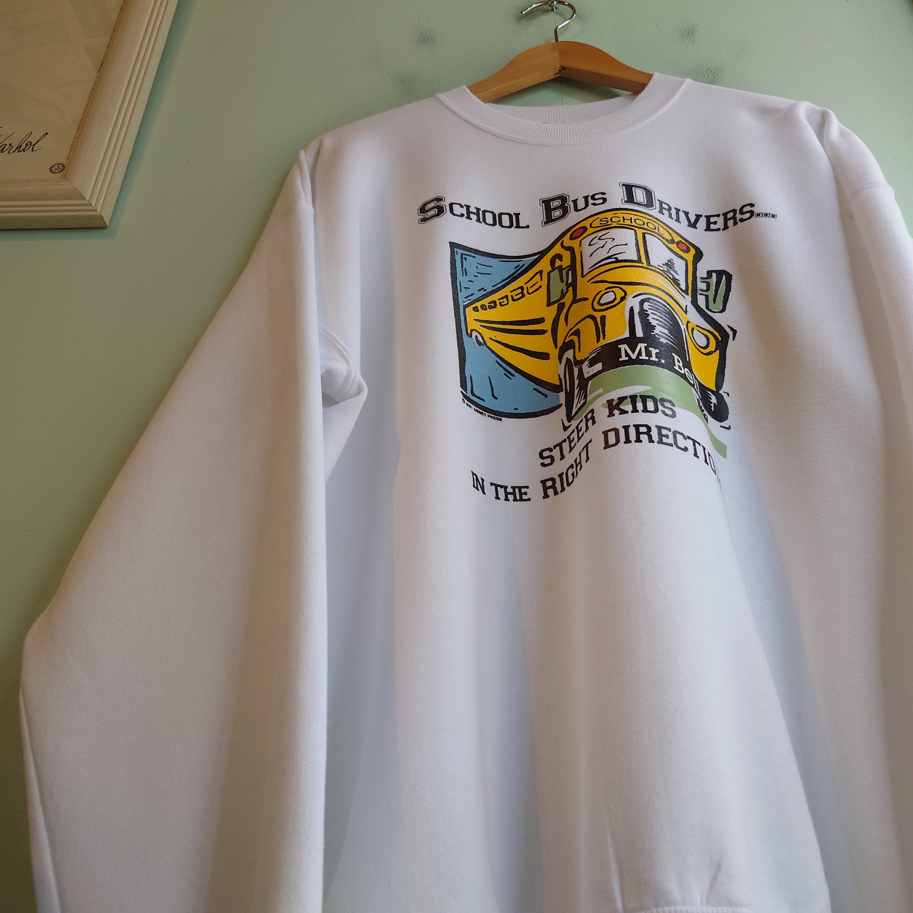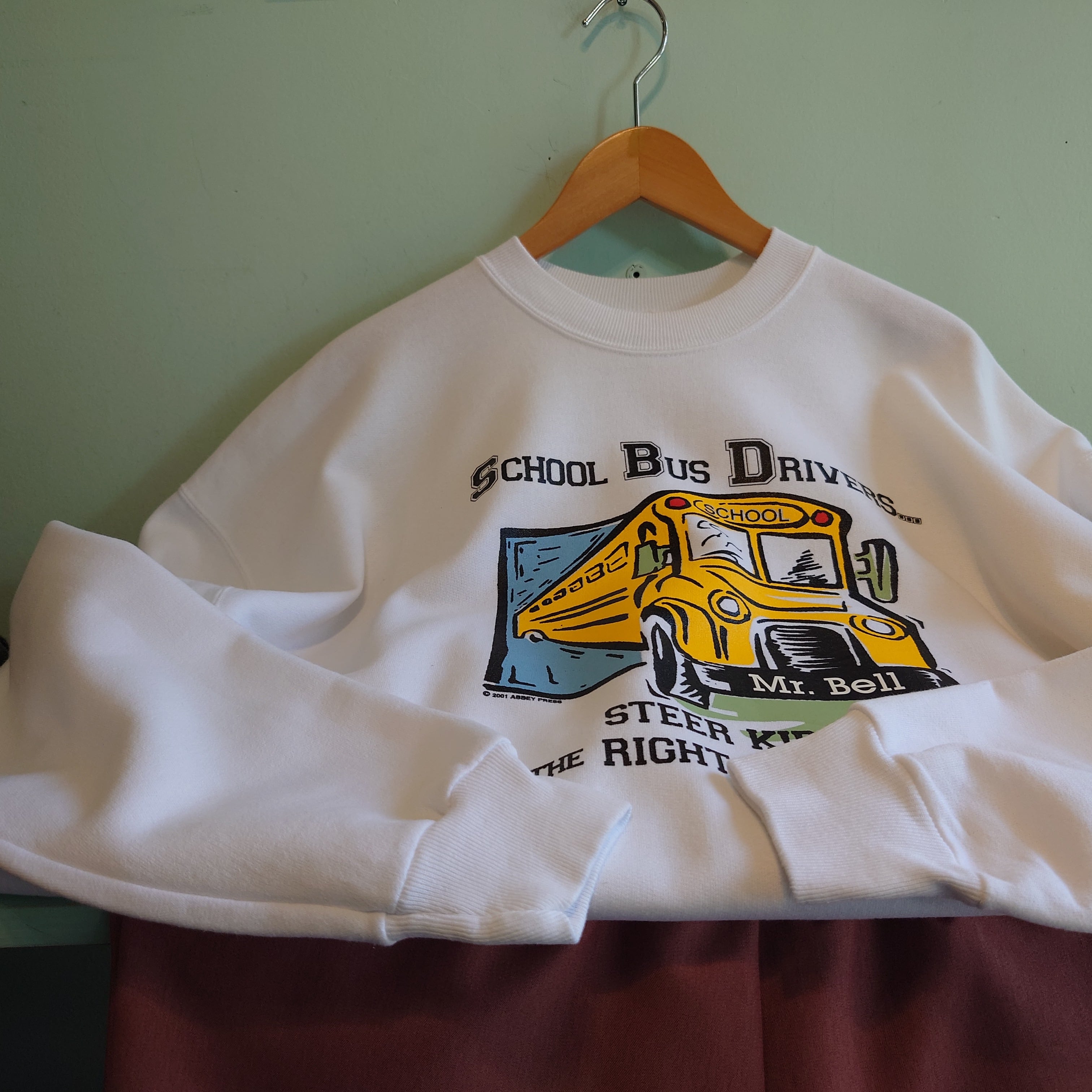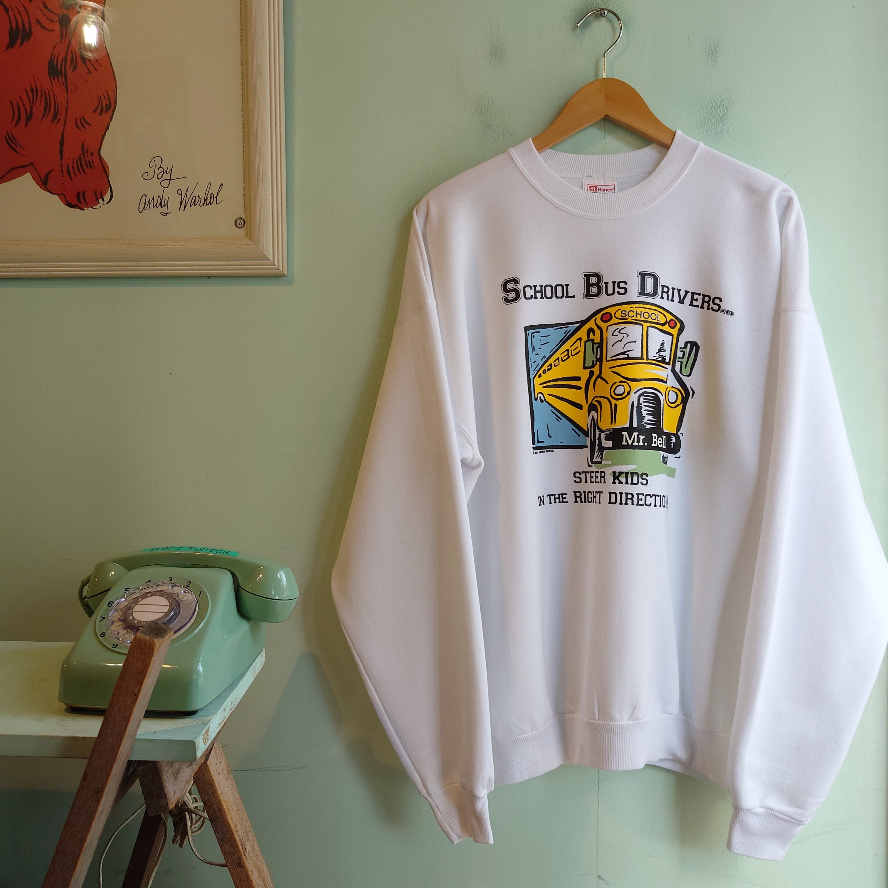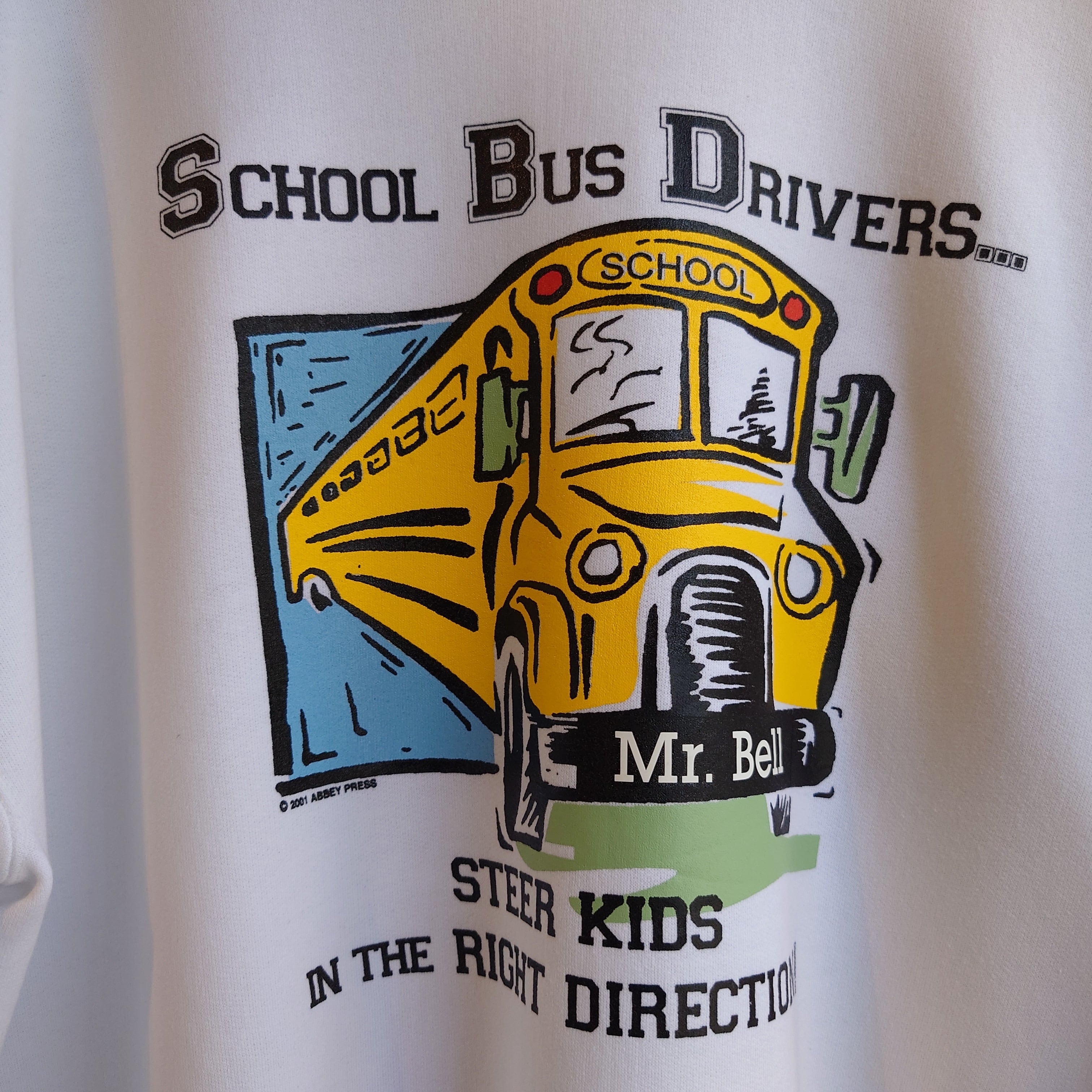 HANES 00s 2001 スクールバス柄 アートスウェット プリントスウェット XL 白