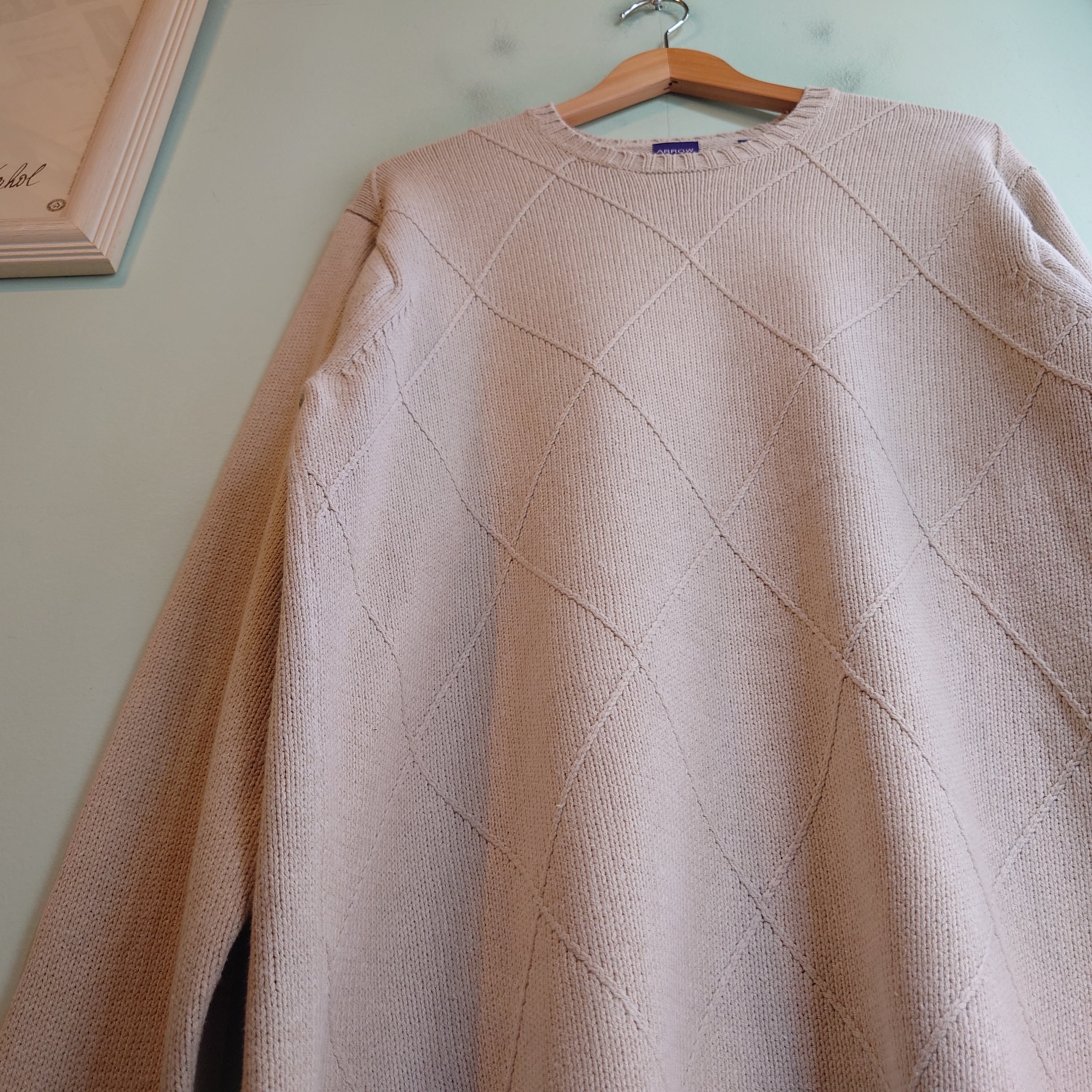 ◎ARROW 90-00s コットンニット アーガイルニット 無地セーター オフホワイト ベージュ M