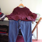 ROUNDTREE&YORK 90-00s コットンセーター デザインニット ワントーンチェック ボルドー系 L
