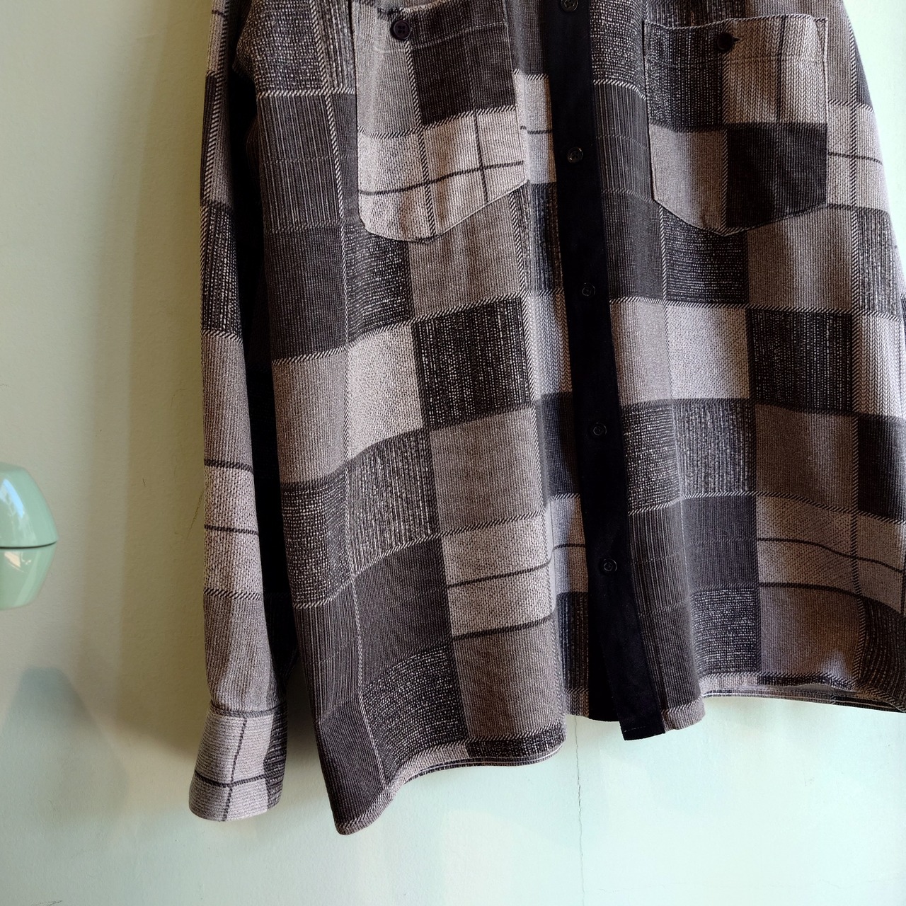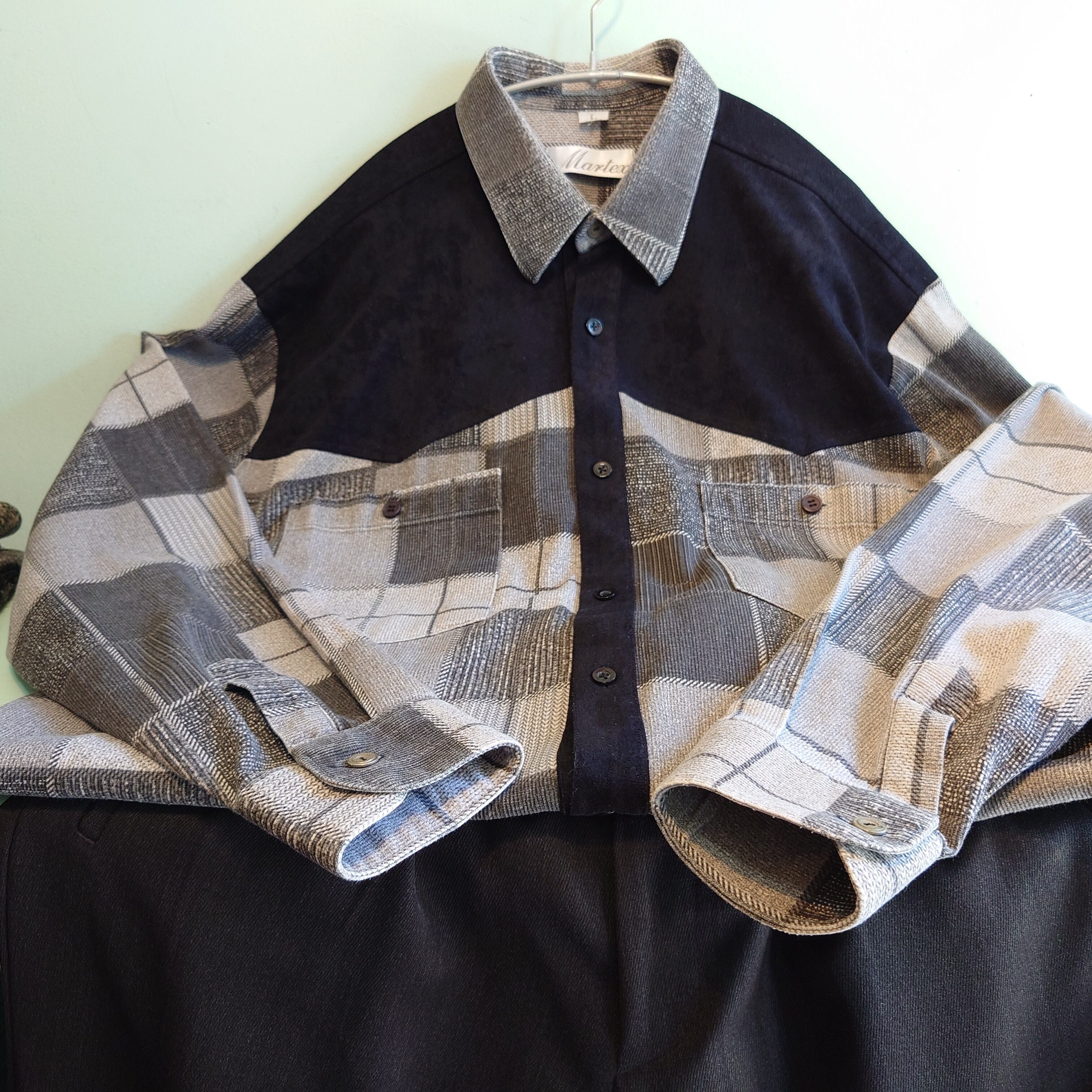 ◎Martex -90s vintage ユーロ系 マルチカラーシャツ チェックシャツ ベロア コットン 異素材 L