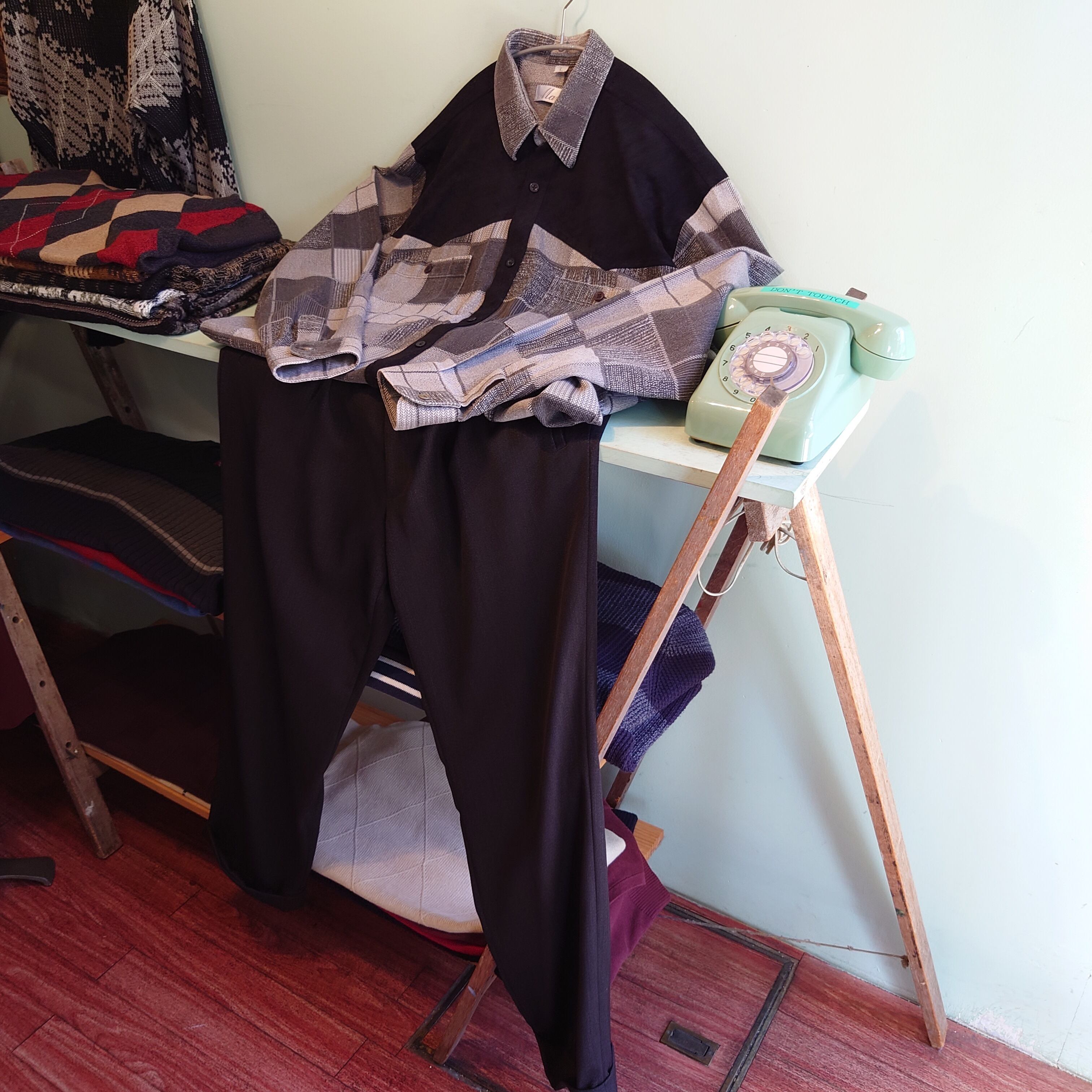 Martex -90s vintage ユーロ系 マルチカラーシャツ チェックシャツ ベロア コットン 異素材 L