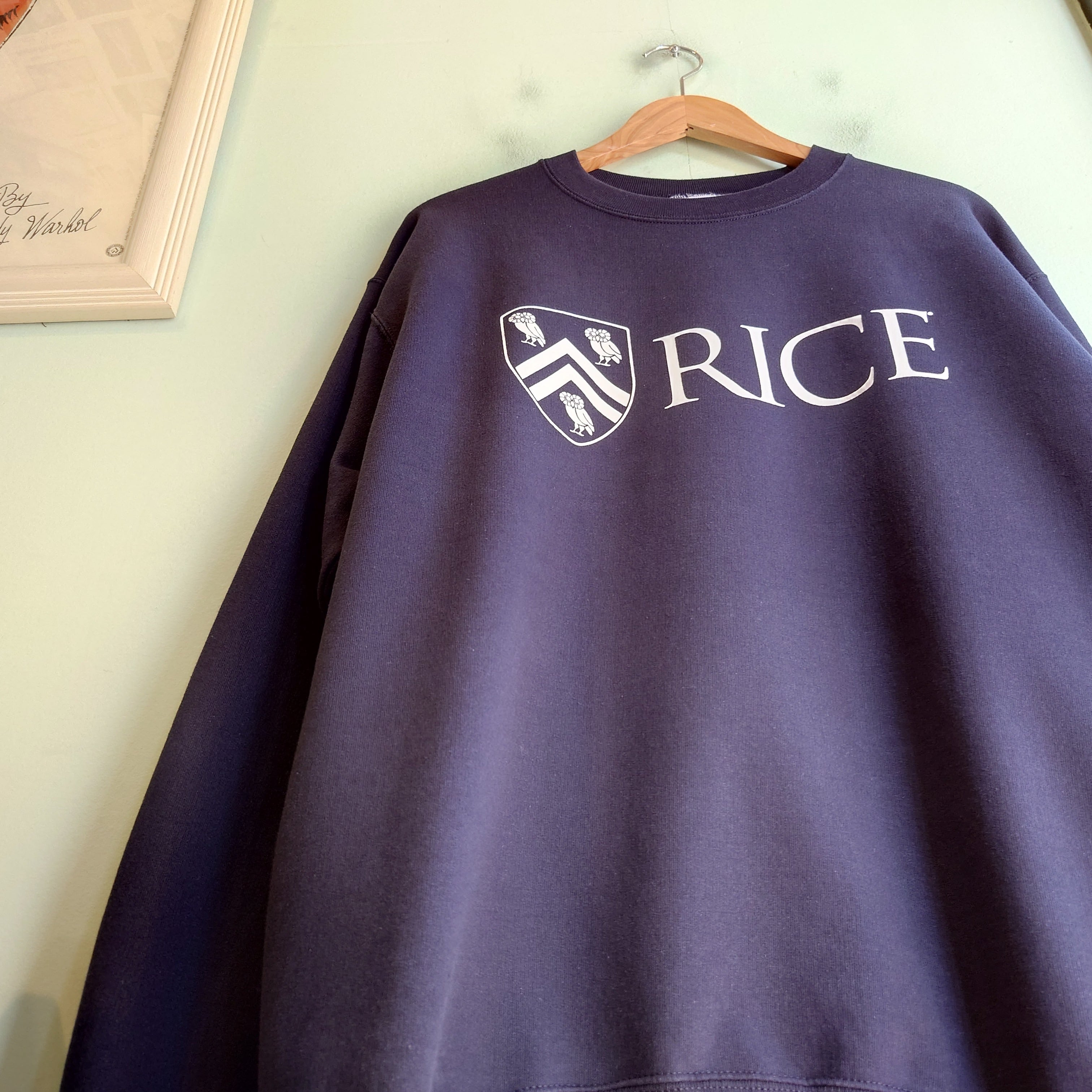 テキサス州、ライス大学のカレッジスウェット。フクロウをモチーフにしたアニマルの可愛さと、エンブレム系ならではの洗練された雰囲気が◎。Championらしくガンガン着倒してもしっかり感のあるネイビーもよし。スポーツアイテム系のカレッジとは一味違う大人っぽさもいい。