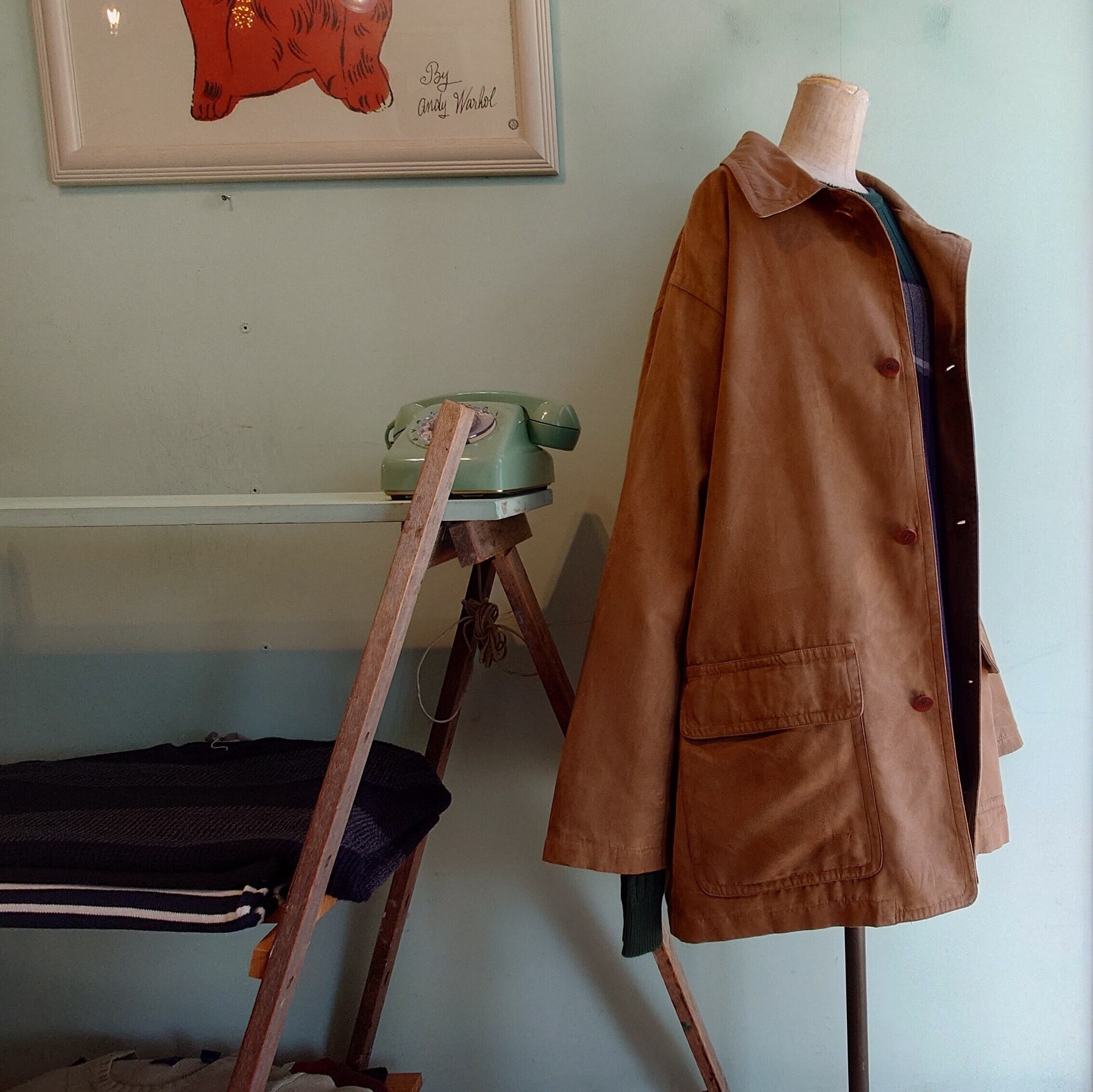 カバーオールやハンティングジャケット、フィールドジャケットをモチーフにしたハーフ丈のジャケット。このタイプでは珍しく、軽く柔らかでアニマルライクな毛並みが際立つフェイクスウェード素材が気持ち良い1枚。裏地付きながら軽くクタッと崩れるシルエットが最高。スウィングトップの気軽さと、コートの上品さ、どちらも持ち合わせたアウターです。