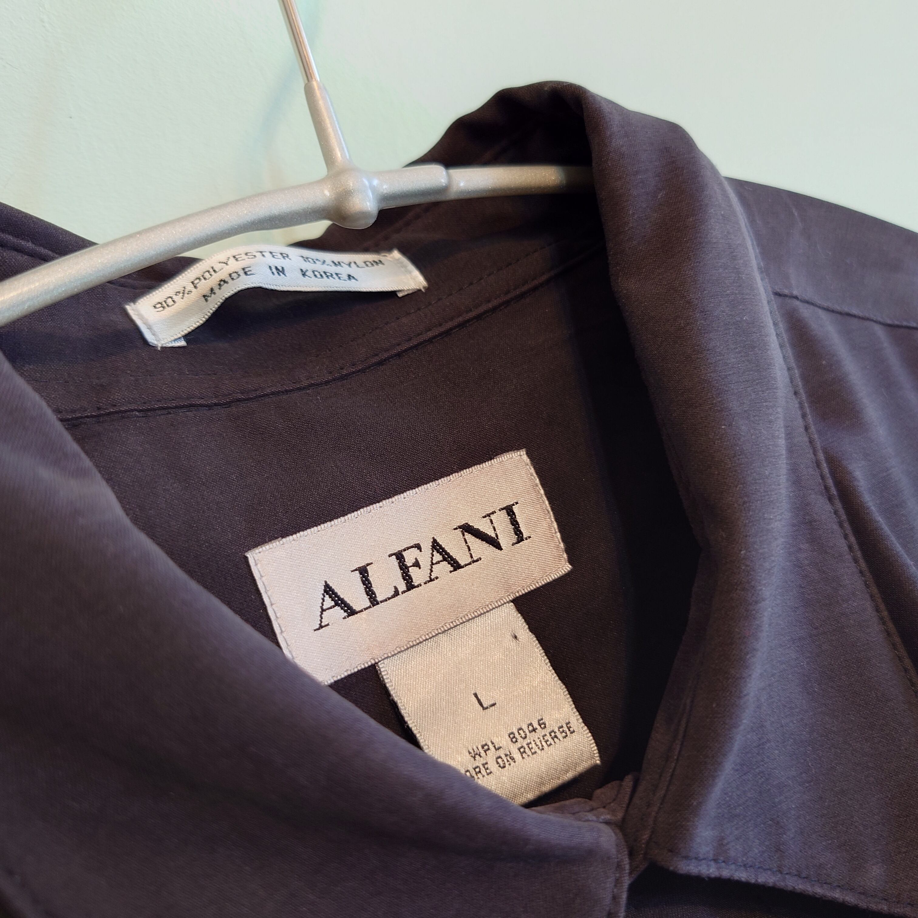 ALFANI 90-00s フェイクスウェードシャツ ドレスシャツ 黒シャツ 異素材 L