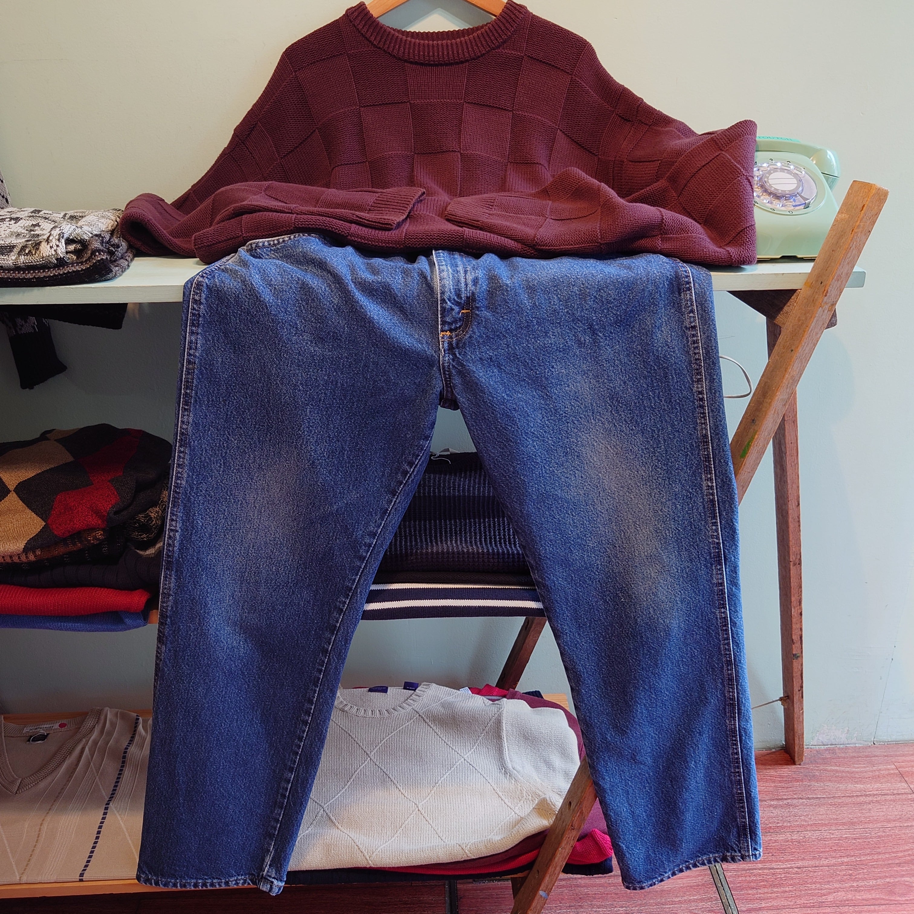 Wrangler 90-00s デニムパンツ テーパードジーンズ ワイドストレート 実寸w35-36程度