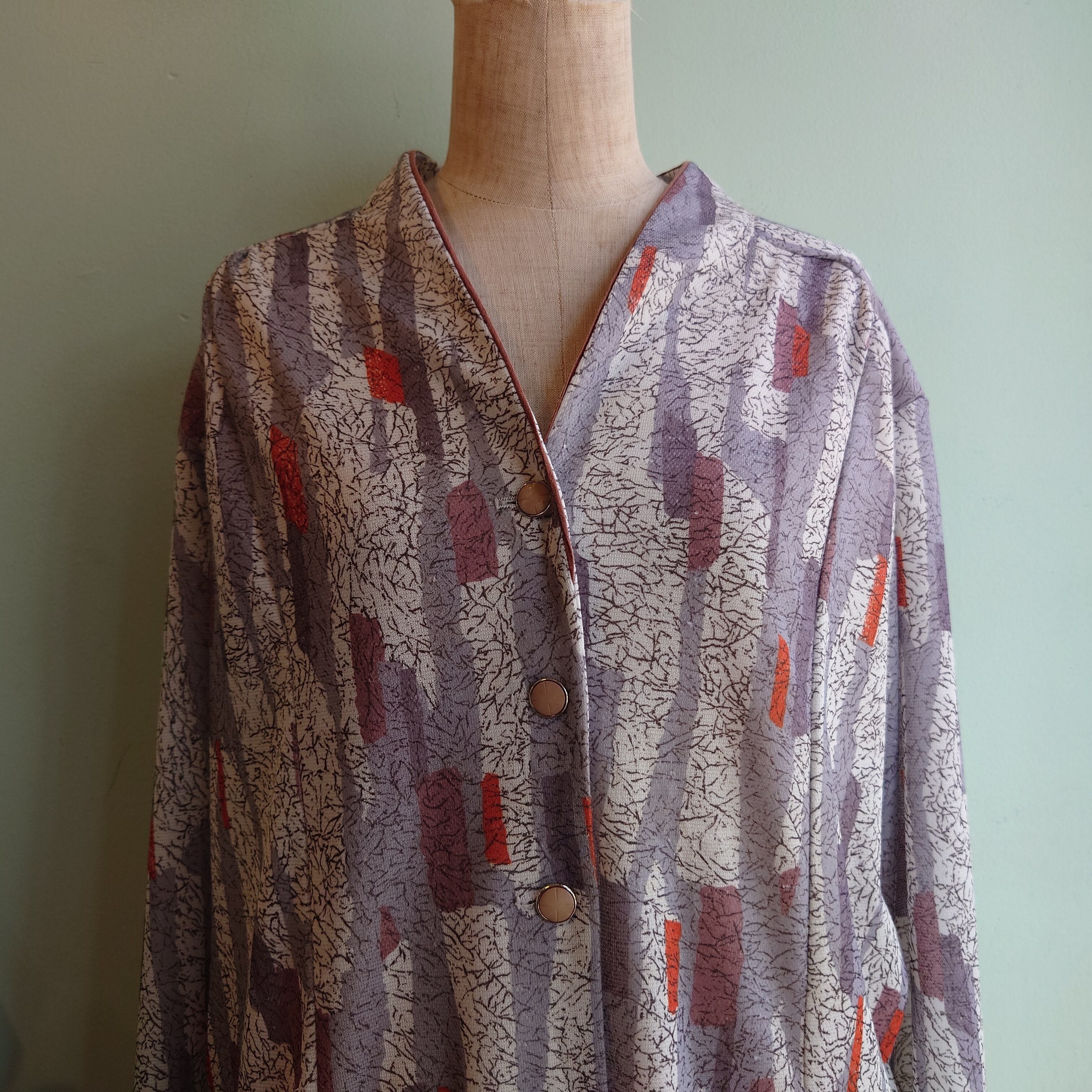 70-80s vintage ユーロ系 総柄ワンピース ヴィンテージドレス アートドレス プルオーバー 紐付き