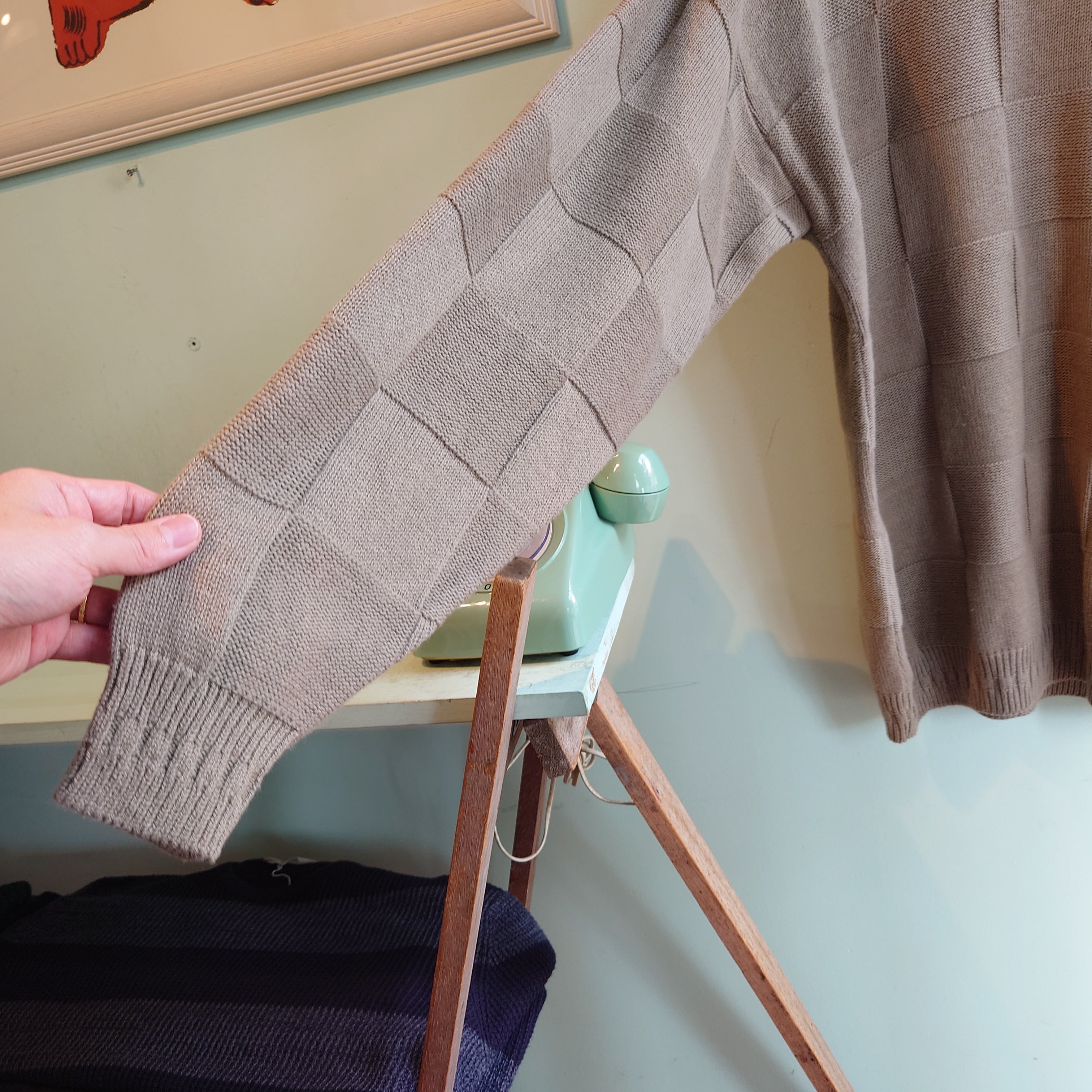 厳選素材のフードで人気の米国ペット大手"ニュートロ"のワーク系ヴィンテージニット。ベーシュ、グレージュ系のざっくりコットンは、交互の織り目でチェッカーフラッグのような立体感。袖、裾リブの効きが絶妙で、クタッとしたスウェットライクなシルエットに。ニットならではの上品さあり、ワーク系スウェットのようなラフさありのレアニット。