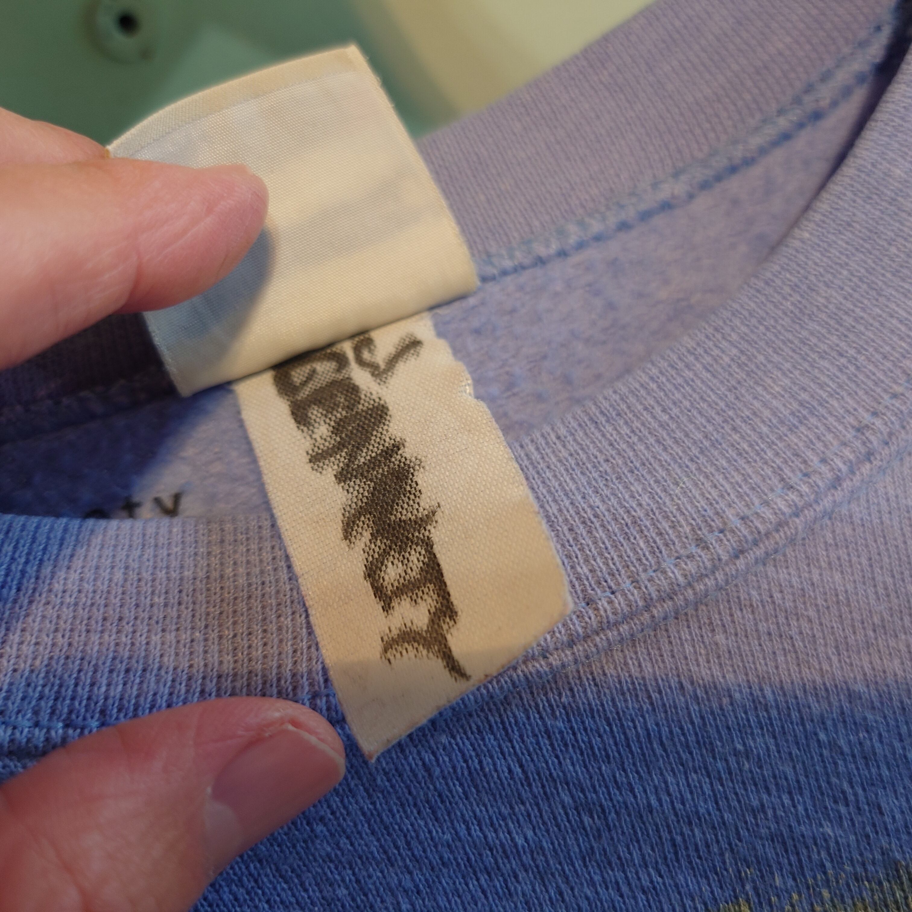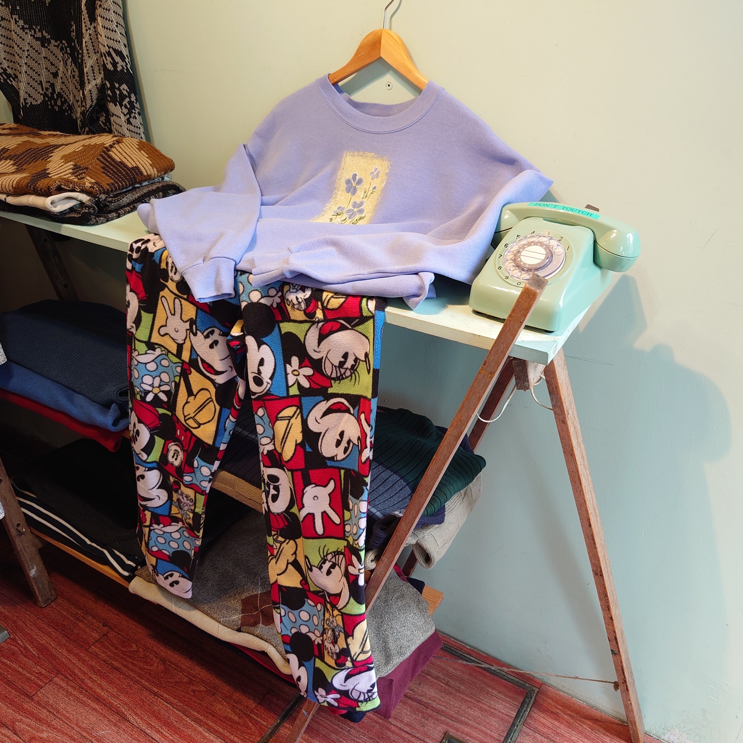 ラベンダーが退色したような、ナチュラルでペールな薄紫に、油絵のようなタッチの花がらがかわいいオールドスウェット。後ろ左肩にも花がら入りで、遊び心も十分。デコレーション/ガーリー系の中ではシンプルだけど、独特な世界感を醸し出すユニセックスな雰囲気に注目。