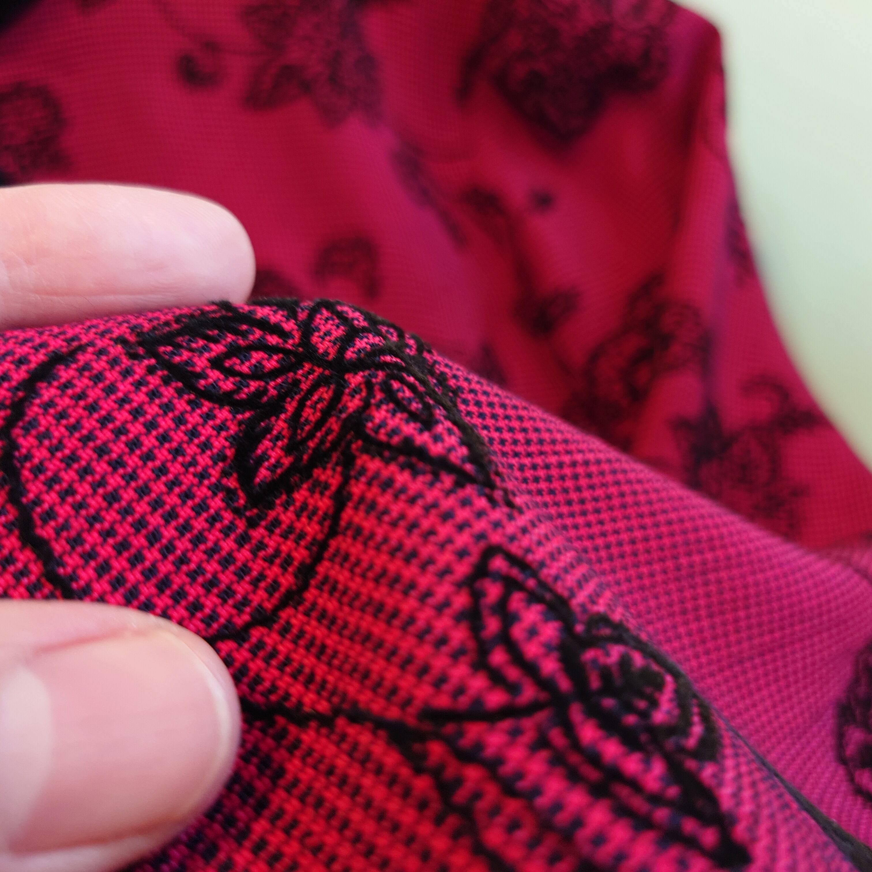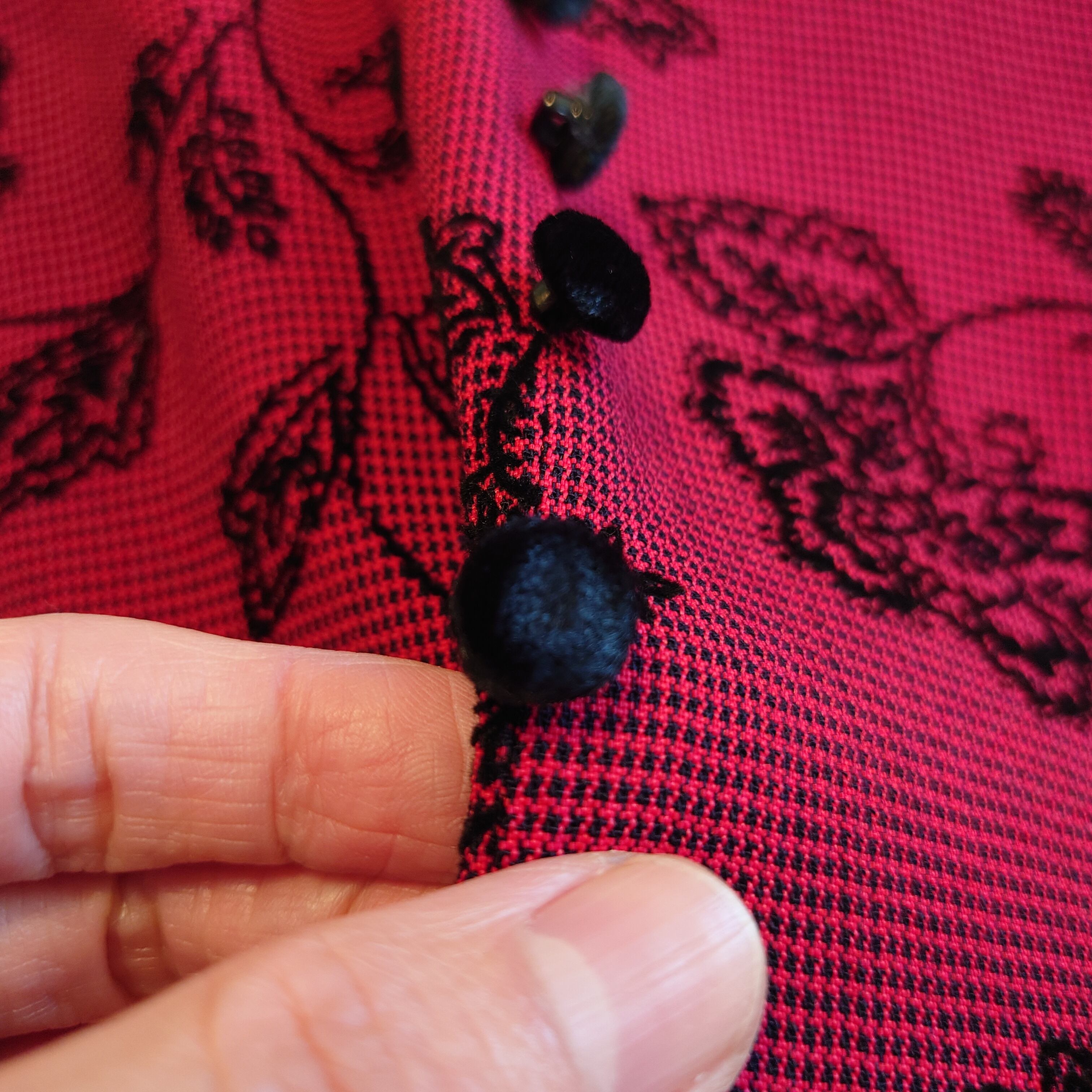 ◎positive attitude 80-90s vintage チャイナ風 ヴィンテージドレス 総柄ワンピース USA製 赤系