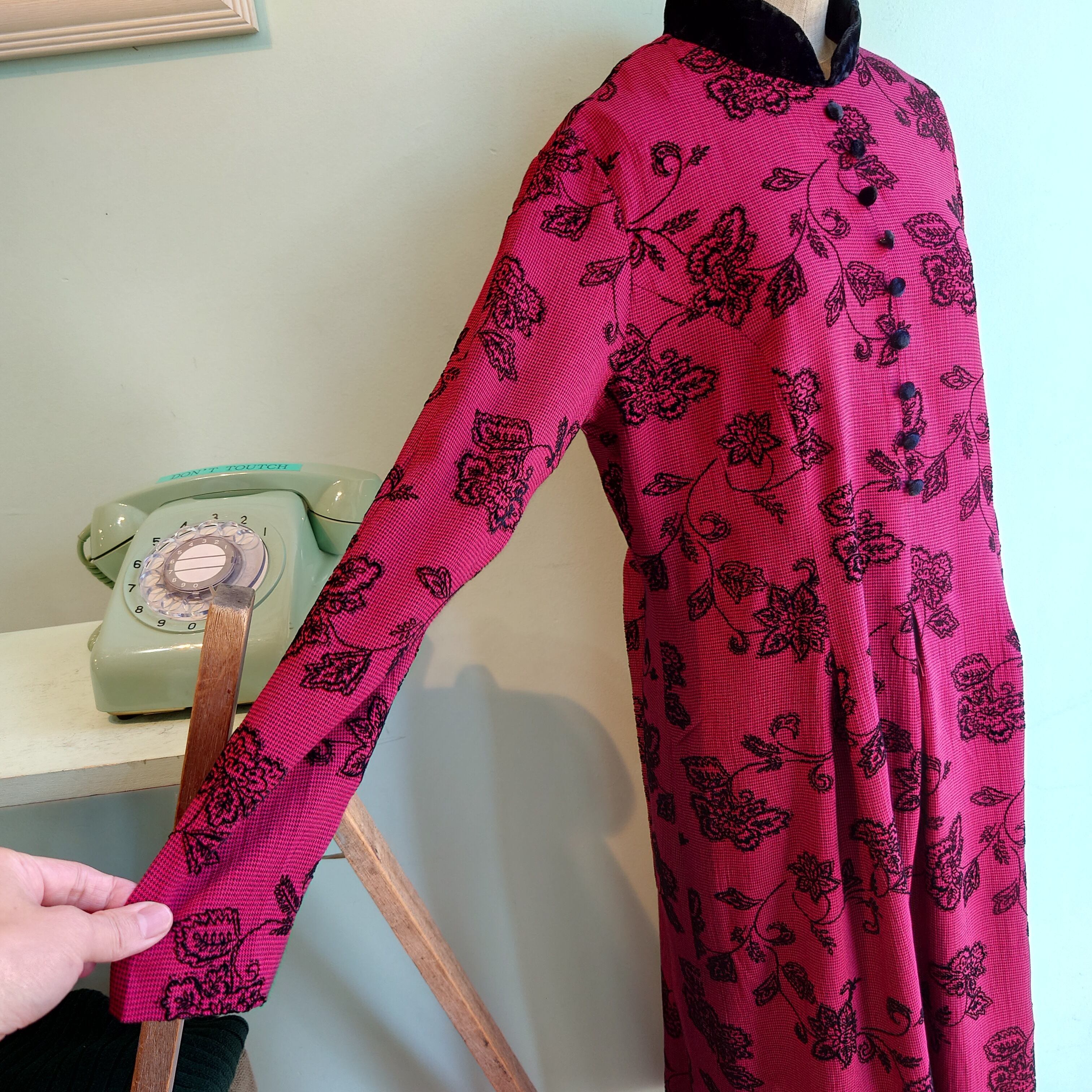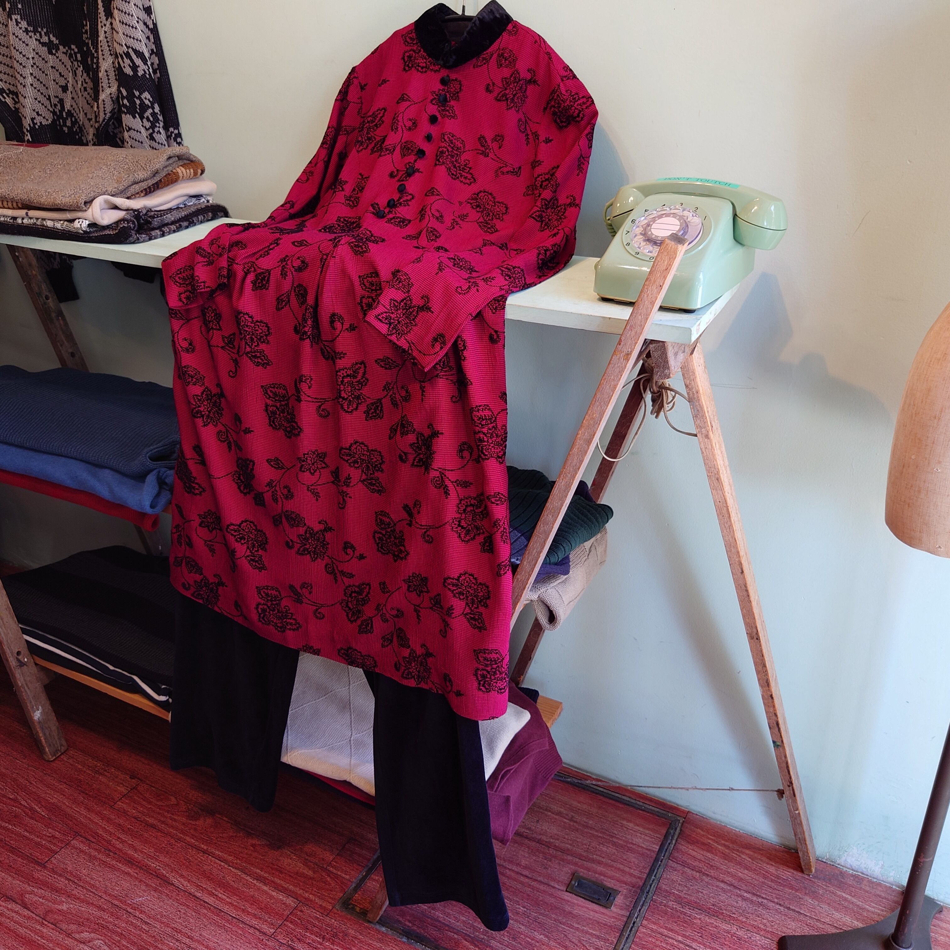 positive attitude 80-90s vintage チャイナ風 ヴィンテージドレス 総柄ワンピース USA製 赤系