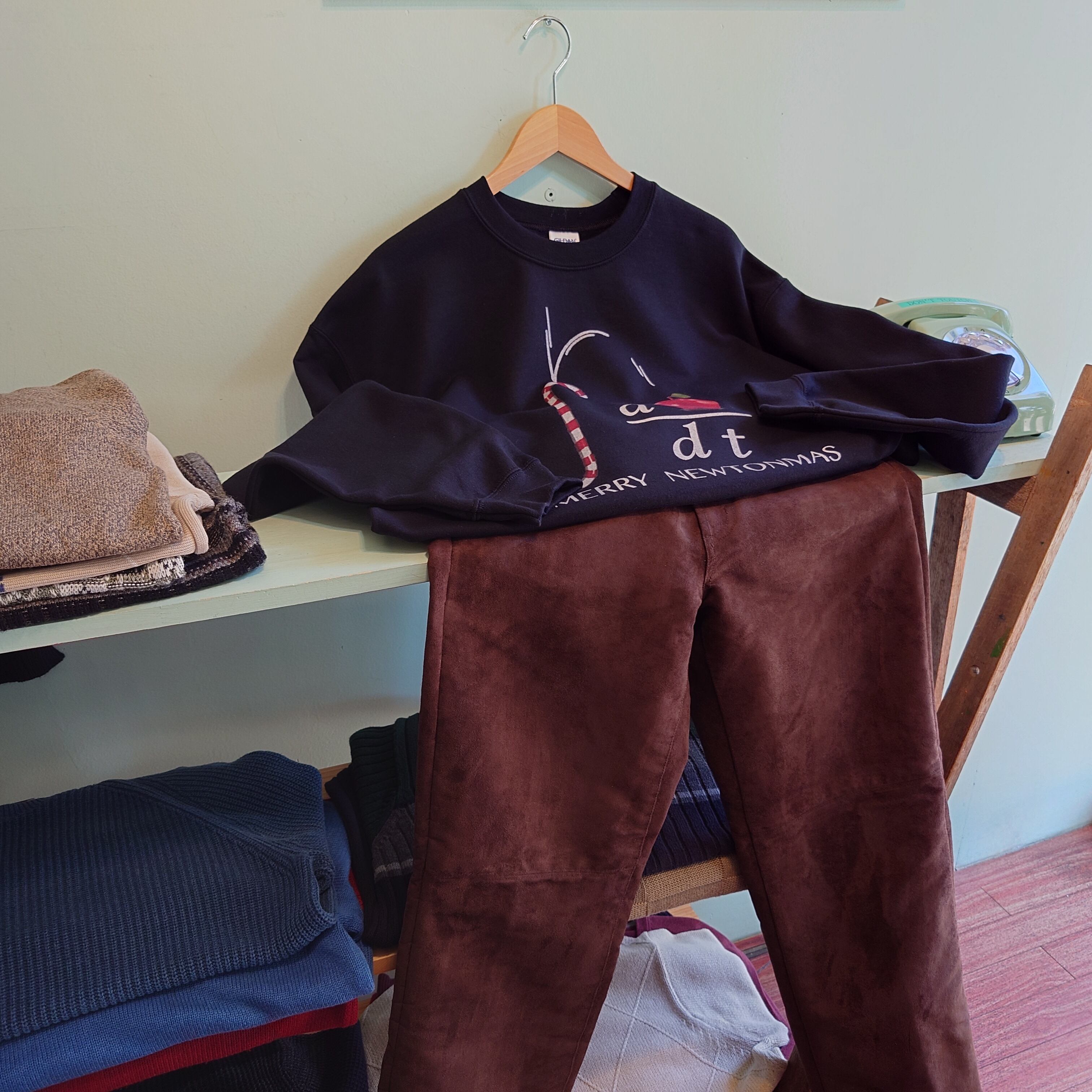 アイザック・ニュートンがクリスマス生まれなのをかけて、実際に英、米で行われる科学者の祭典"ニュートンマス"のデザインスウェット。万有引力の数式をモチーフに、コミカルなタッチのアートが可愛すぎる。デザイン良し、モノとしてのストーリーも抜群のスウェット。
