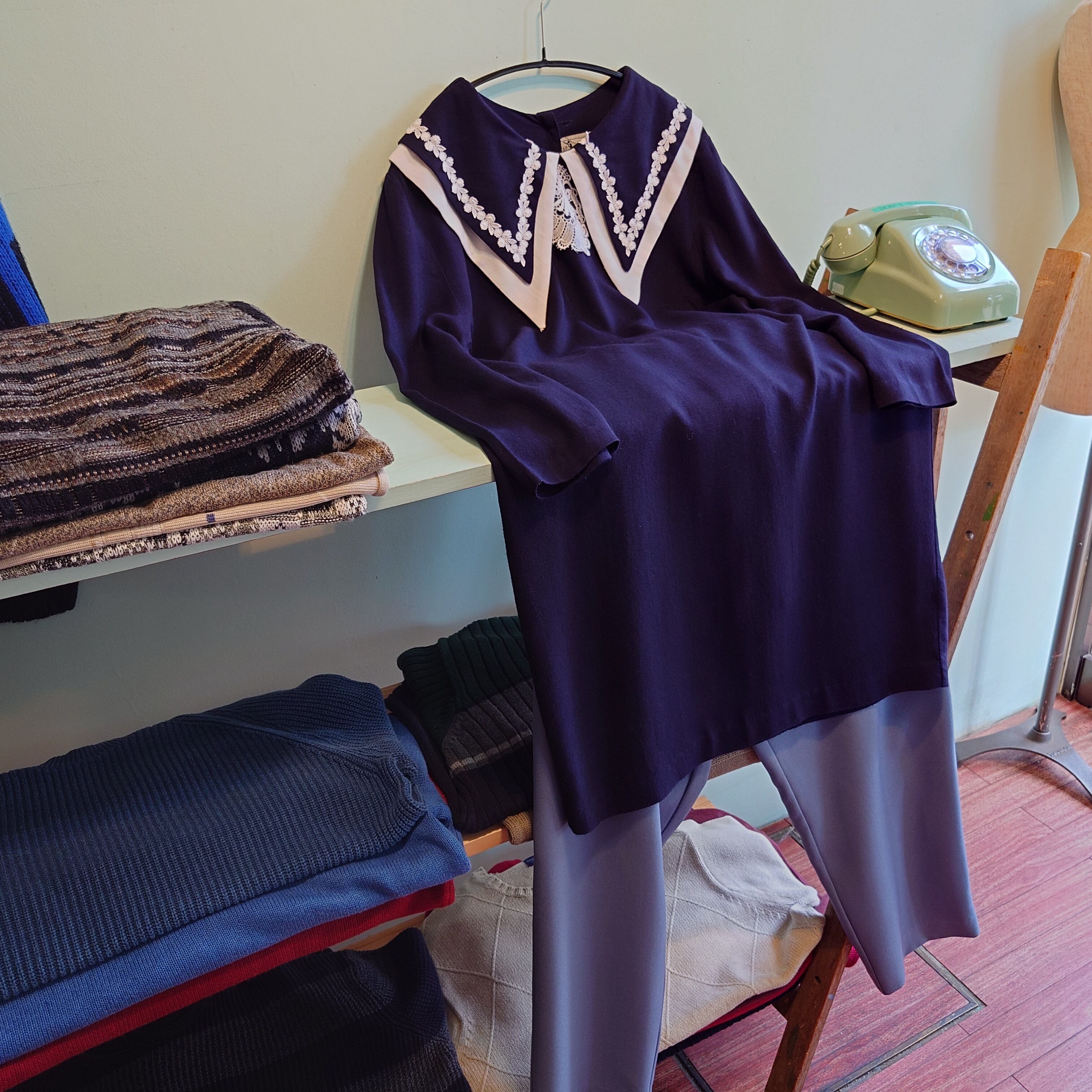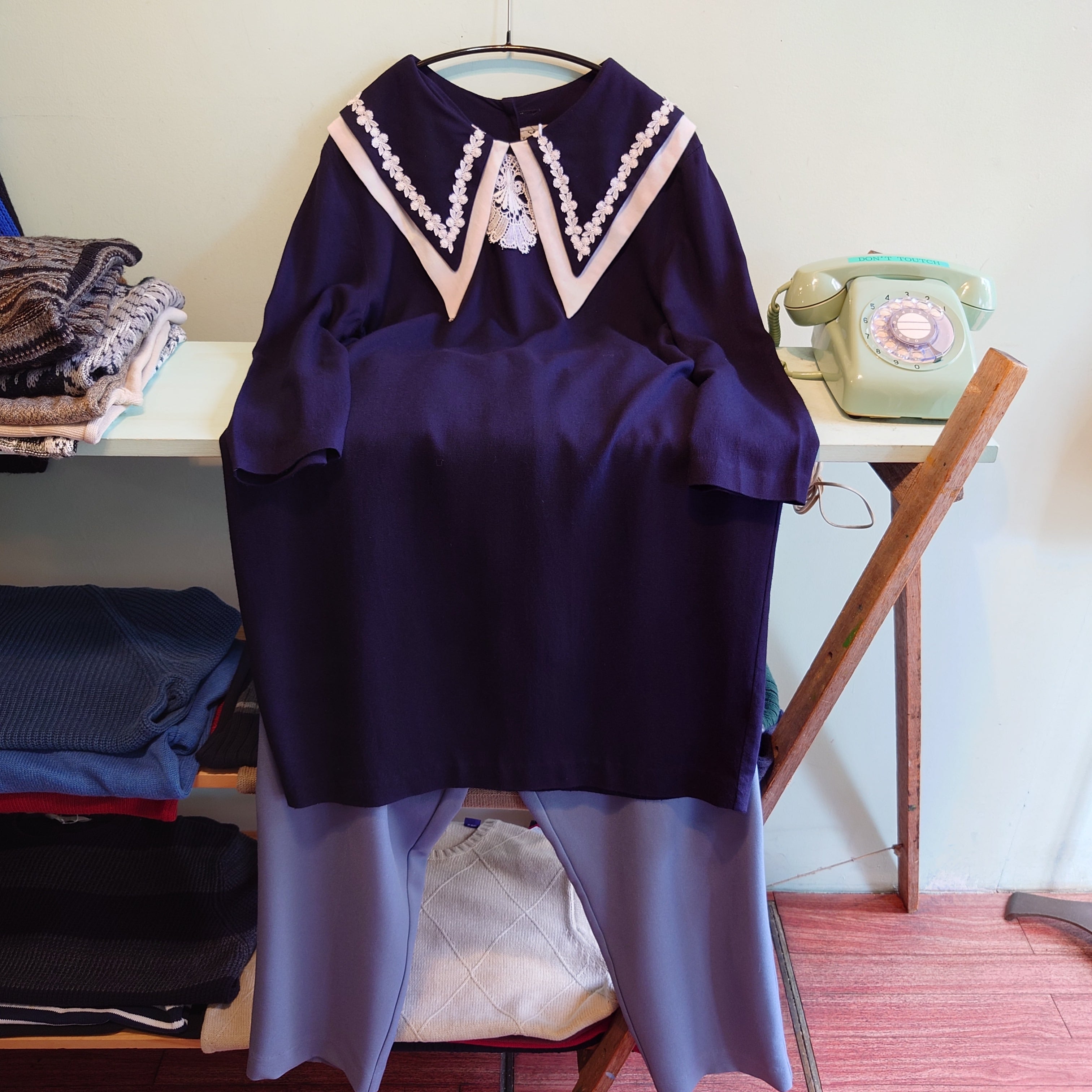 TAP DANCE 80-90s vintage ヴィンテージドレス レースワンピース ネイビー セーラー ボタンバック USA製