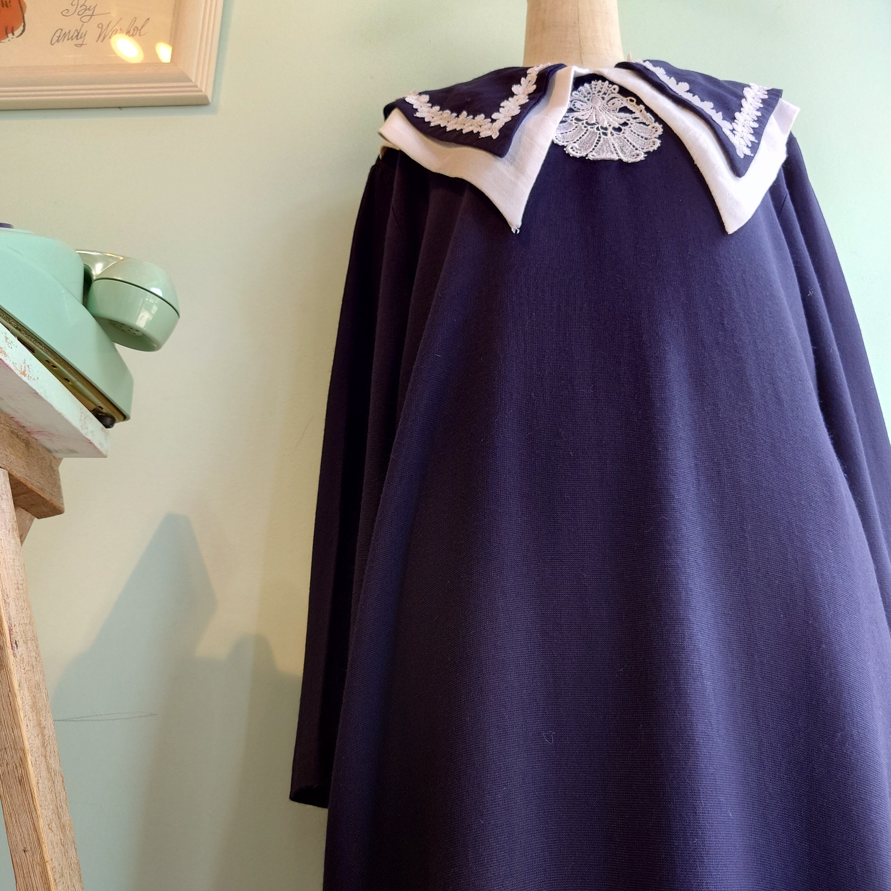 ◎TAP DANCE 80-90s vintage ヴィンテージドレス レースワンピース ネイビー セーラー ボタンバック USA製