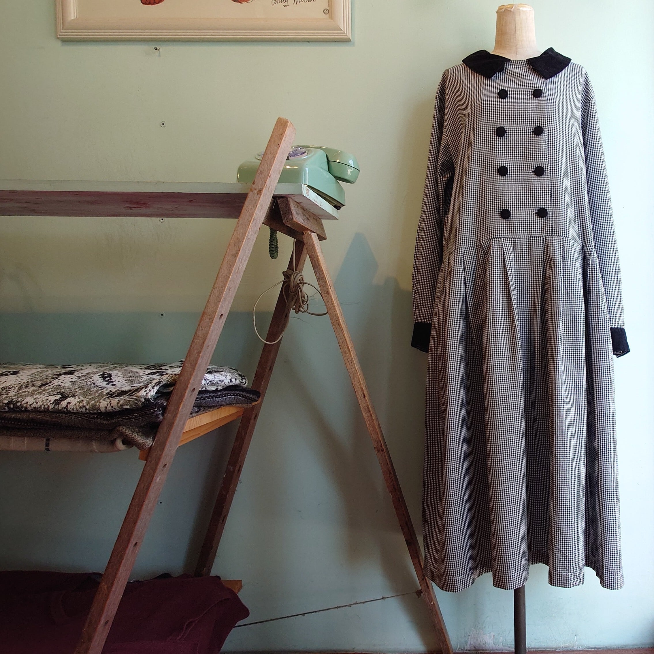 FADS 80-90s vintage ギンガムチェック ヴィンテージドレス チェックワンピース モノトーン