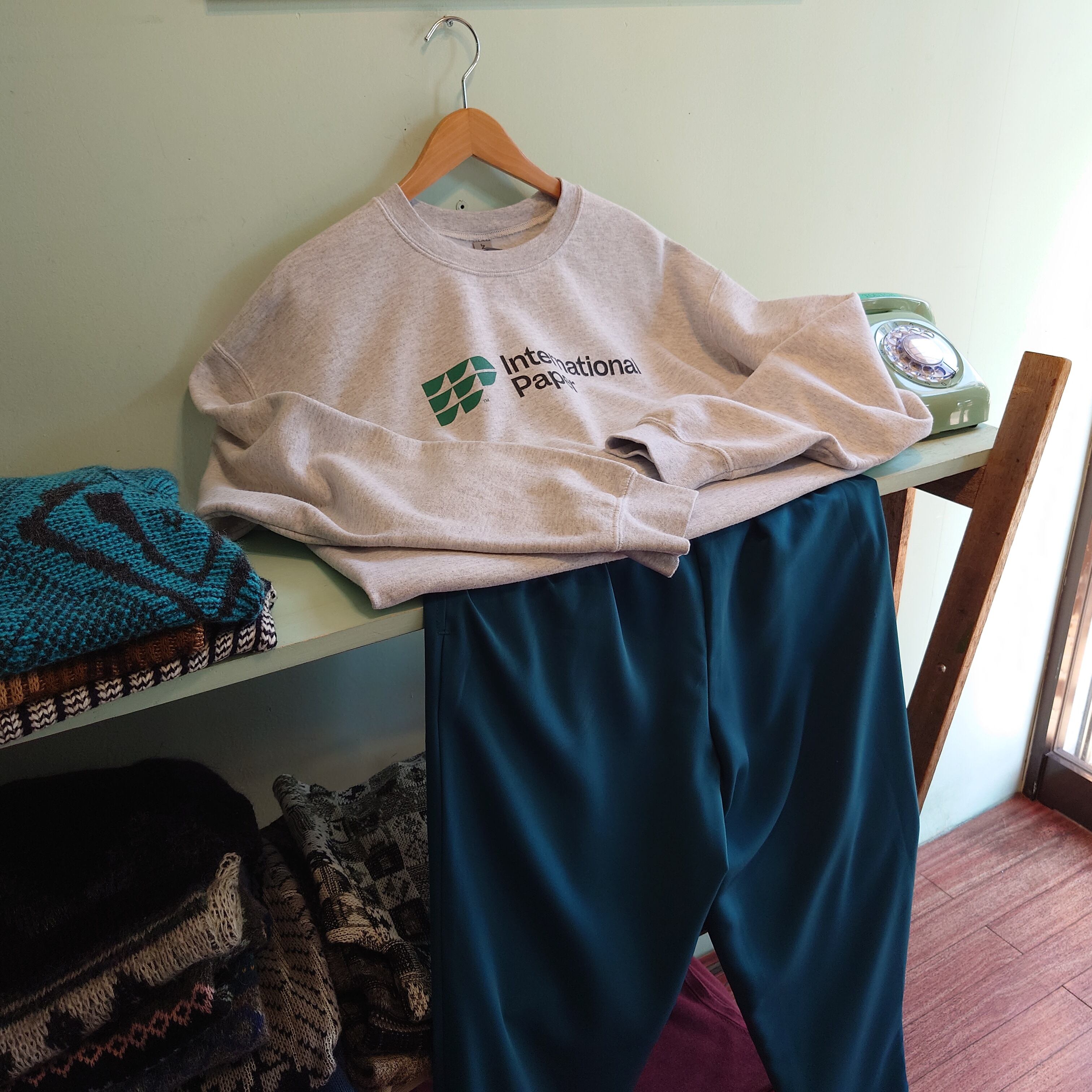 米国を代表する製紙メーカー、International Paperのアドバタイジングスウェット。白杢カラーにクリーンに主張する企業ロゴが、シンプルにかっこいい。GILDANらしいコロンと丸めなシルエットで、程よくラフなザ・アメカジ感がいい。