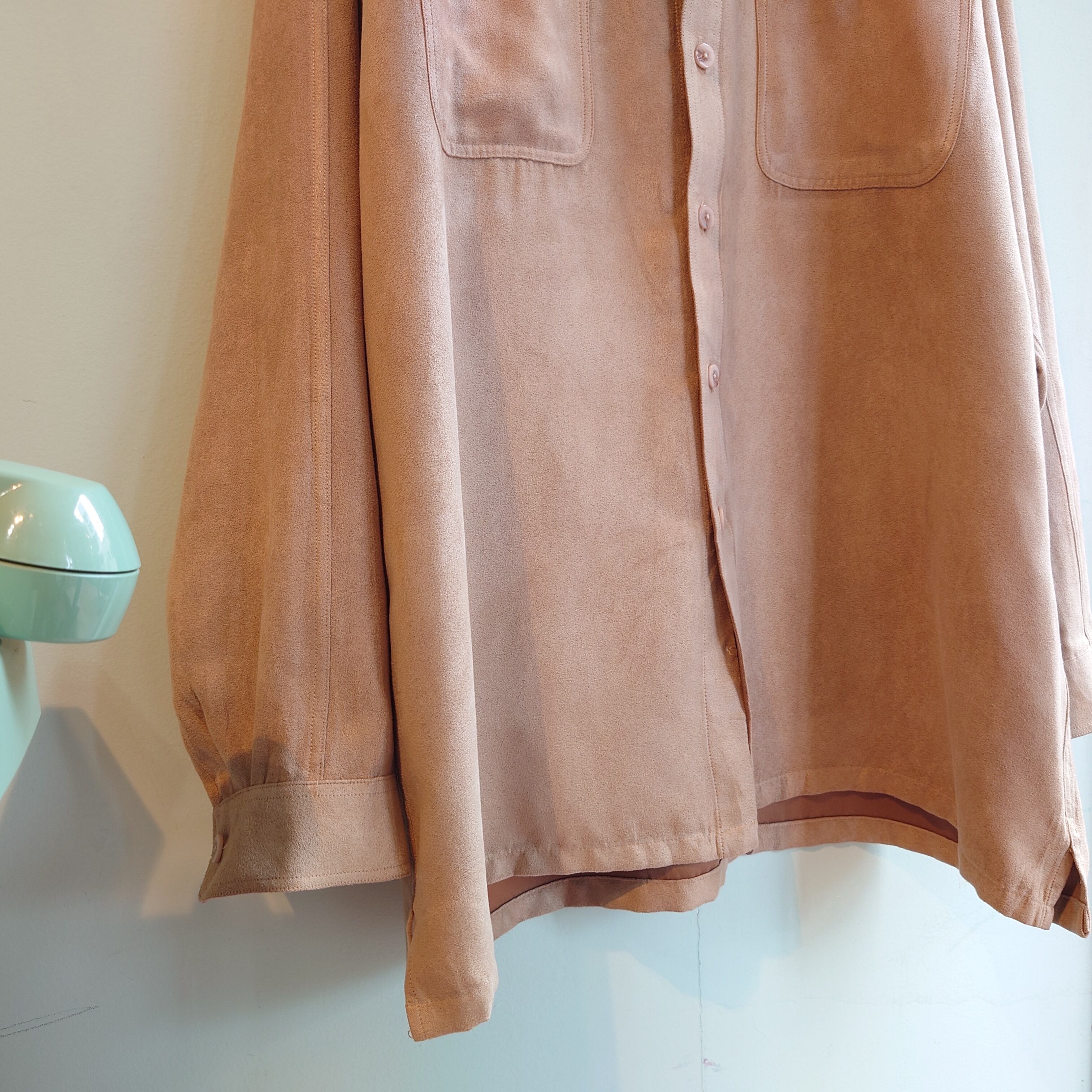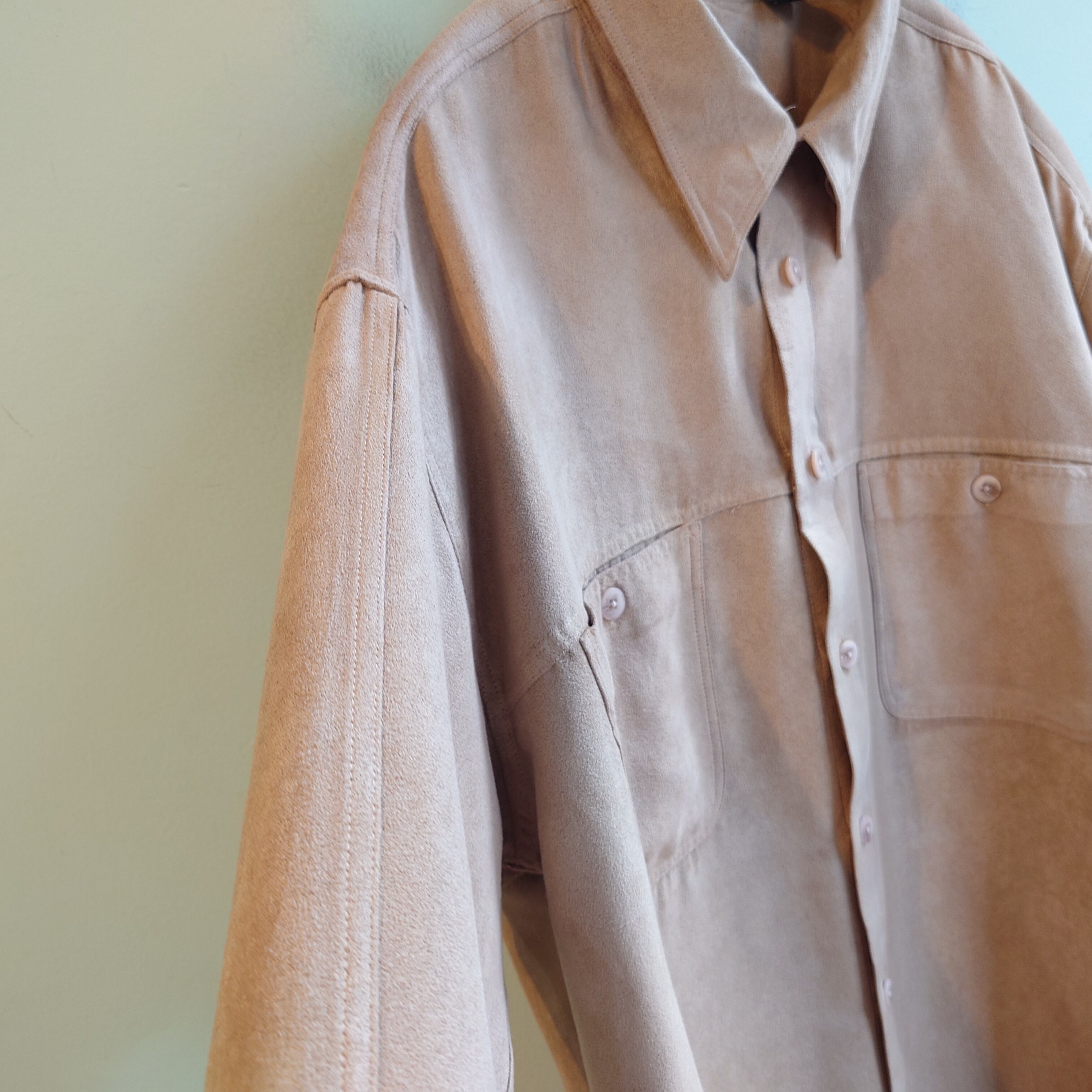◎Platinum Club 00s フェイクスウェードシャツ ドレスシャツ 異素材シャツ レアタイプ ベージュ L