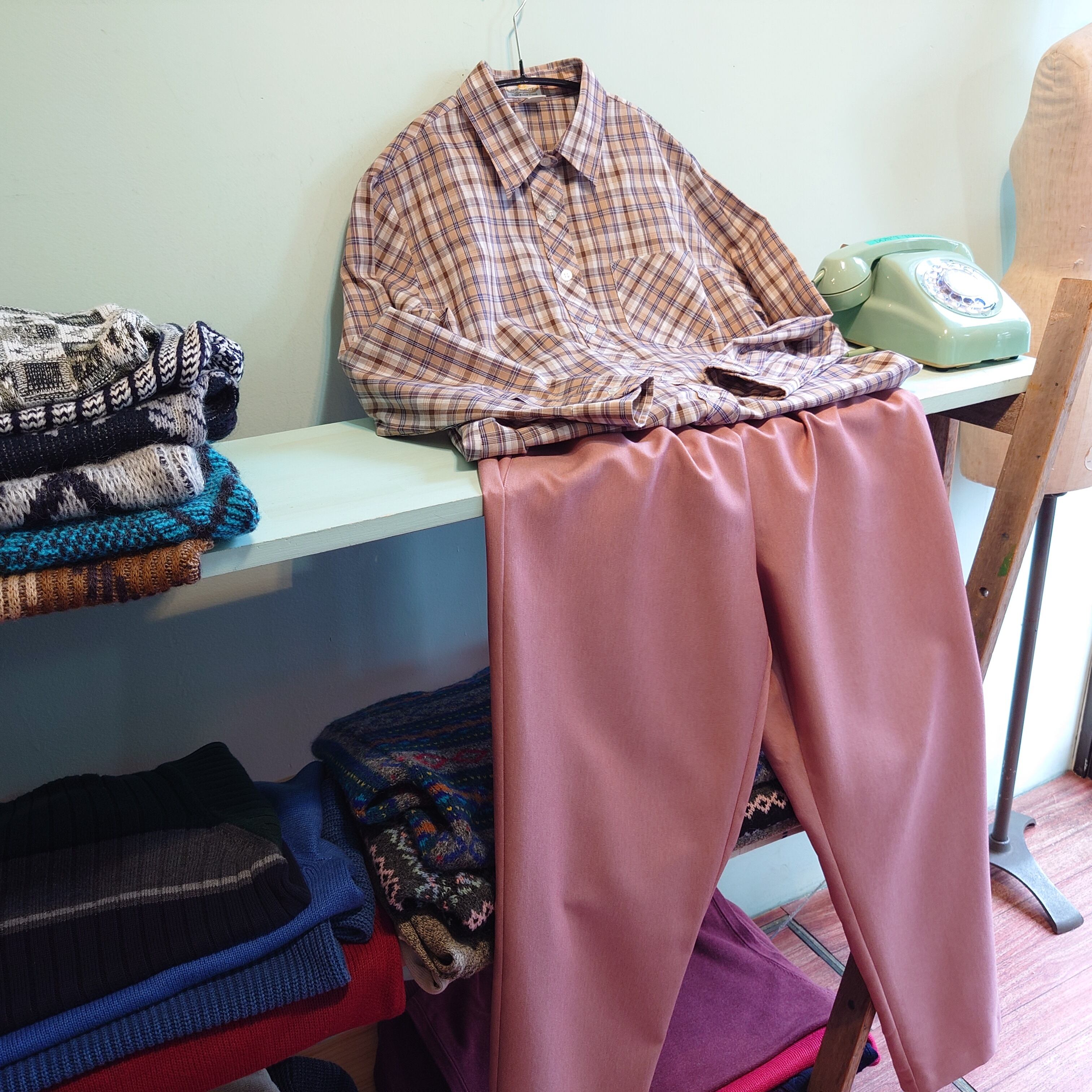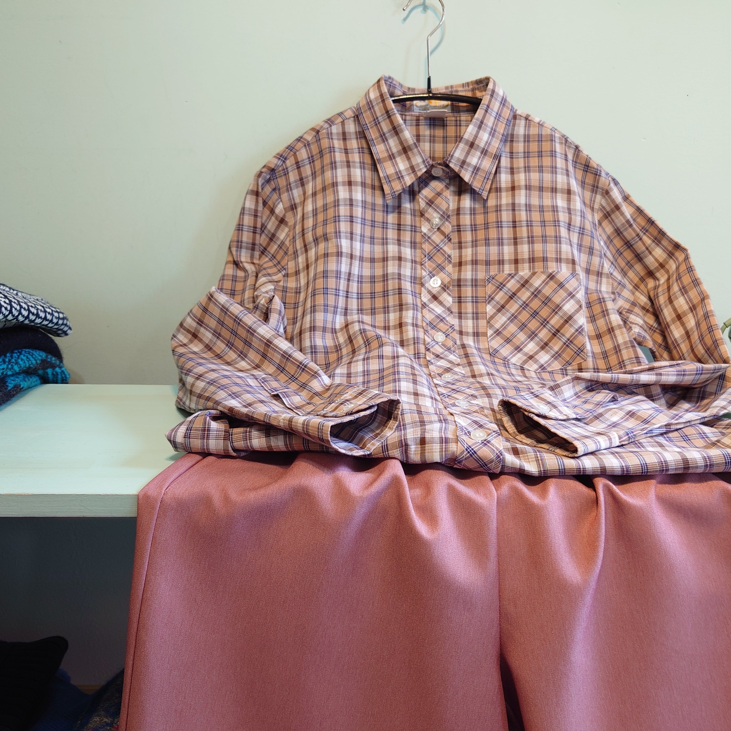 玫瑰Rose 80-90s vintage チェックブラウス チェックシャツ ベージュ系 レディースシャツ