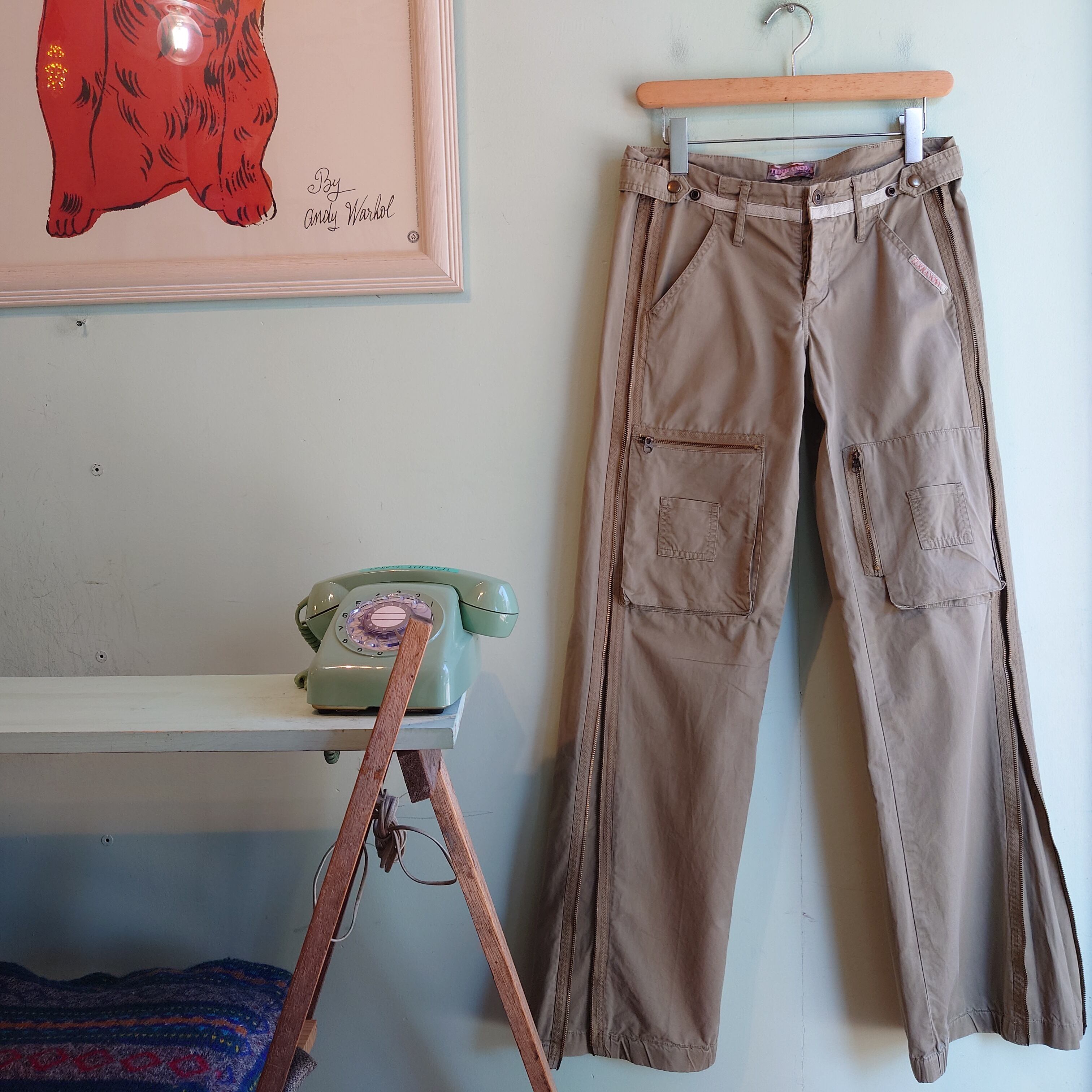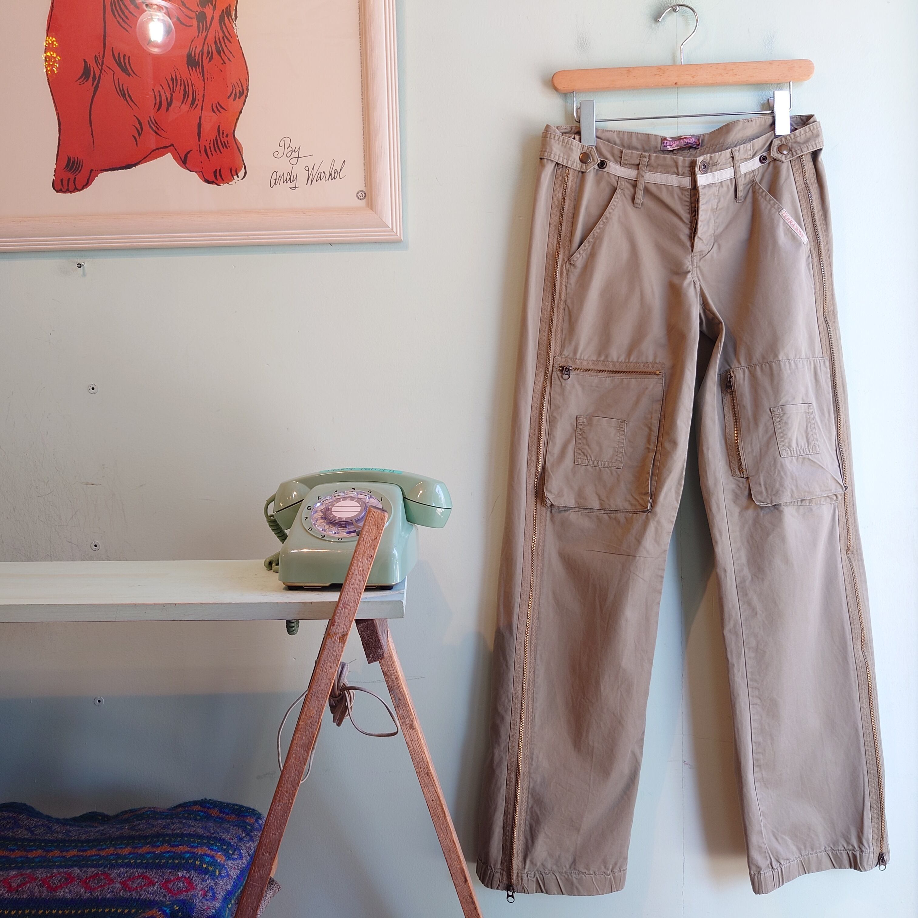 TERRANOVA 00s ギミックパンツ フレアパンツ ワイドフレア デザインカーゴパンツ ベージュ