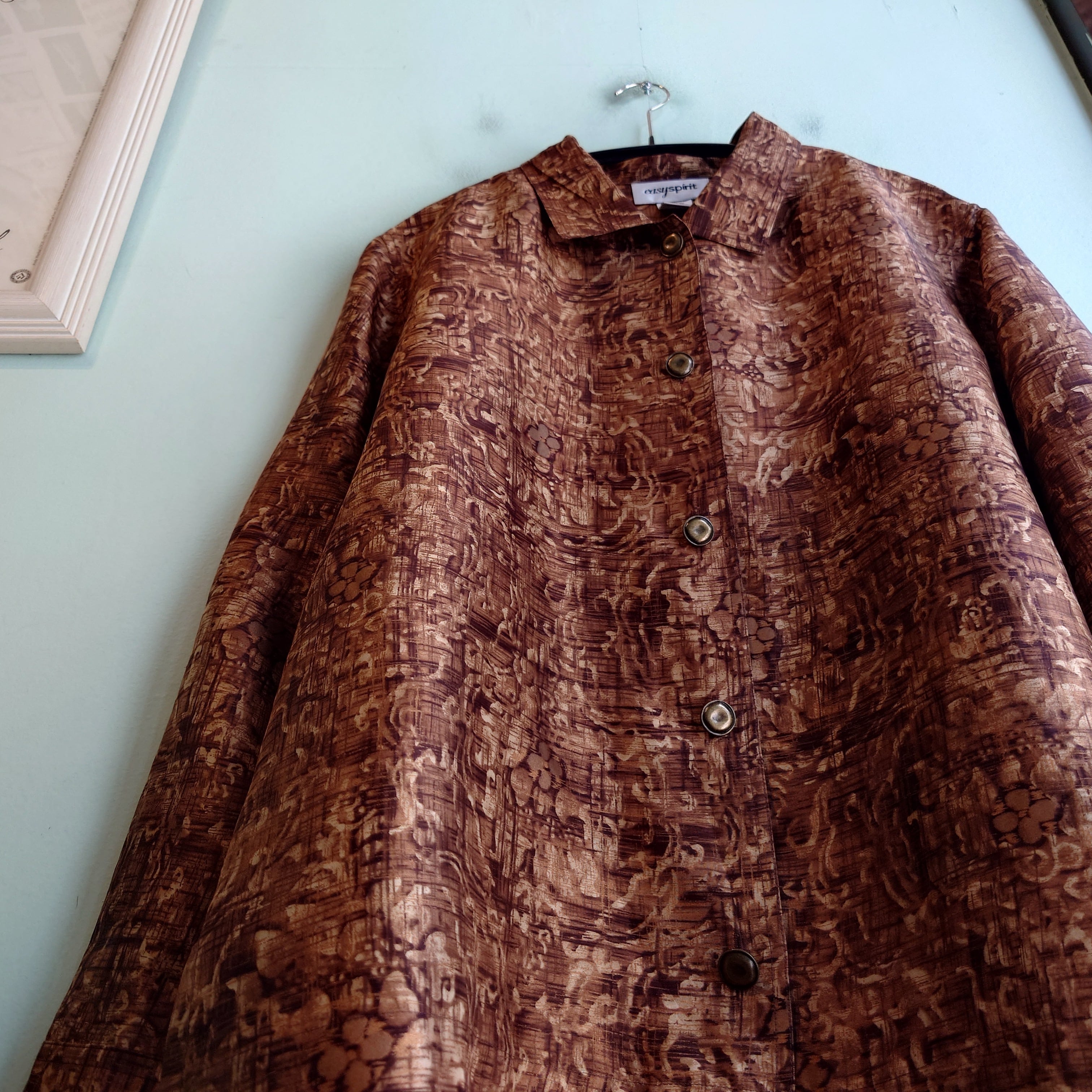 easyspirit 90-00s 総柄ブラウス 総柄シャツ メタリックシャツ ブロンズ 柄シャツ L