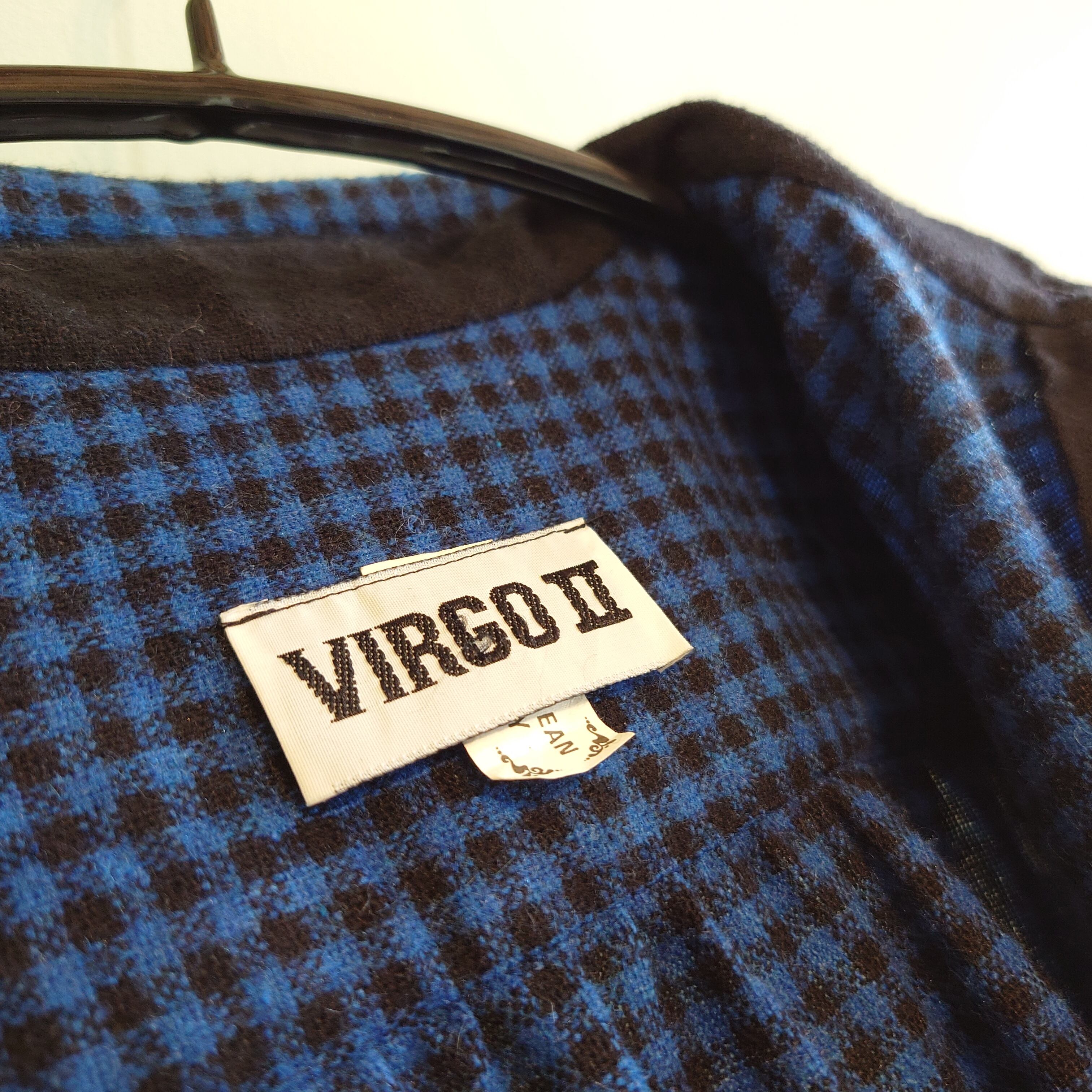 VIRGOⅡ 80-90s vintage ヴィンテージドレス チェックワンピース アクリル 青黒 パフスリーブ