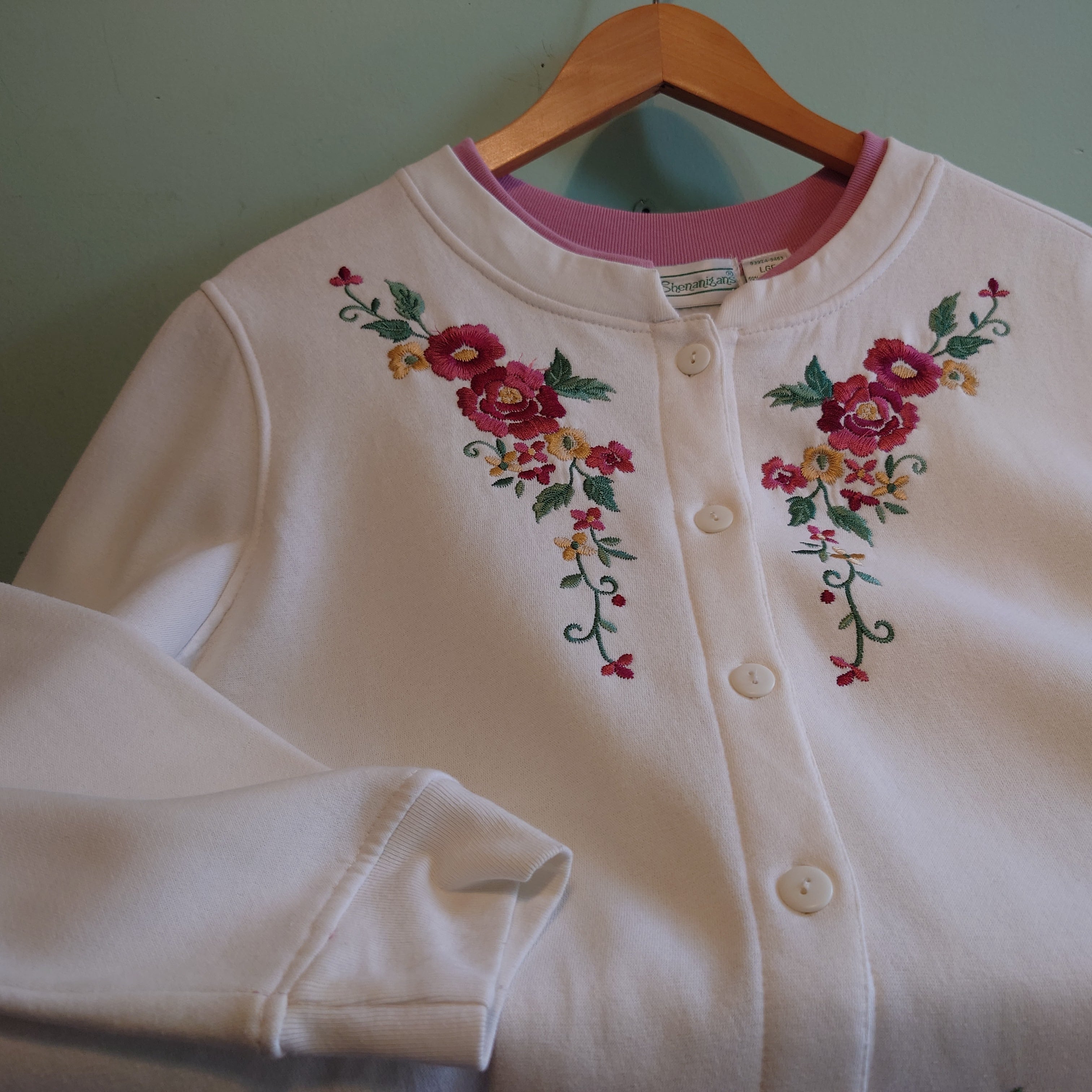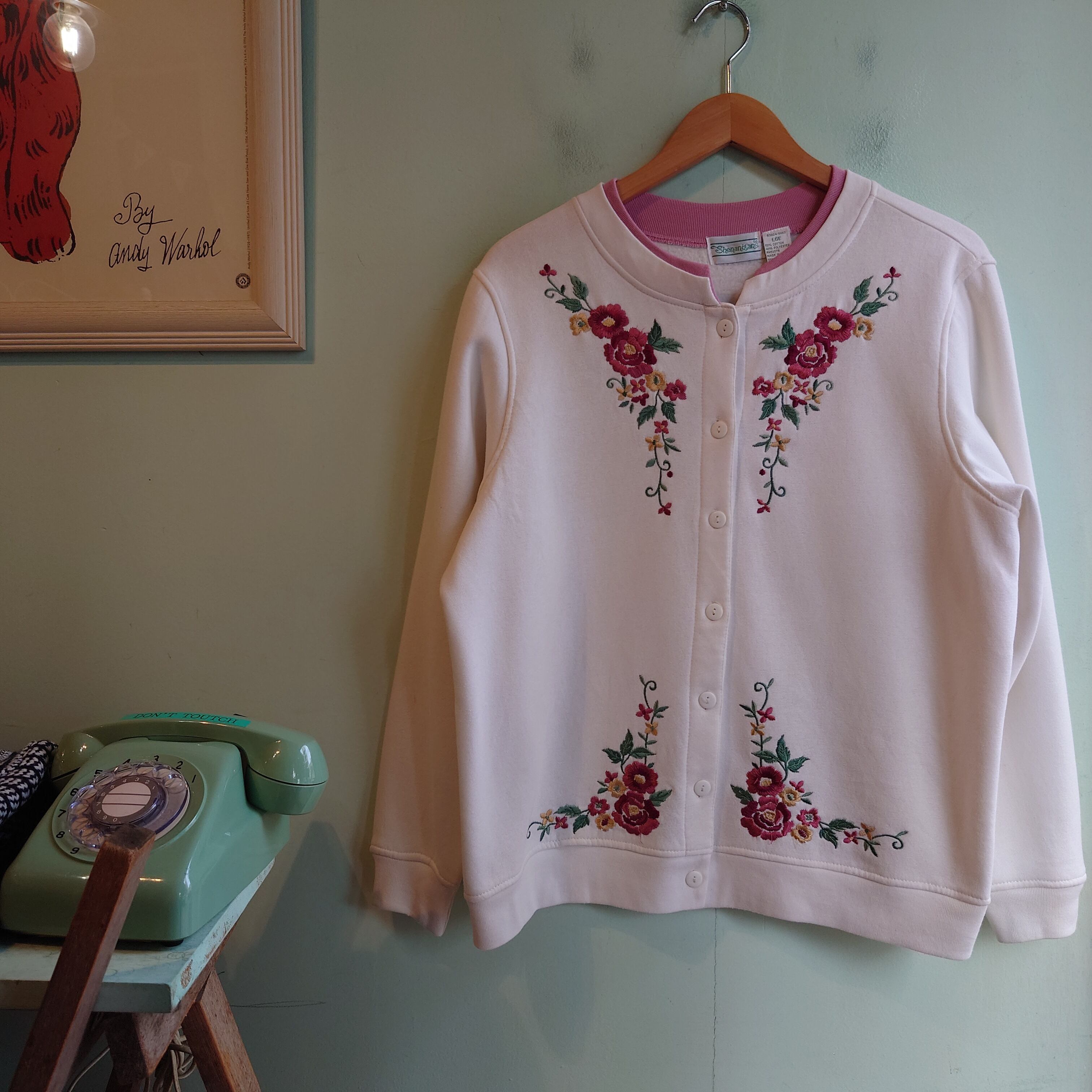 Shenanigans 90-00s スウェットカーディガン デコレーションスウェット ガーリースウェット 花柄 白 L