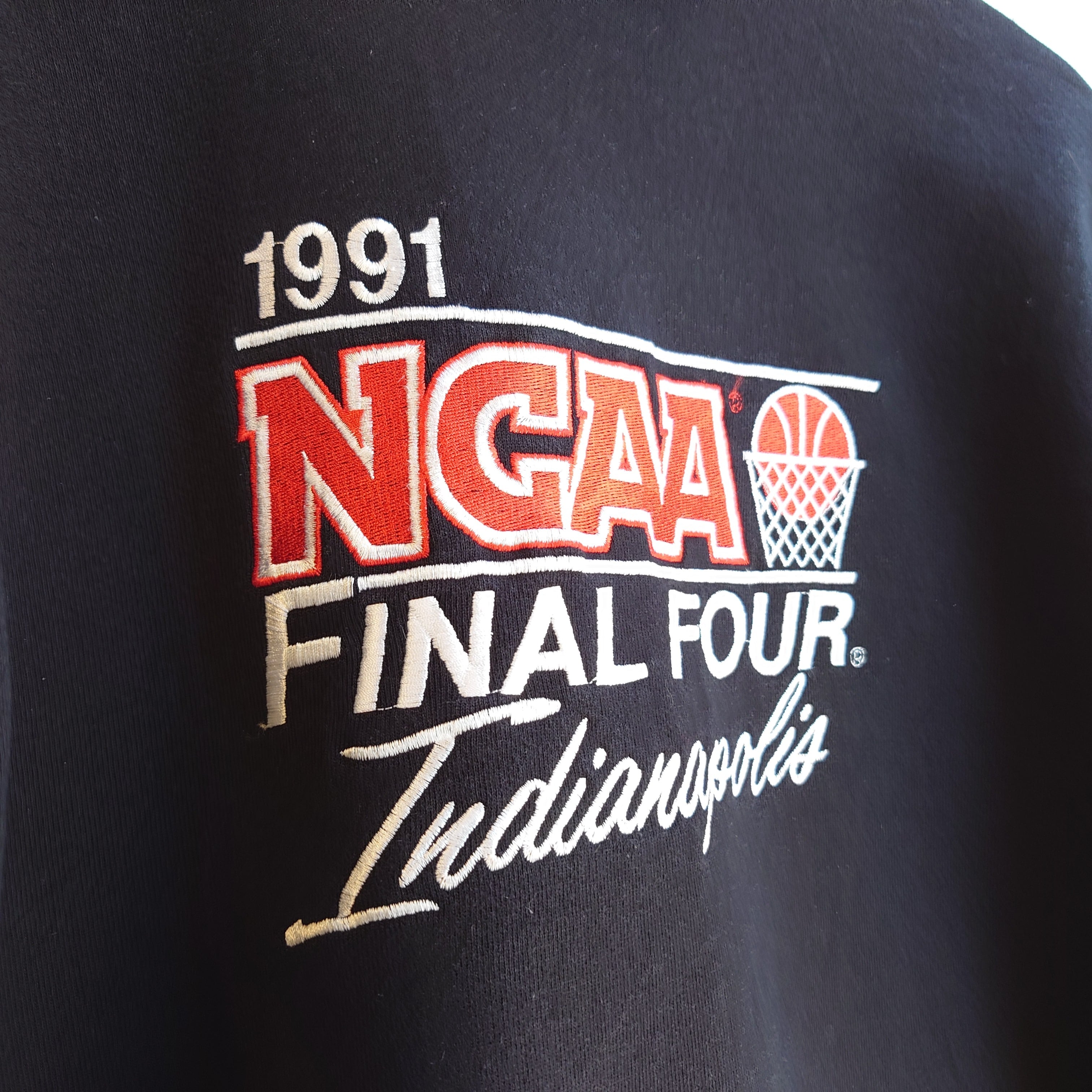 1991年に開催されたNCAA男子バスケットボール トーナメント、決勝のメモリアルスウェット。ボディーはLOGO7のヘヴィーウェイト素材で、がっしりした質感がオールドライク。大学リーグの頂点らしく、刺繍の質感もボリューミーで誇らしげなもの。カレッジ/スポーツ系アイテムですが、気品を感じるスウェットシャツです。