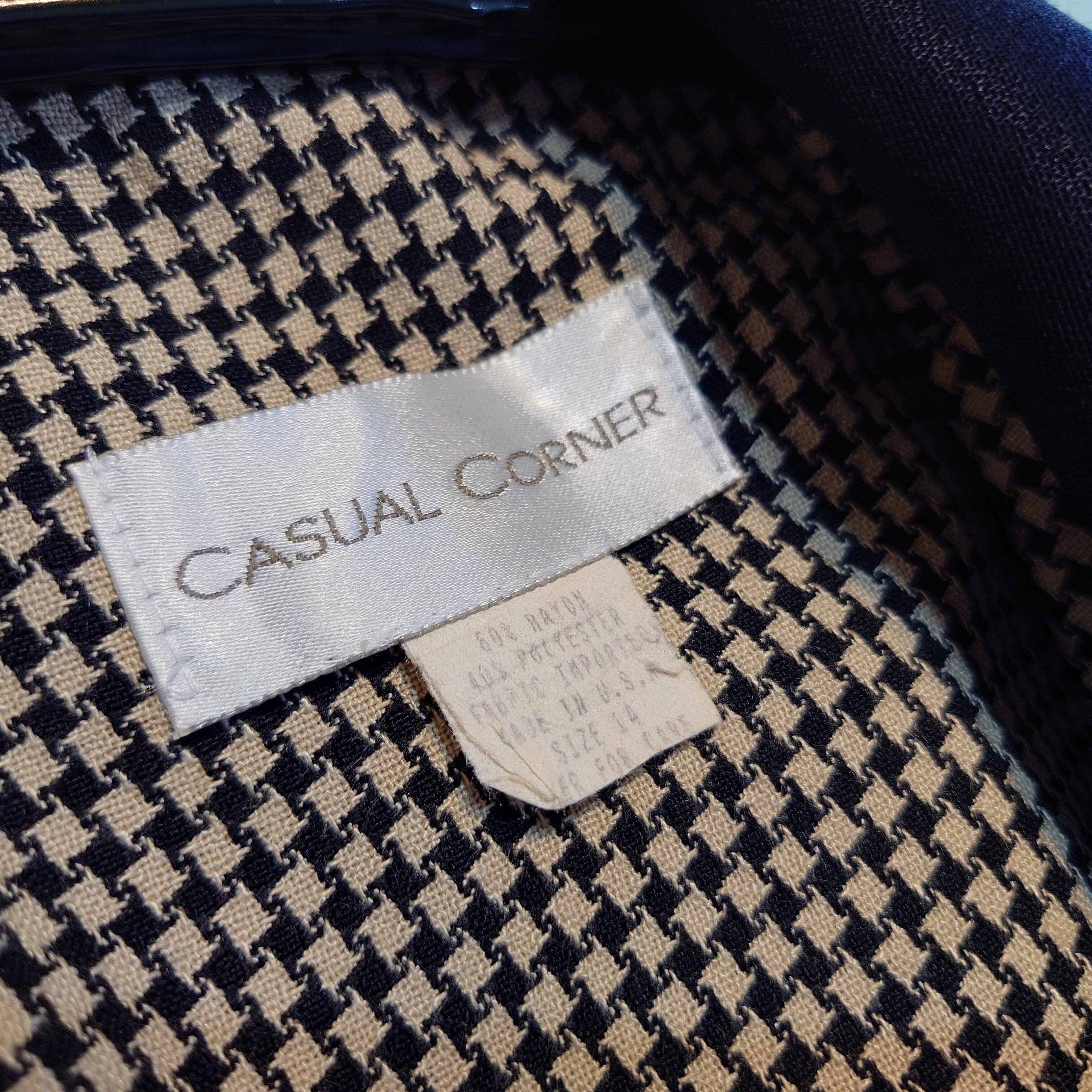 CASUAL CORNER 90s vintage 千鳥格子 ヴィンテージドレス ジャケットワンピース チェスターコートワンピース ベージュ×ブラック USA製