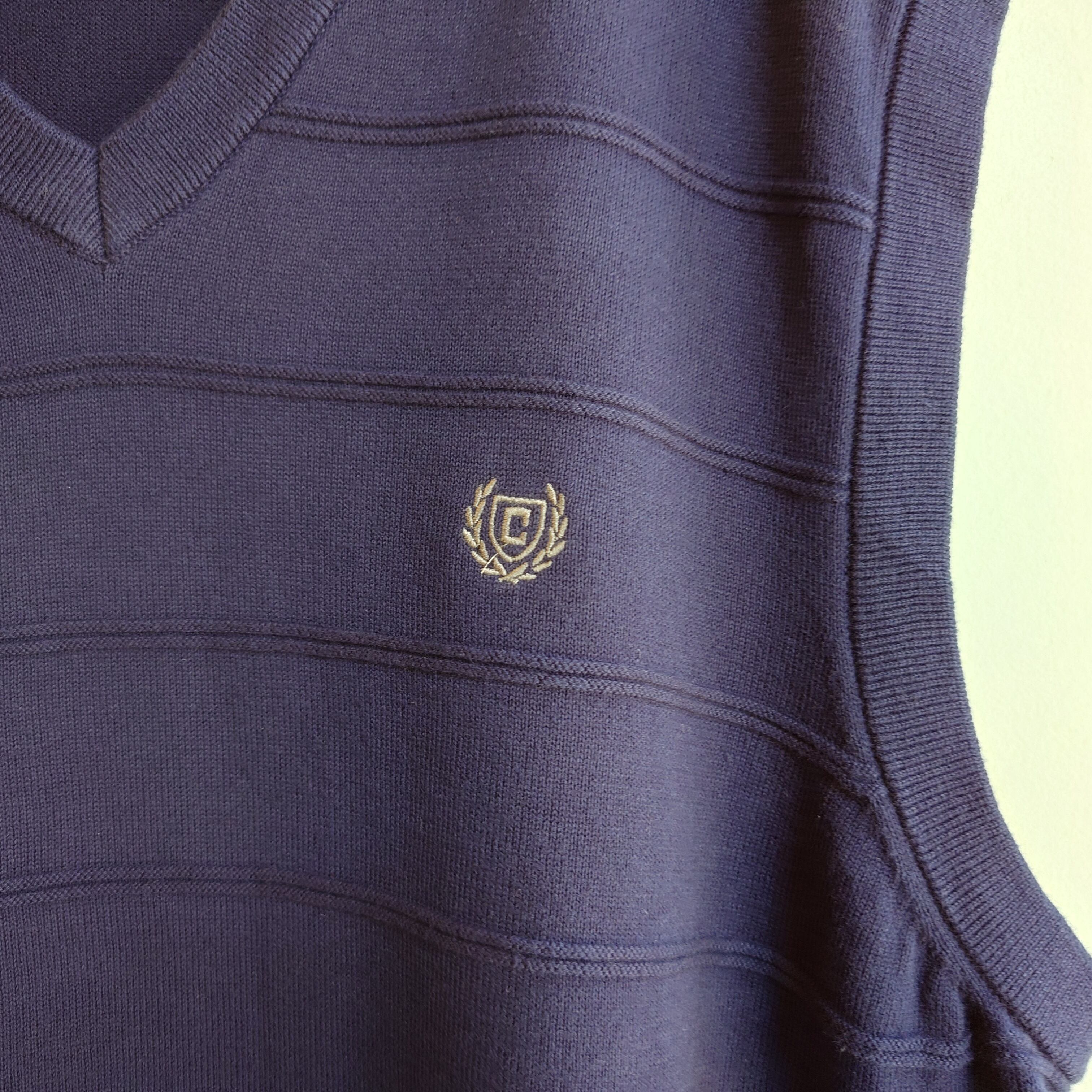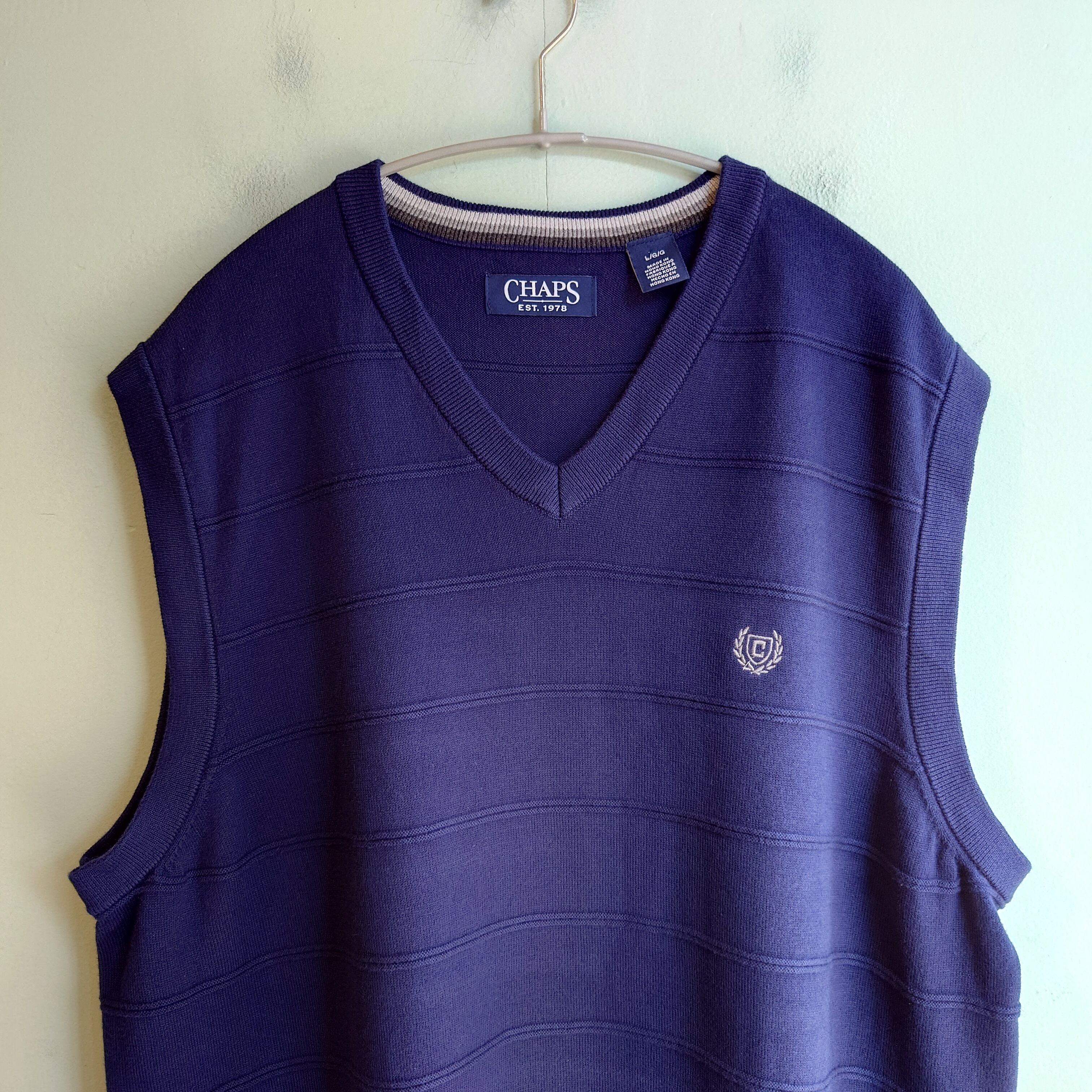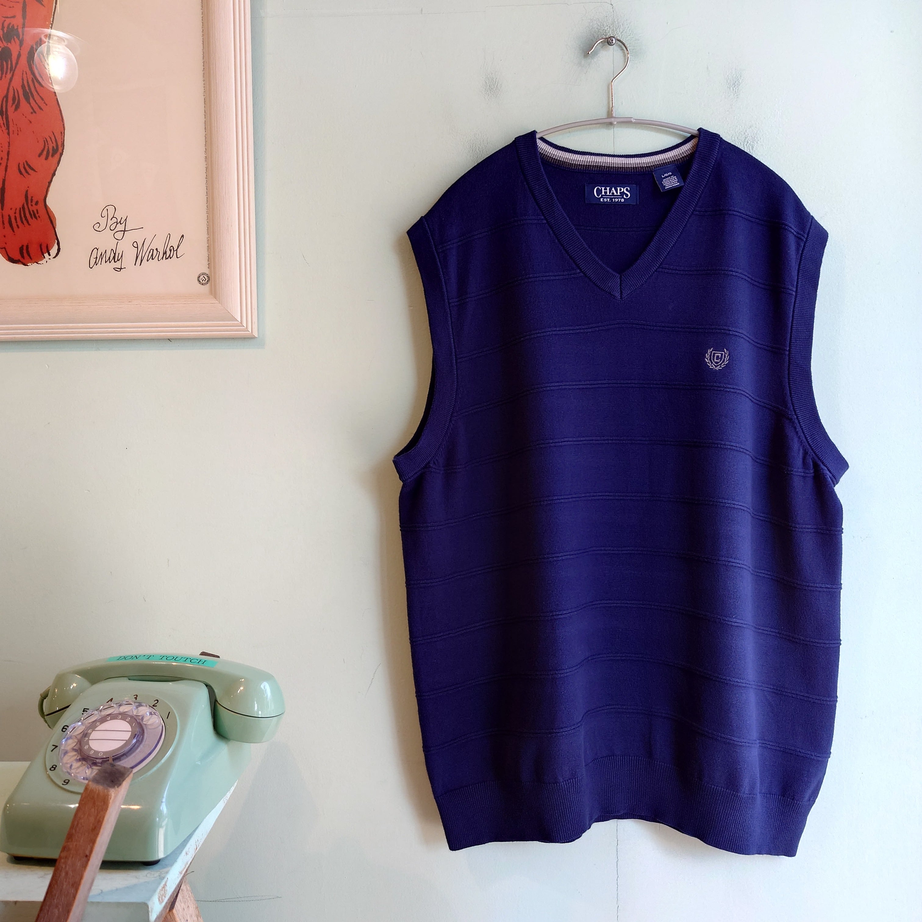 ◎CHAPS ニットベスト コットンニットベスト ワンポイント ネイビー L