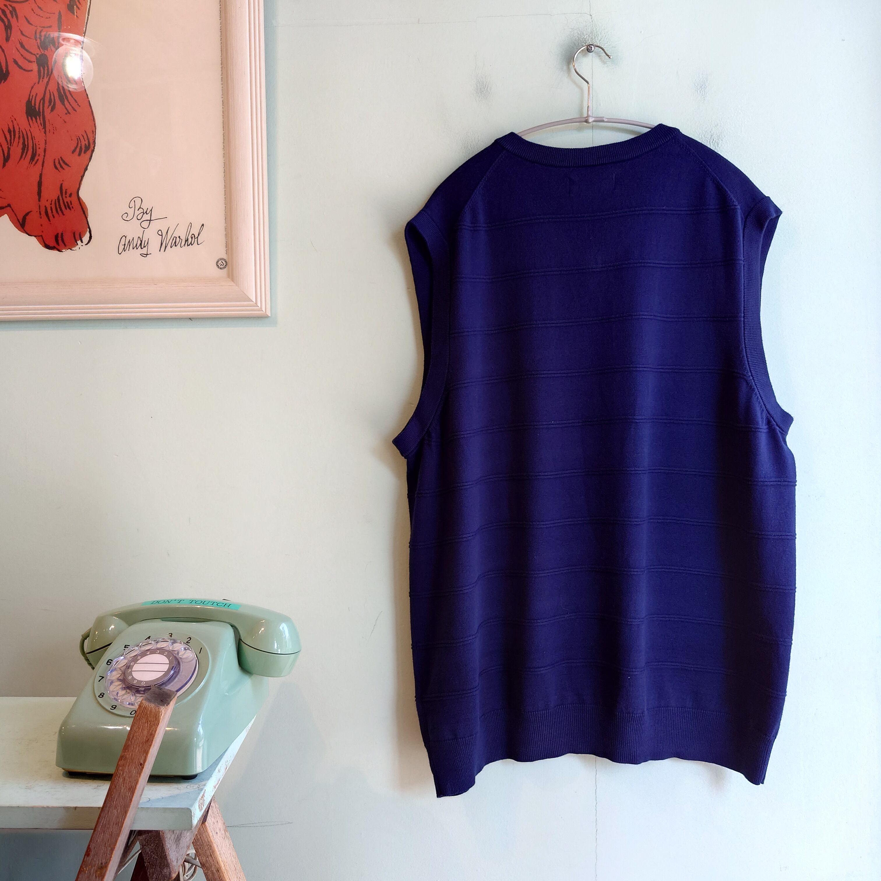 ★『ボーダーラインのアクセントがかわいネイビーの薄手ニットベスト』