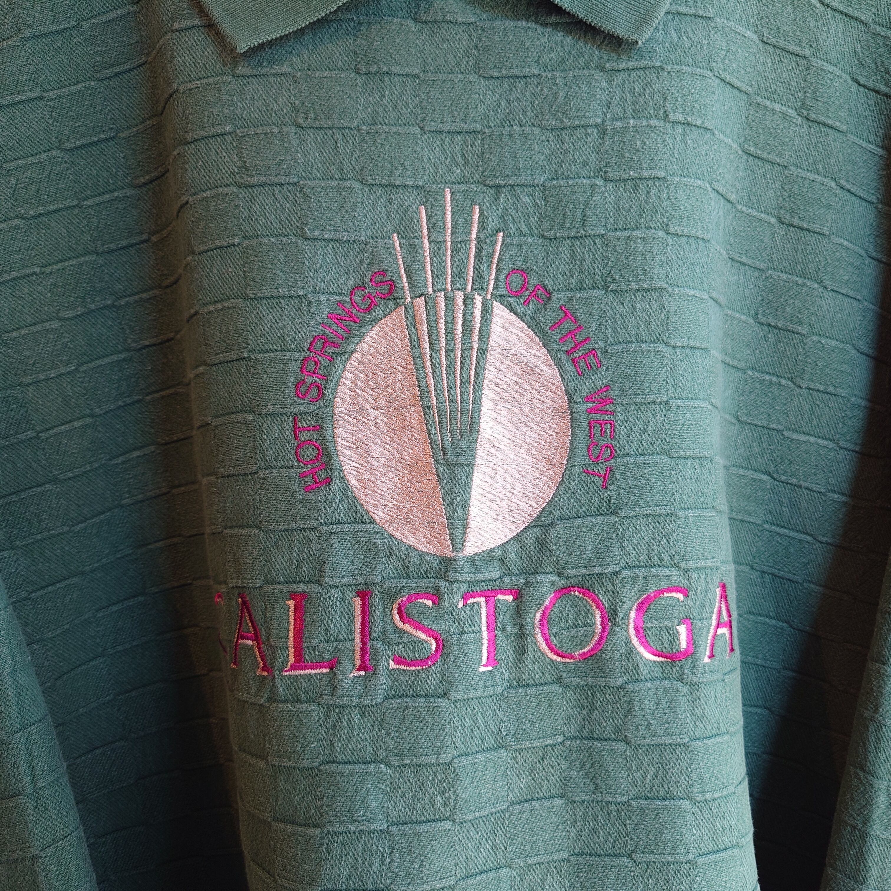 カリフォルニア州に実在するリゾートホテルのスーベニアスウェット。レンガのようなスクエア状の織り目が積み上がった変わり種素材に襟付き。シルエットはプルオーバーに近いざっくり系。スウェットに近いものの、何にも属さない不思議なユニセックステイスト溢れる一枚。
