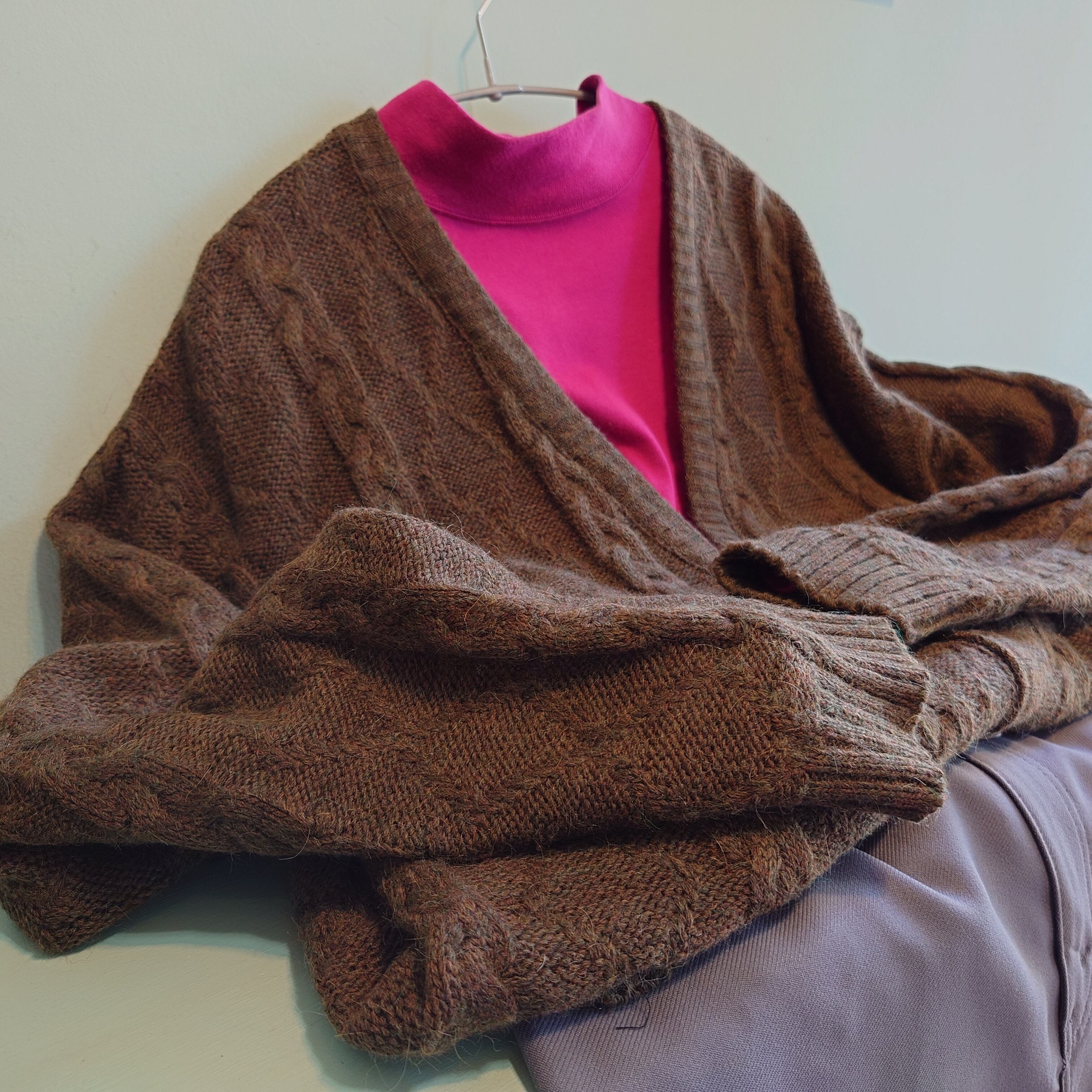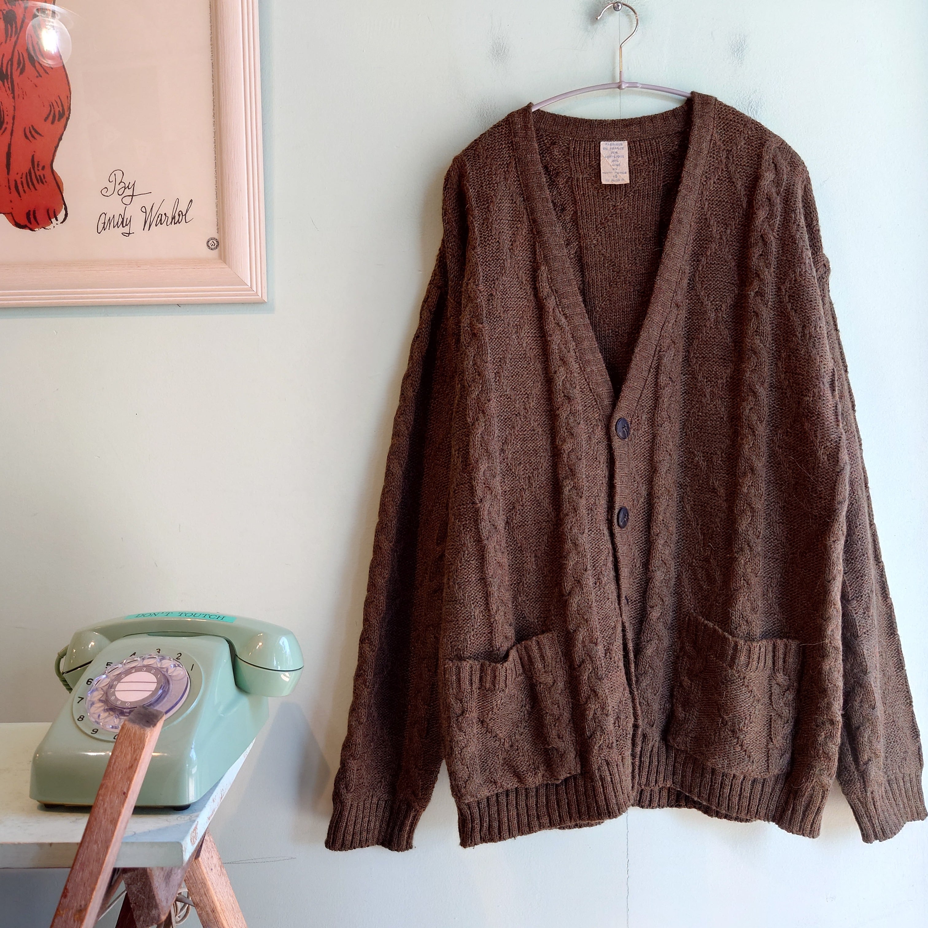 80-90s vintage ヴィンテージカーディガン ケーブルニットカーディガン フランス製 ブラウン系