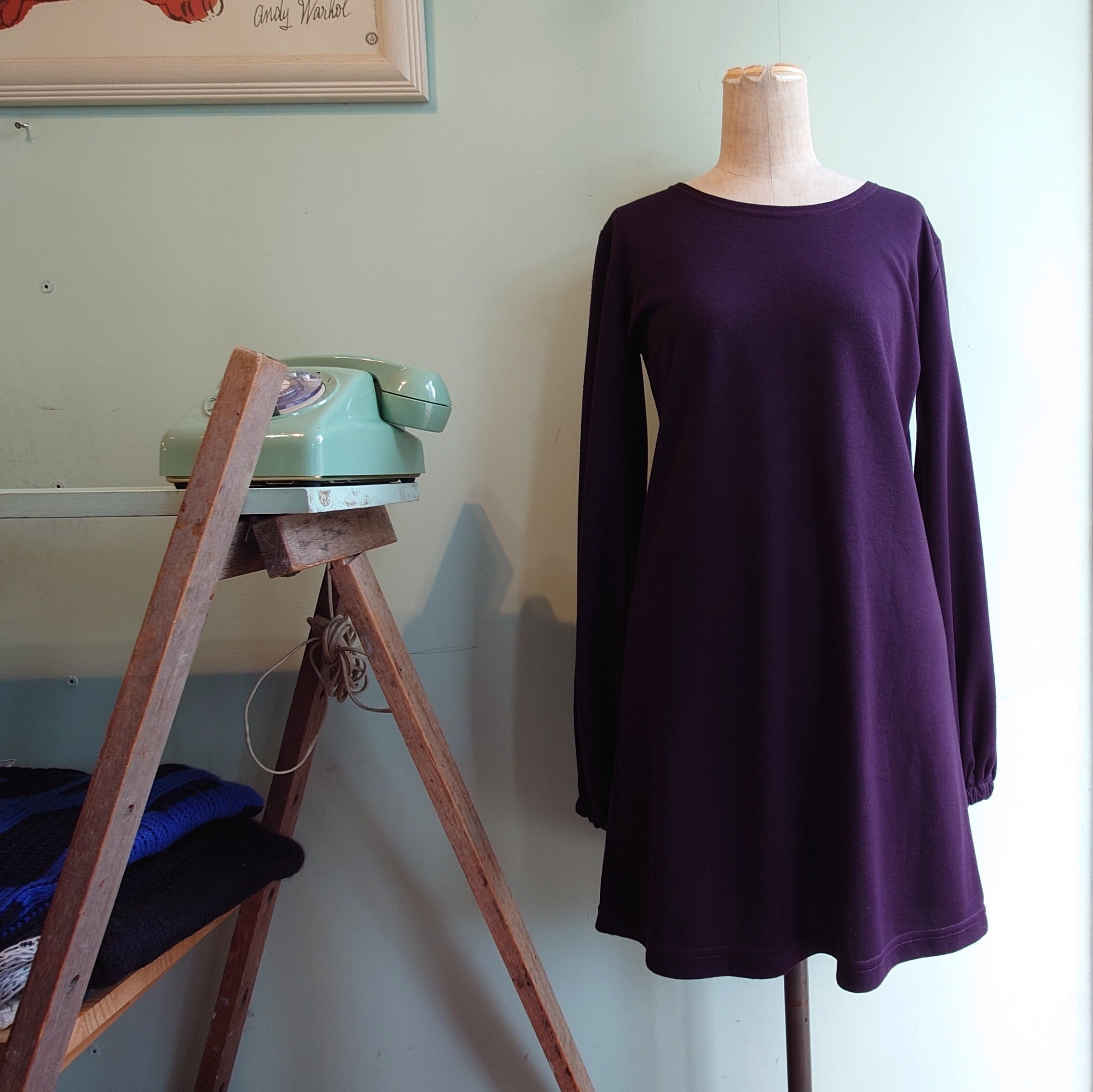 〜90s vintage デザインカットソー プルオーバーブラウス アクリルカットソー 紫