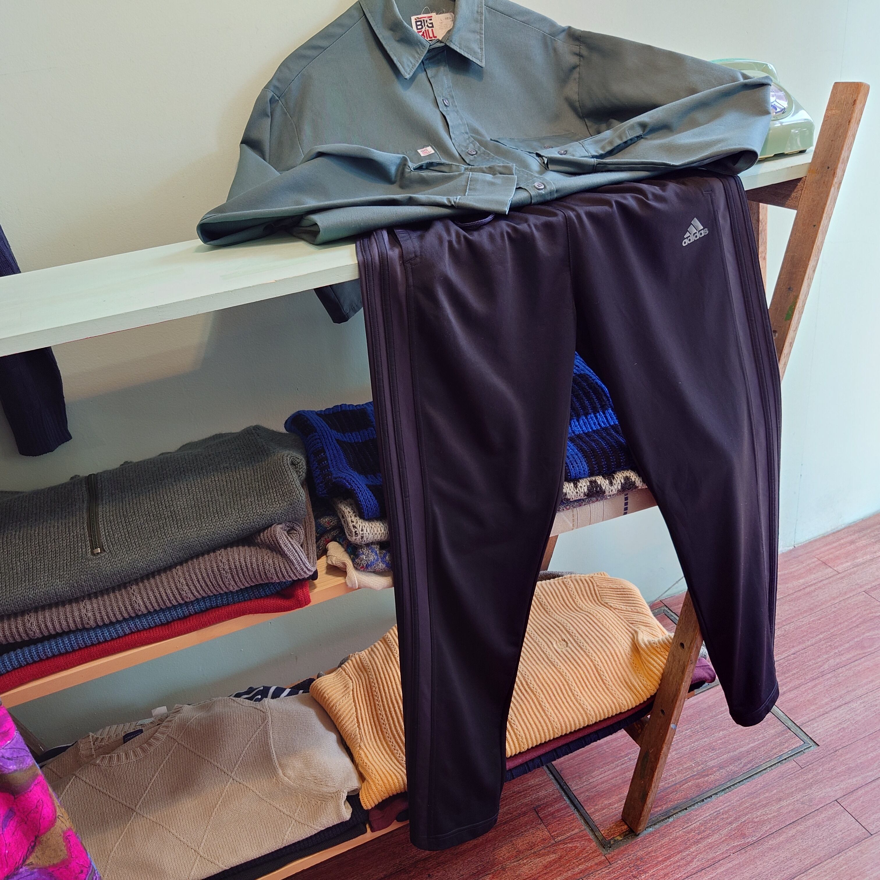 adidas 00s トラックパンツ サイドラインパンツ ジャージパンツ ブラック×ダークグレー L