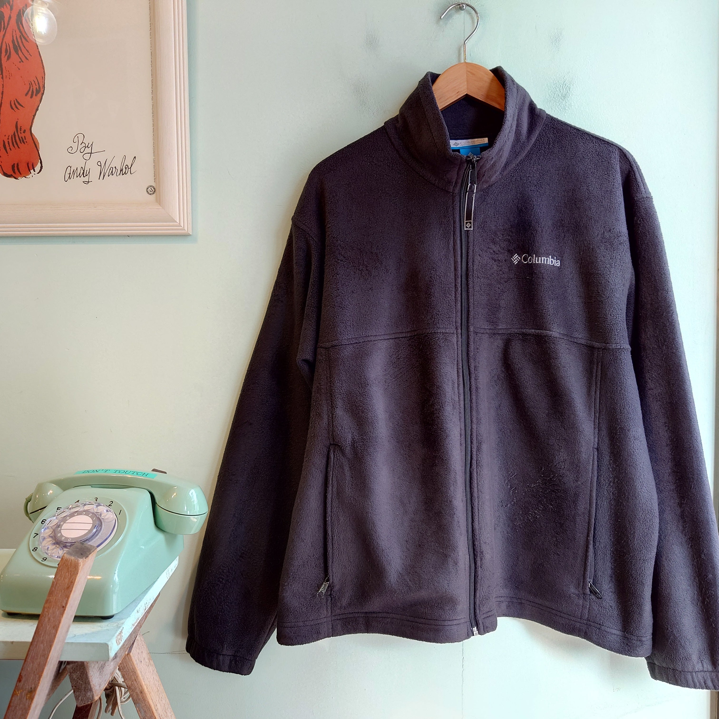 まだなめらかな風合いが残る生地の気持ちよさが癖になる、Columbiaのフリースジャケット。袖周りゆったりアウターシルエットで、羽織にしっかり使えるタイプ。黒フリースならではのシャープさで、崩したアメカジからちゃんとした場面でも使える一枚です。