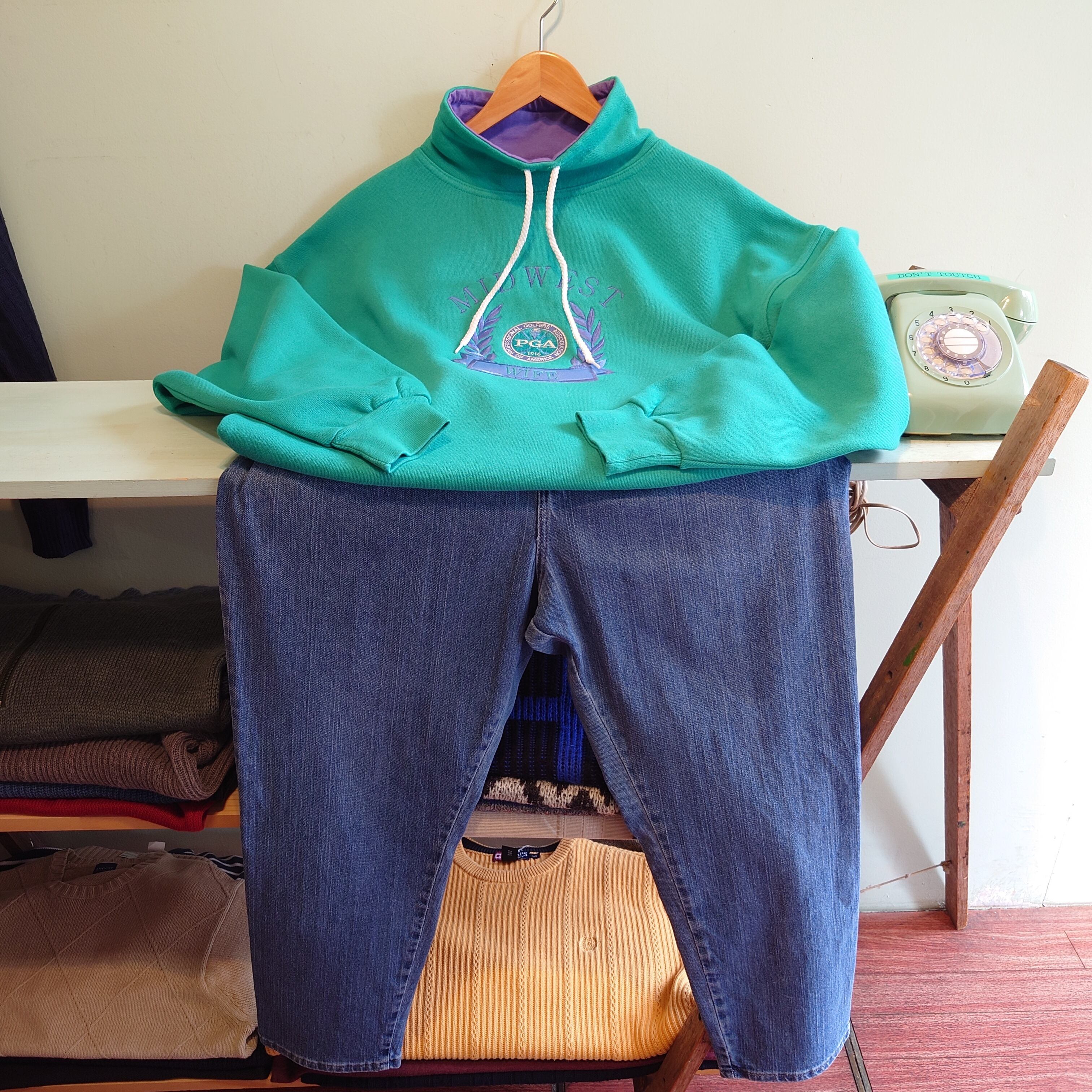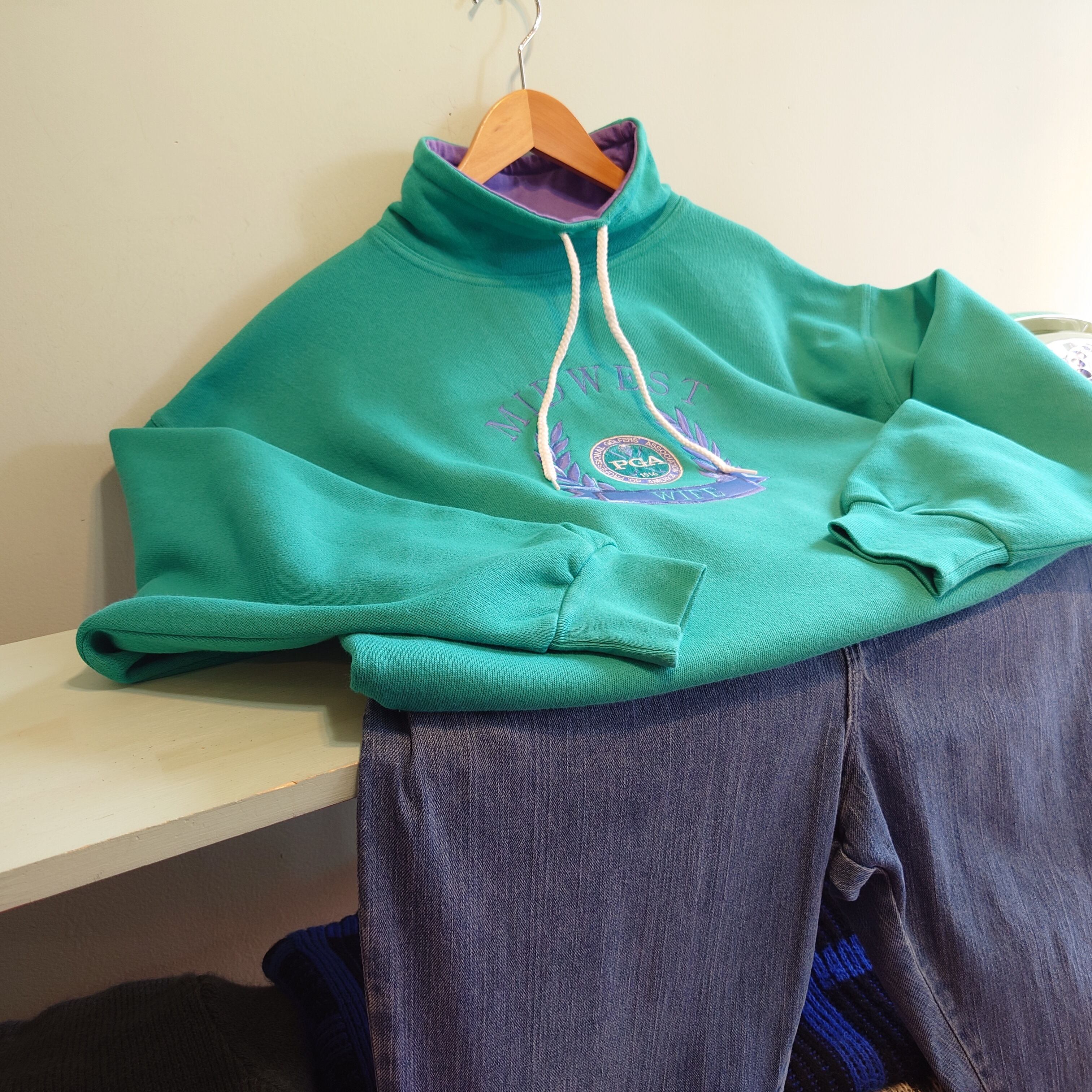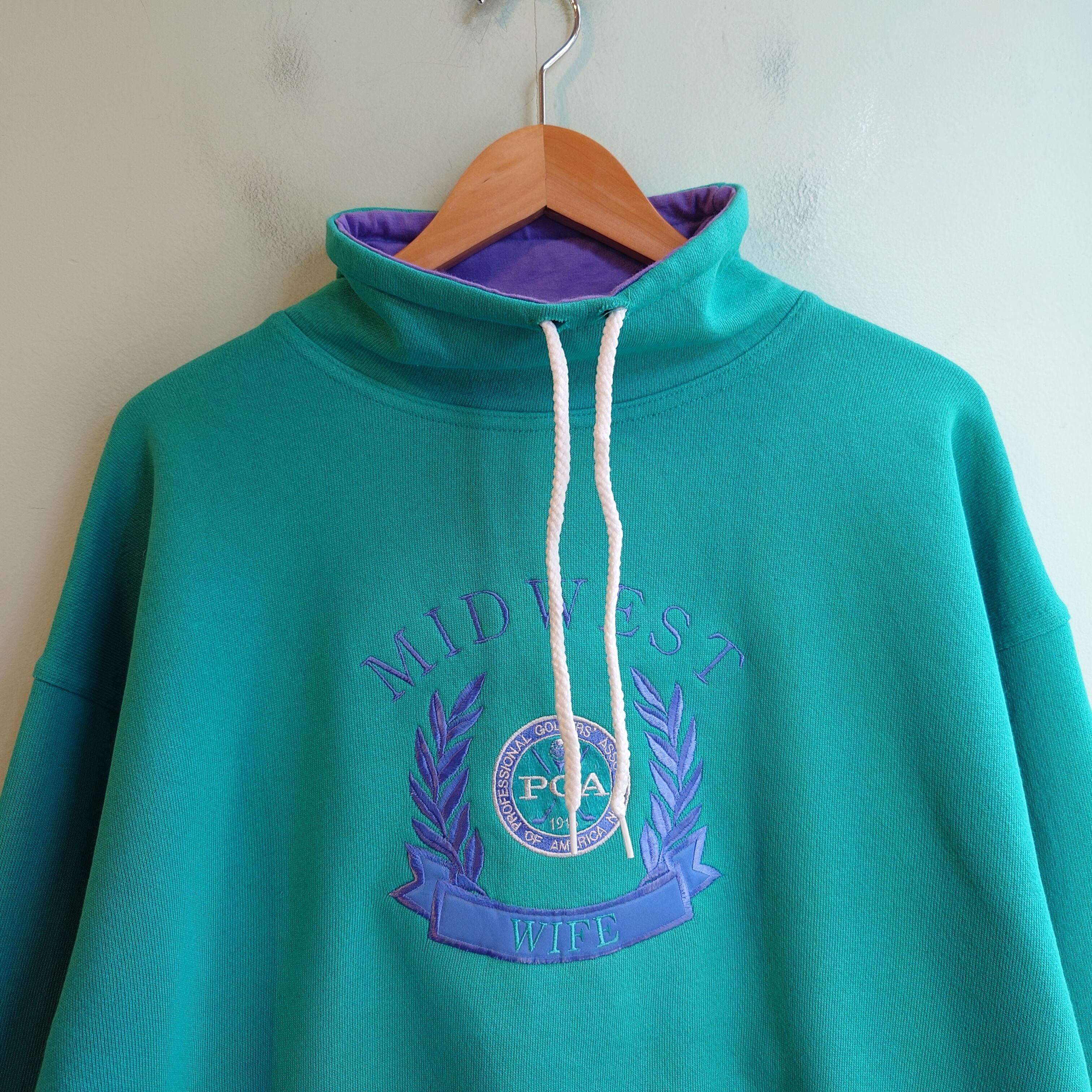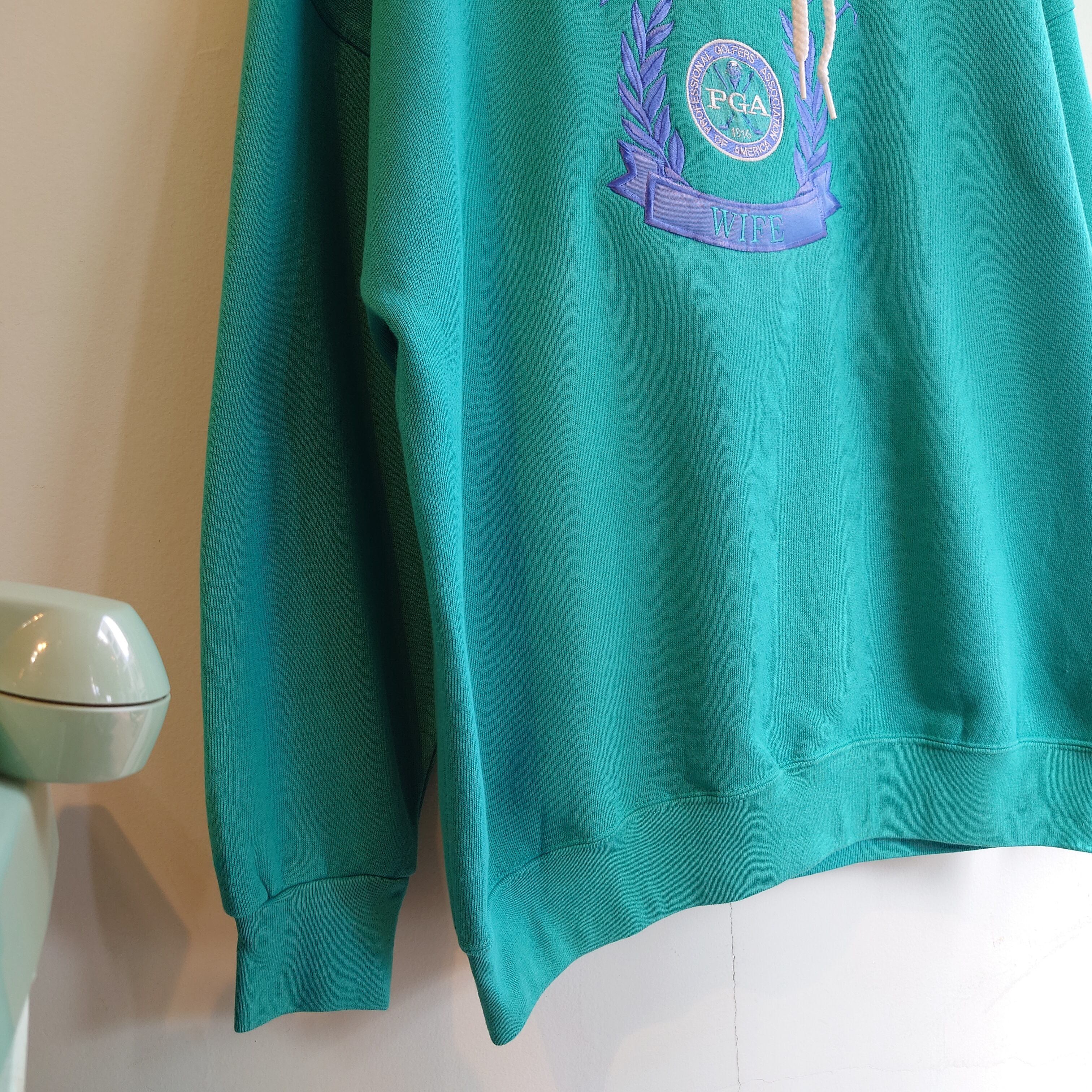 ◎RUDDER PGA 80-90s vintageヴィンテージスウェット モックネックスウェット 変わり種スウェット USA製 緑×紫