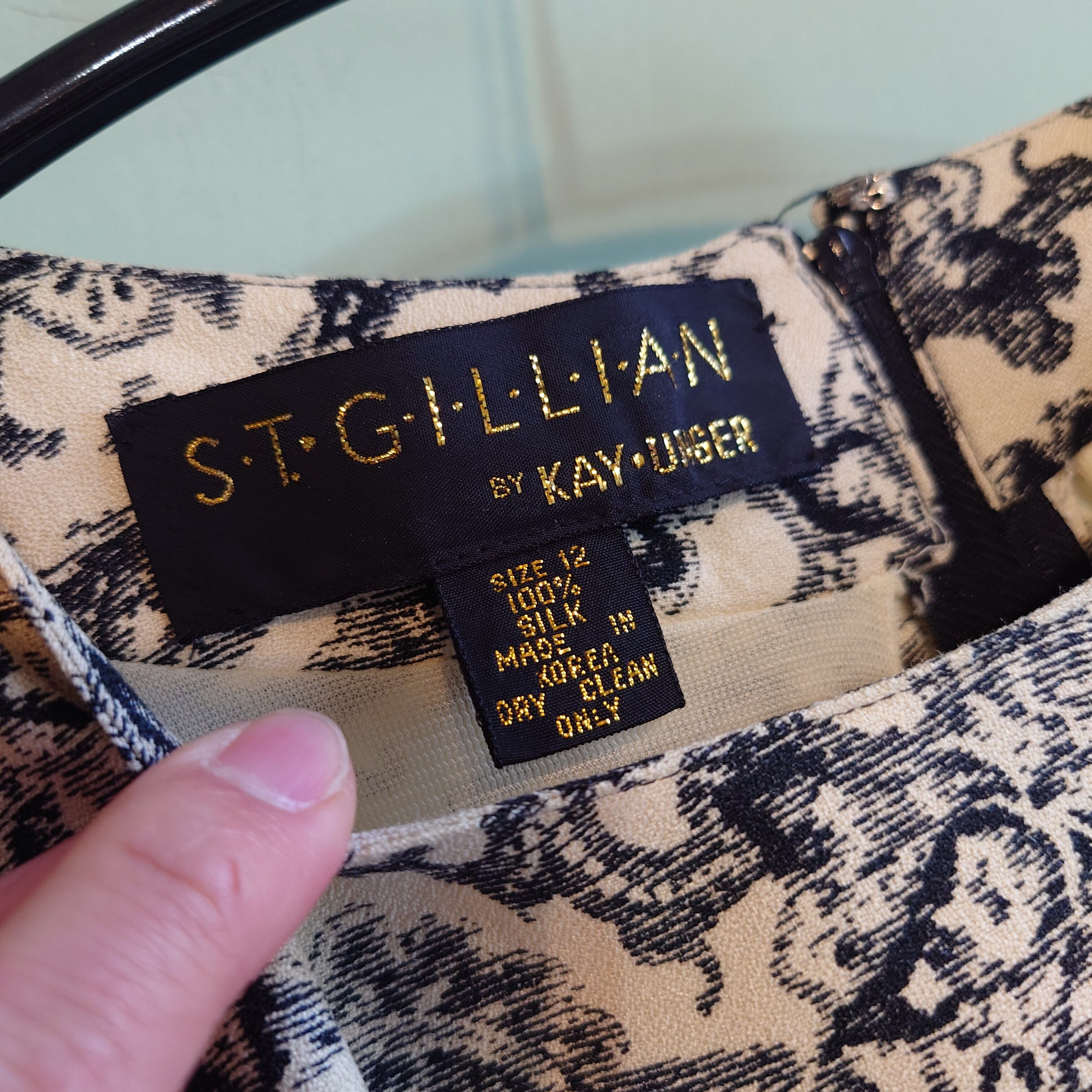 ST. GILLIAN 80-90s vintageヴィンテージドレス ペイズリー柄ワンピース シルクワンピース モノトーン