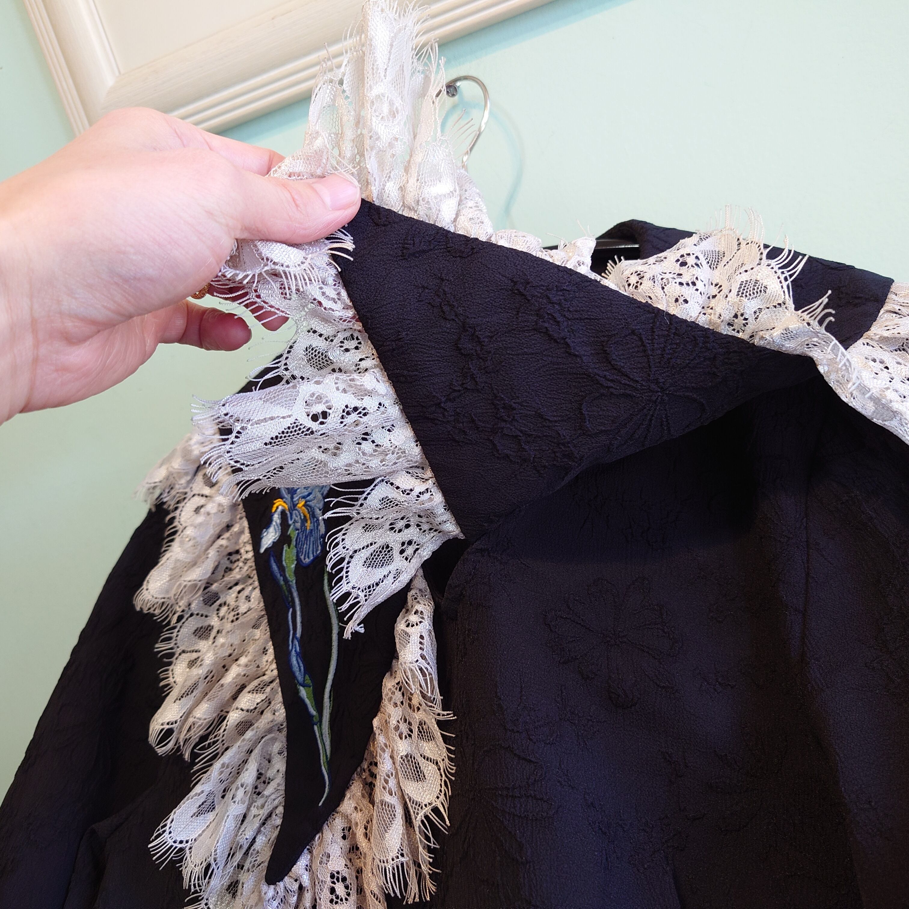 ◎ Liang San Shi チャイナワンピース 刺繍ワンピース レースワンピース 黒 総柄