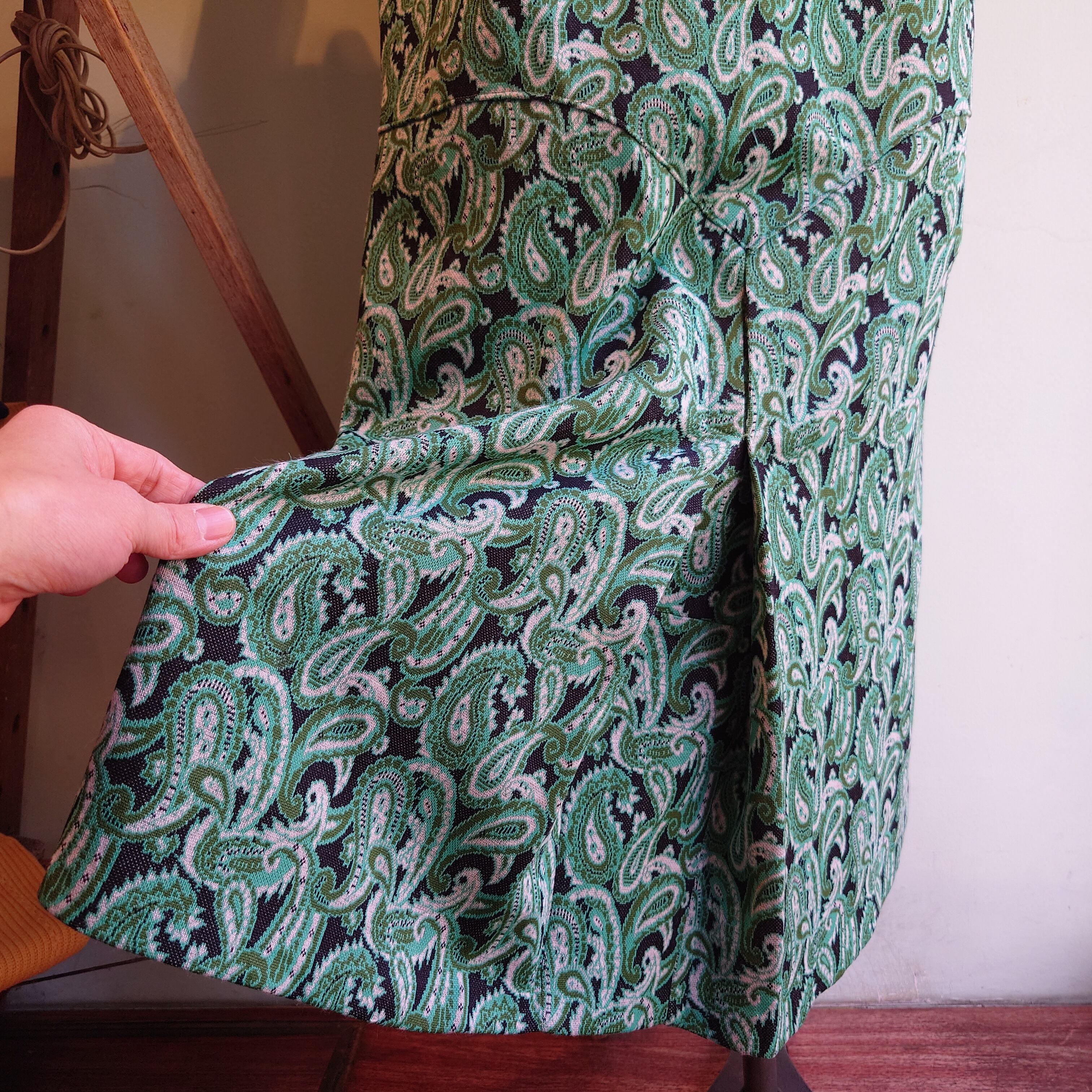 〜70s vintage ペイズリー柄 スタプレ素材 ヴィンテージドレス 総柄ワンピース 緑系 プルオーバー
