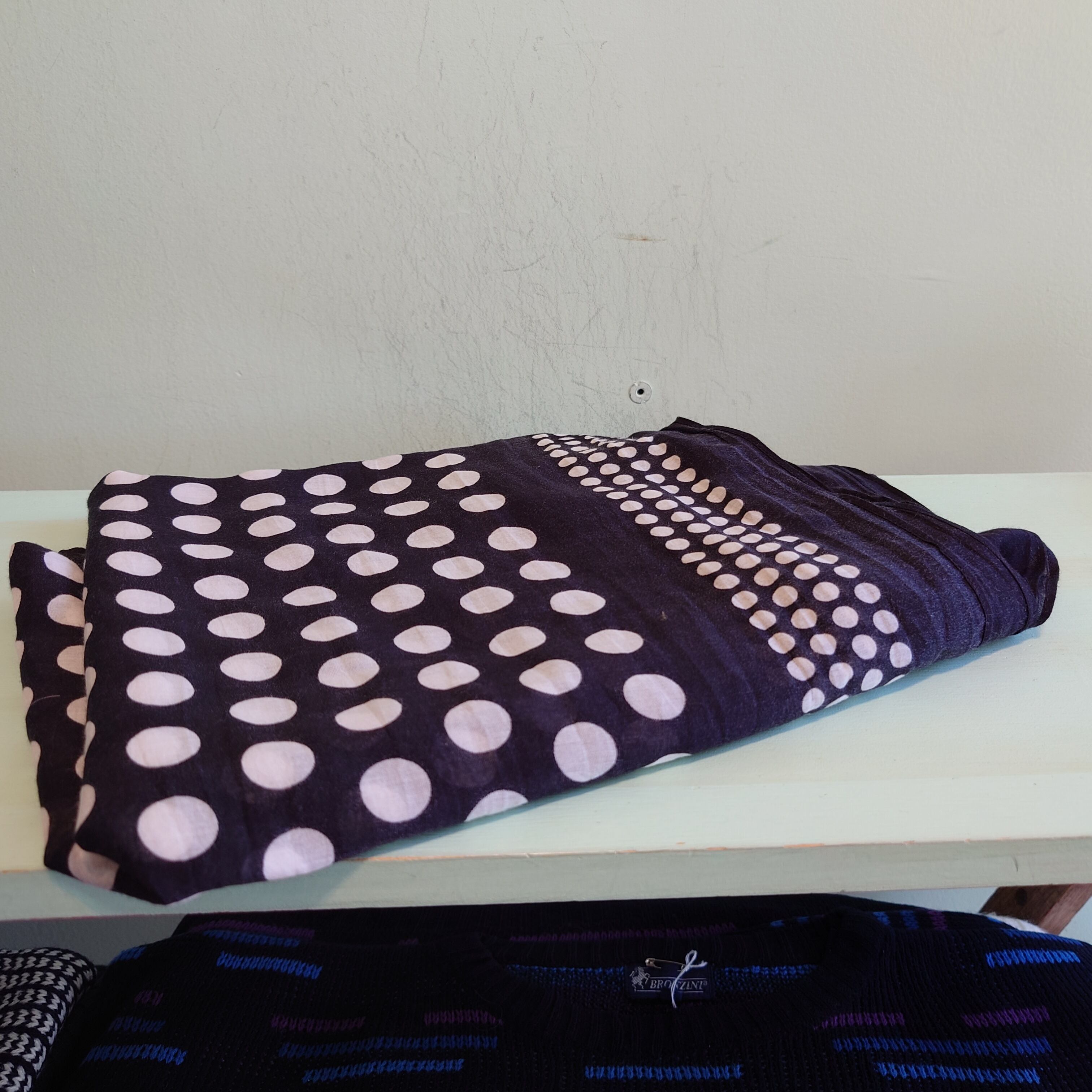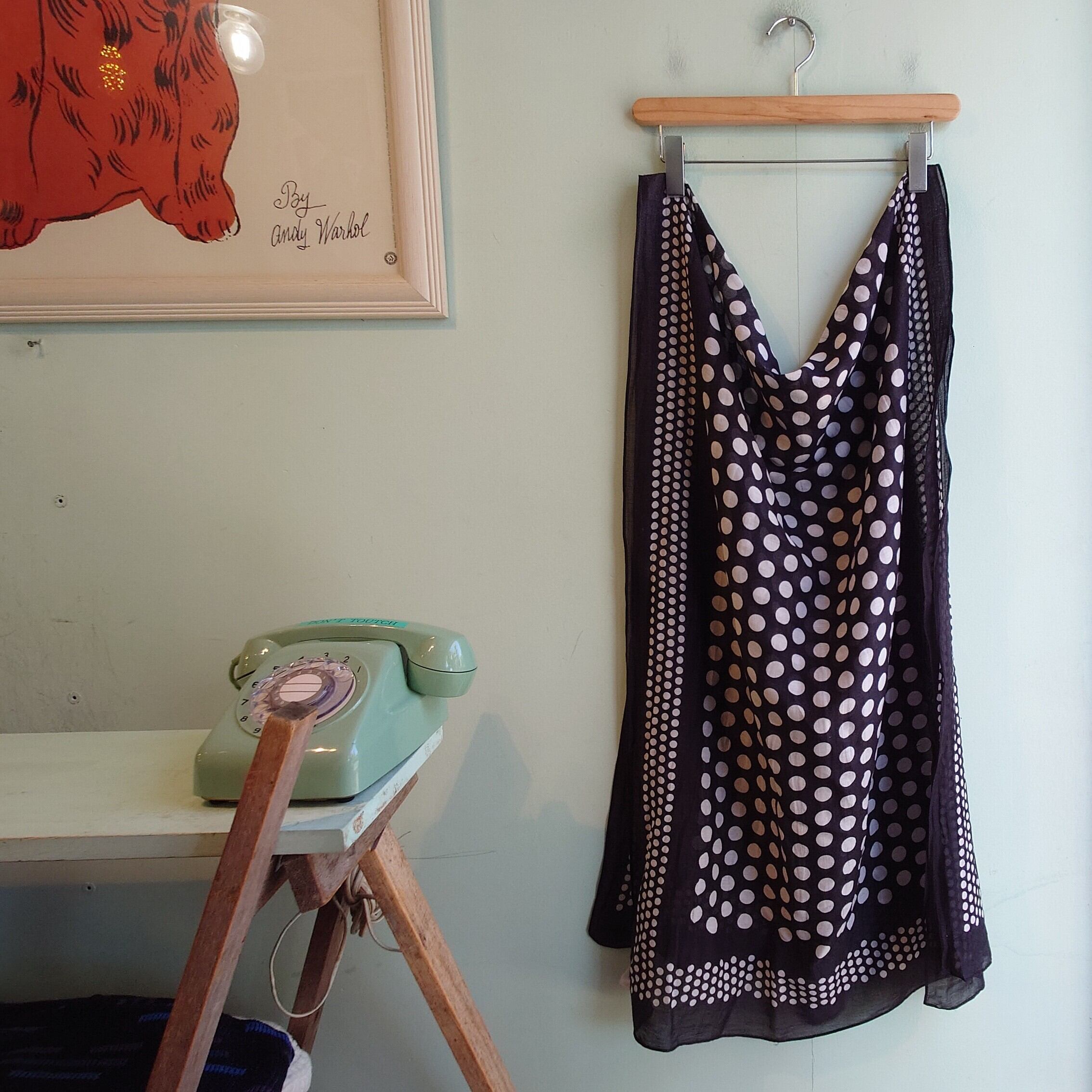 ラグジュアリー系ブランド、マイケル・コースのスカーフ/ストール。若干の絞り感のあるさらっとしたガーゼのような生地感と、モノトーンのドットが面白い。大判スカーフとマフラースカーフを混ぜたような特殊サイズもハイブランドならでは。