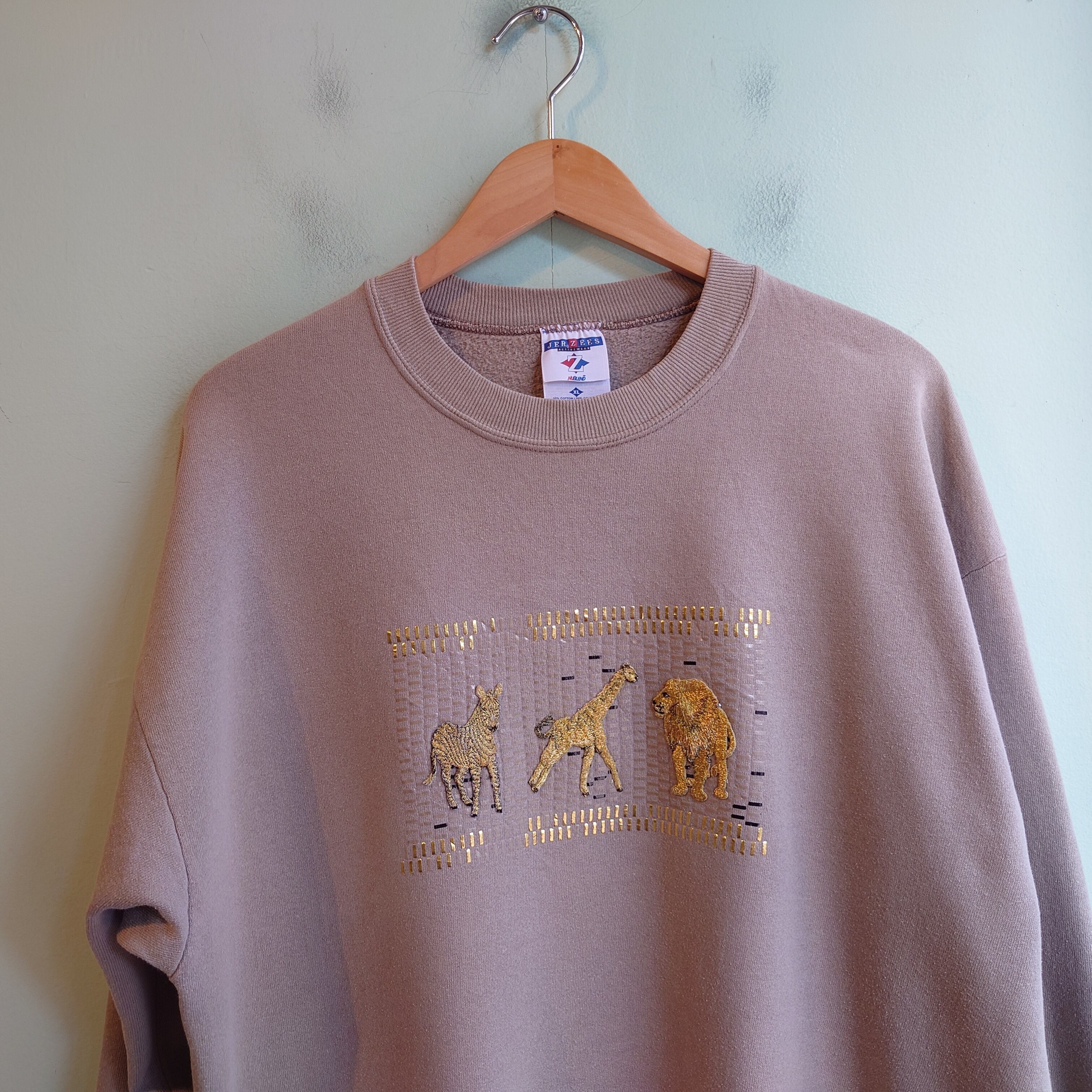 ◎JERZEES 90s vintage ヴィンテージスウェット デコレーションスウェット アニマルスウェット ベージュ ラメ USA製 XL