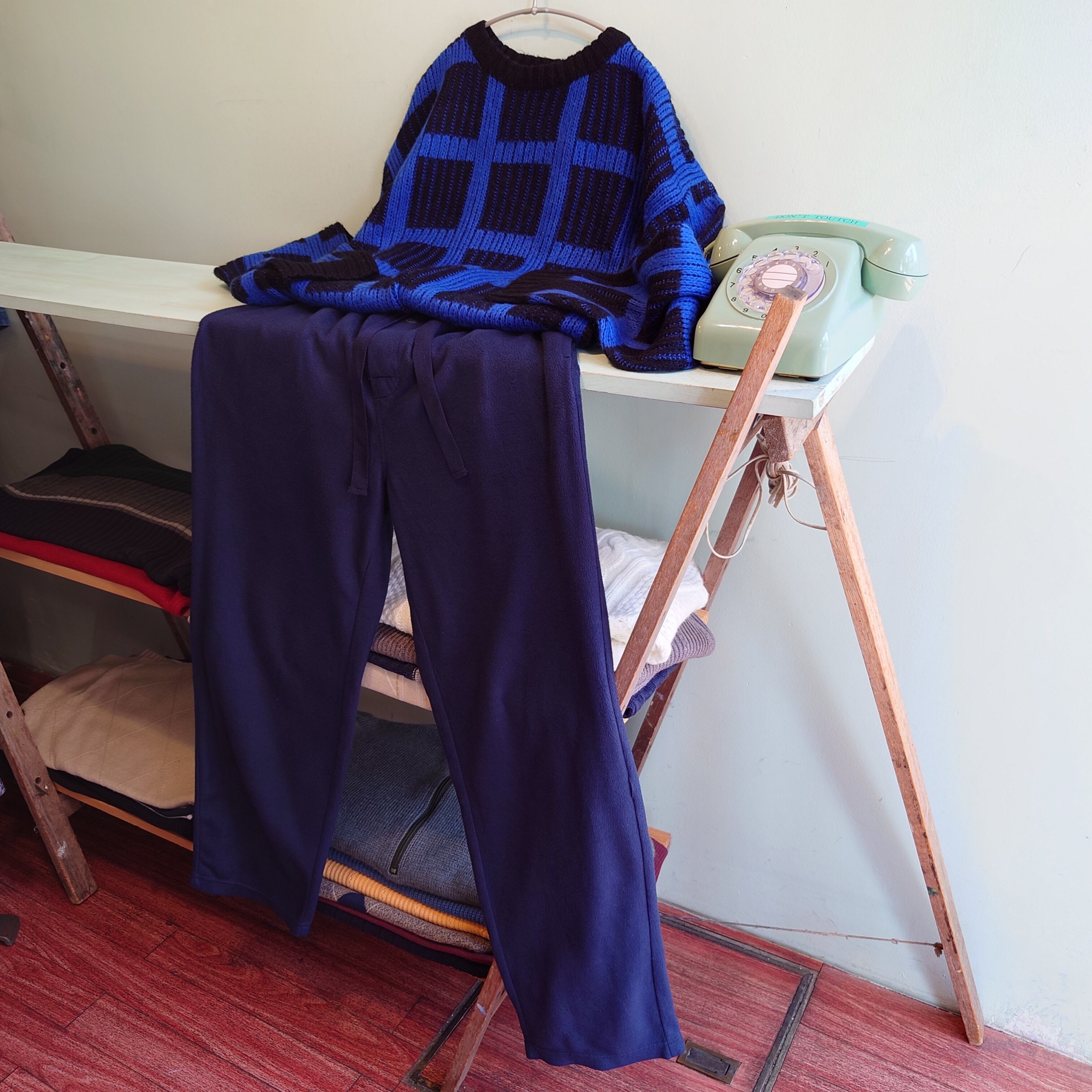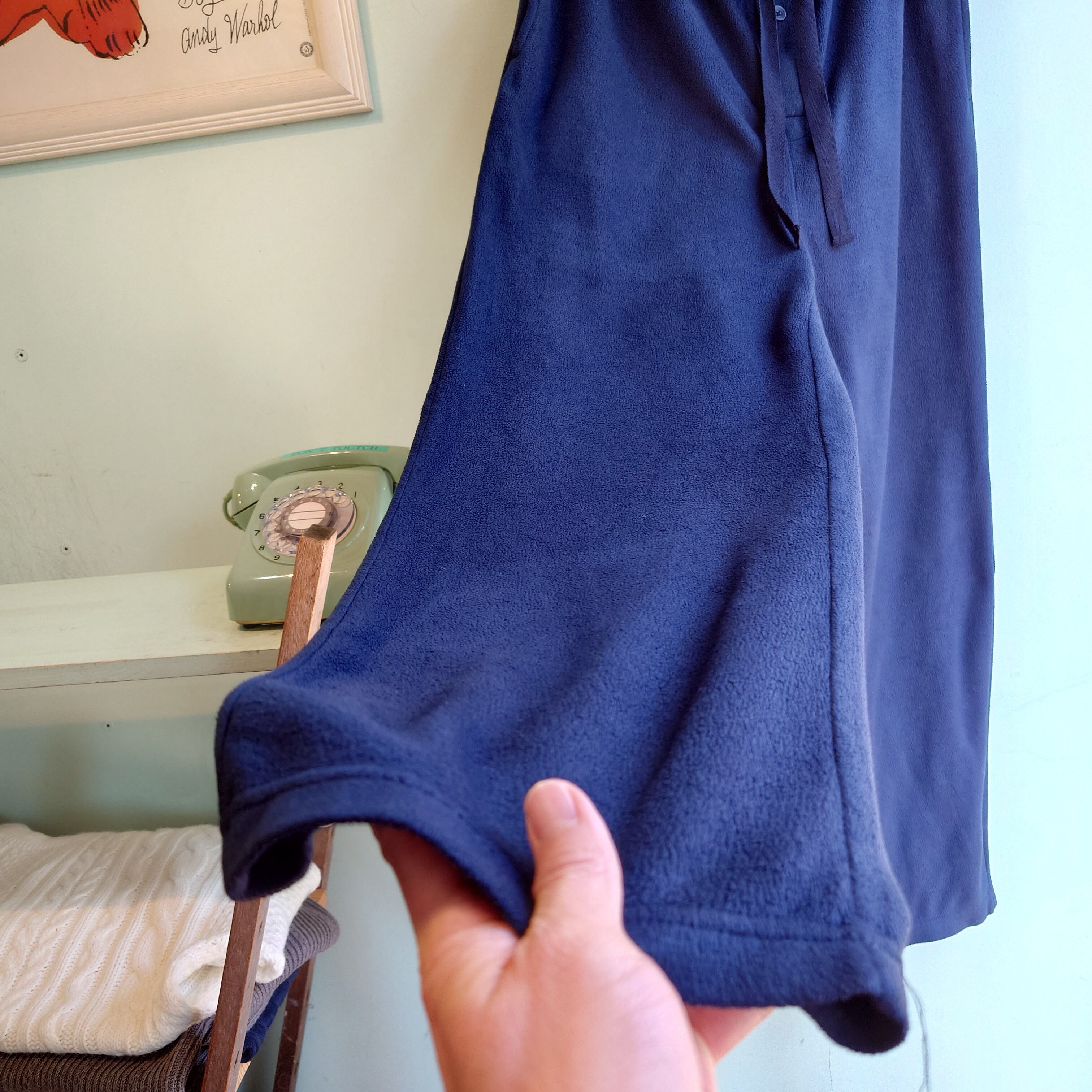 ◎Statements 00s フリースパジャマパンツ フリースイージーパンツ ネイビー ワイド系 M