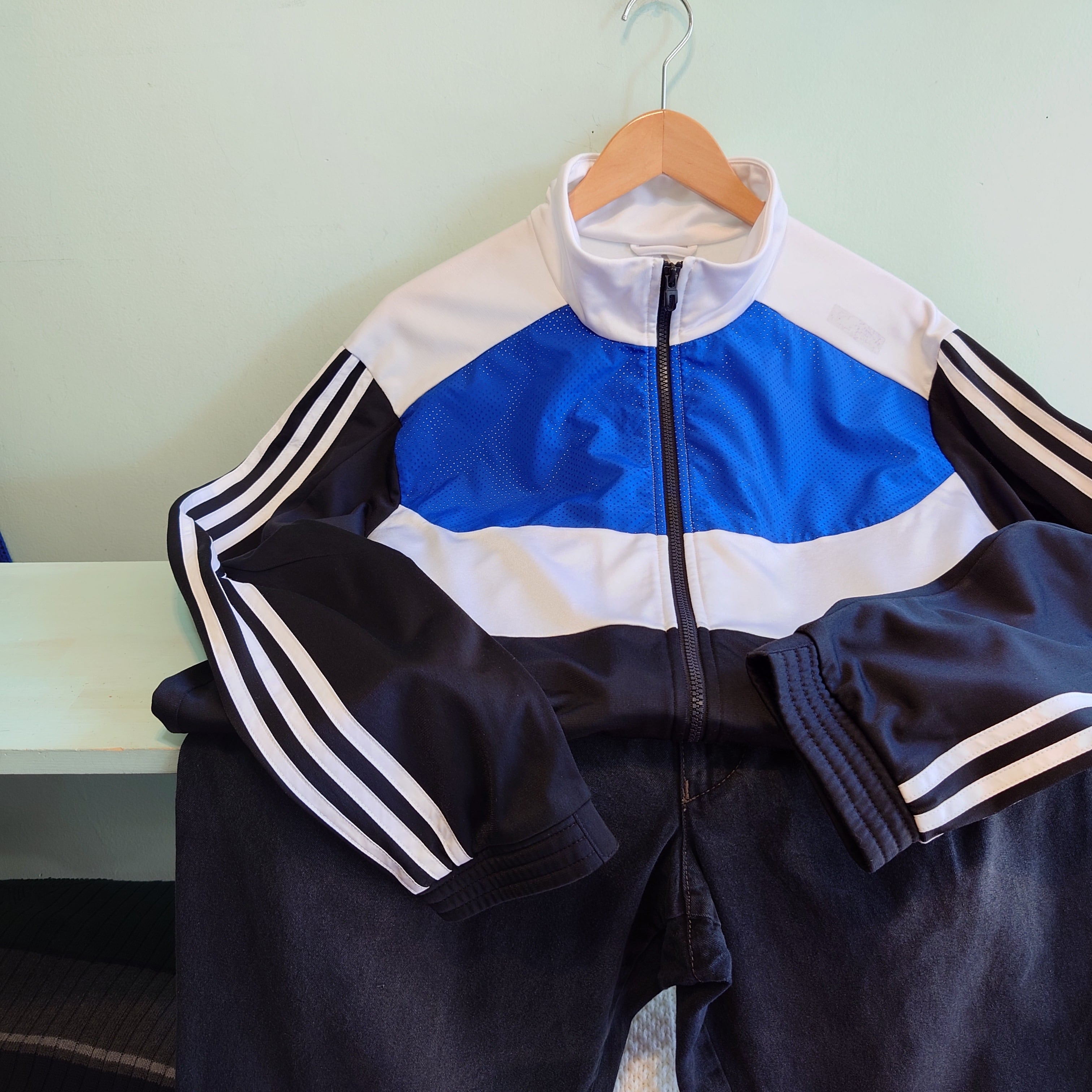 adidas トラックジャケット ジャージトップス マルチカラージャケット 白黒青 L サイドライン
