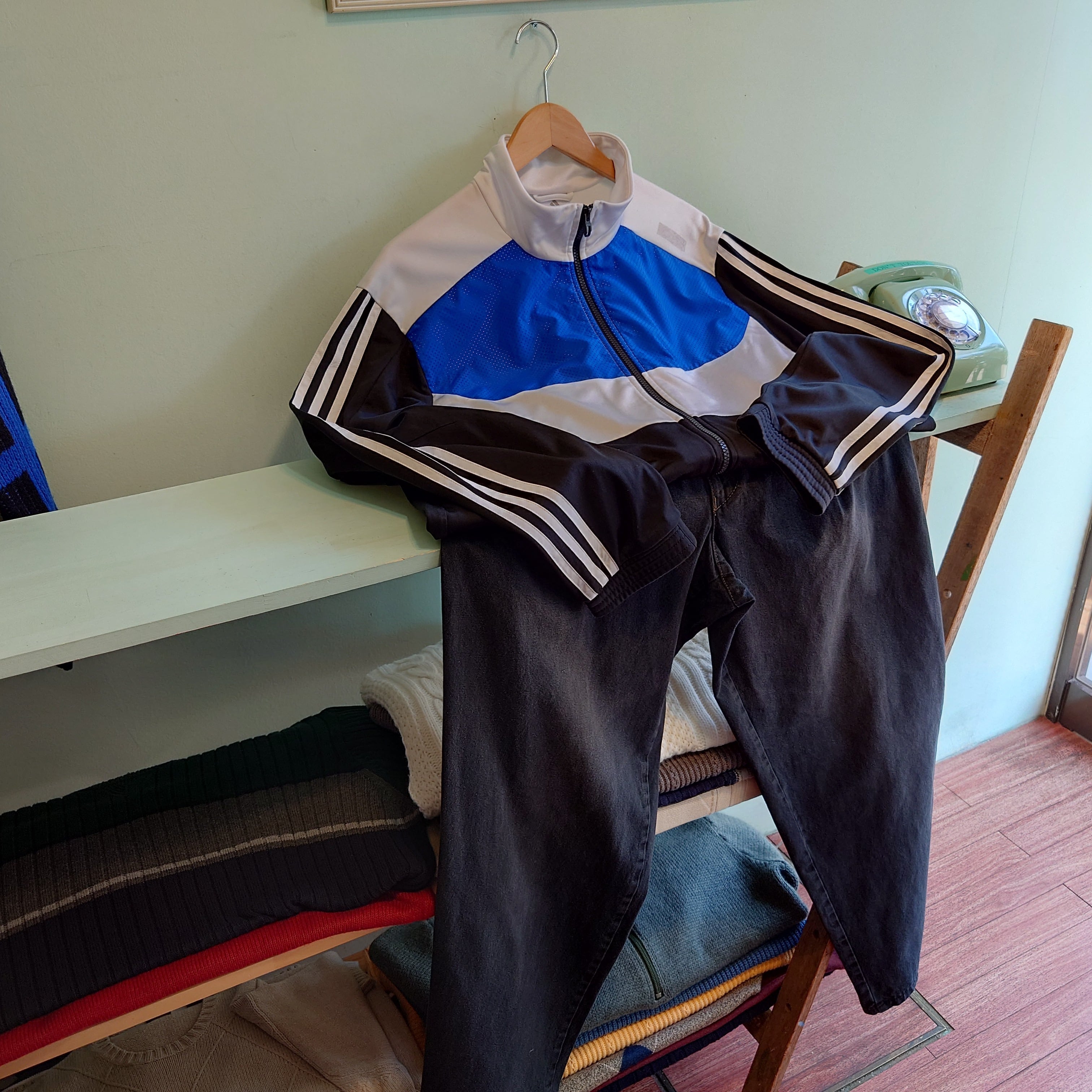 adidasのフルジップジャージ。オーセンティックなシルエットとマルチカラーにメッシュをインストールしたレアタイプ。合わせやすいモノトーンにフレッシュやブルーがかわいい、どの角度から見てもかっこいいデザイン。スウェットかわりにカーディガン風に、ジャケット風に、使いまわしも優秀なタイプです。
