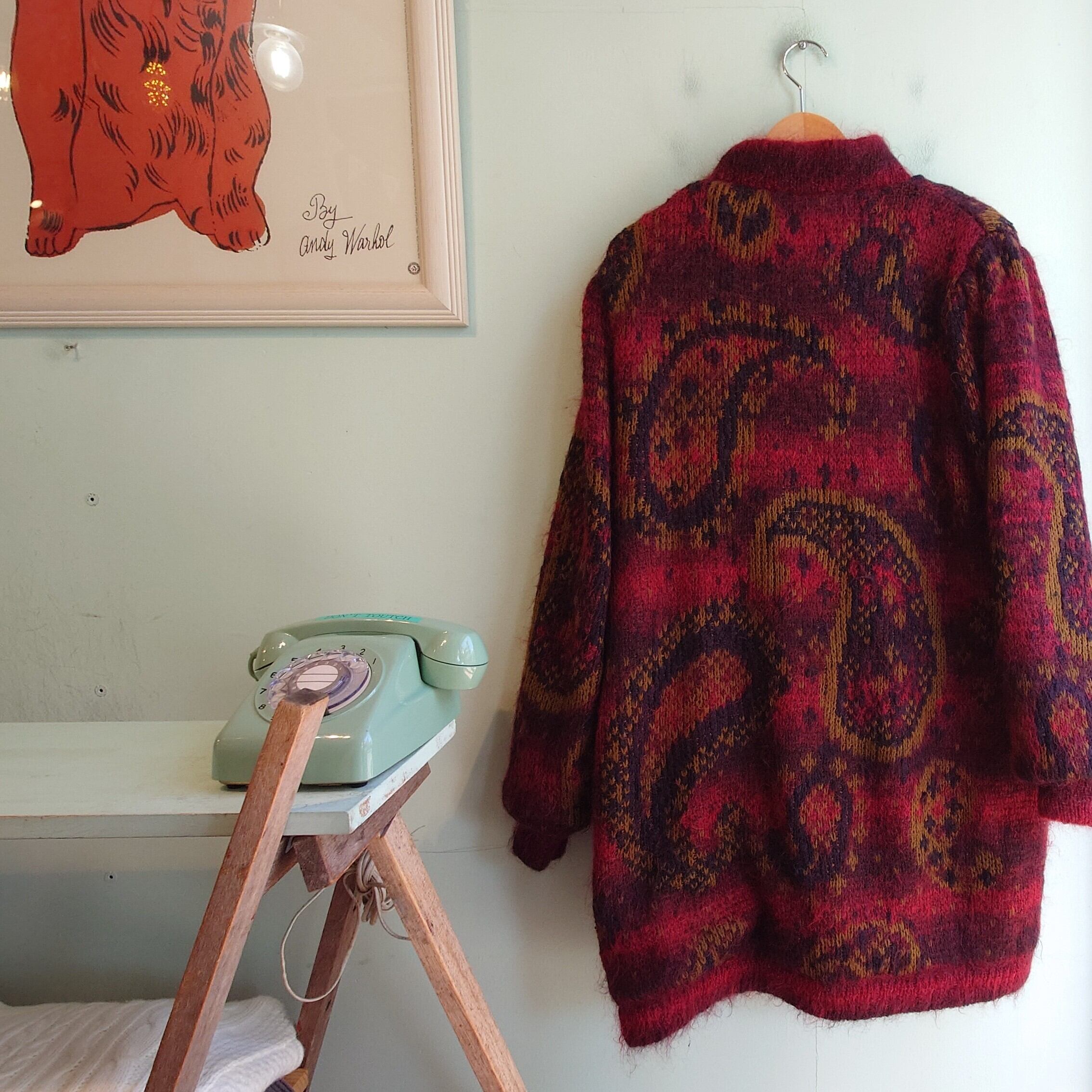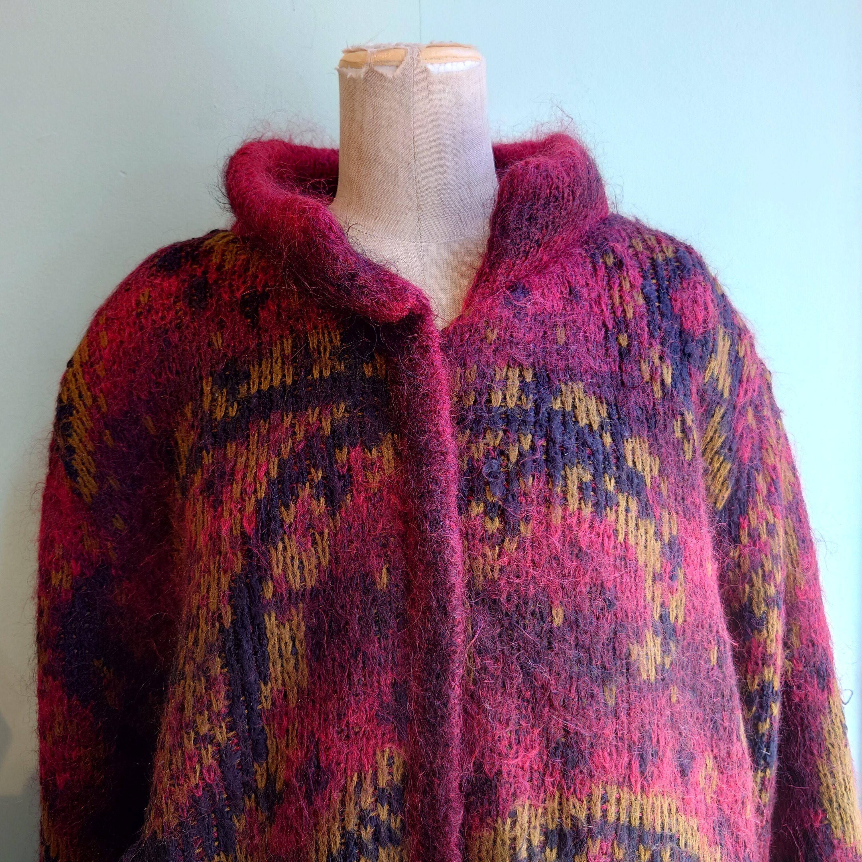 John Weitz 80-90s vintage モヘアニットアウター ニットコート 総柄ニット レディースM