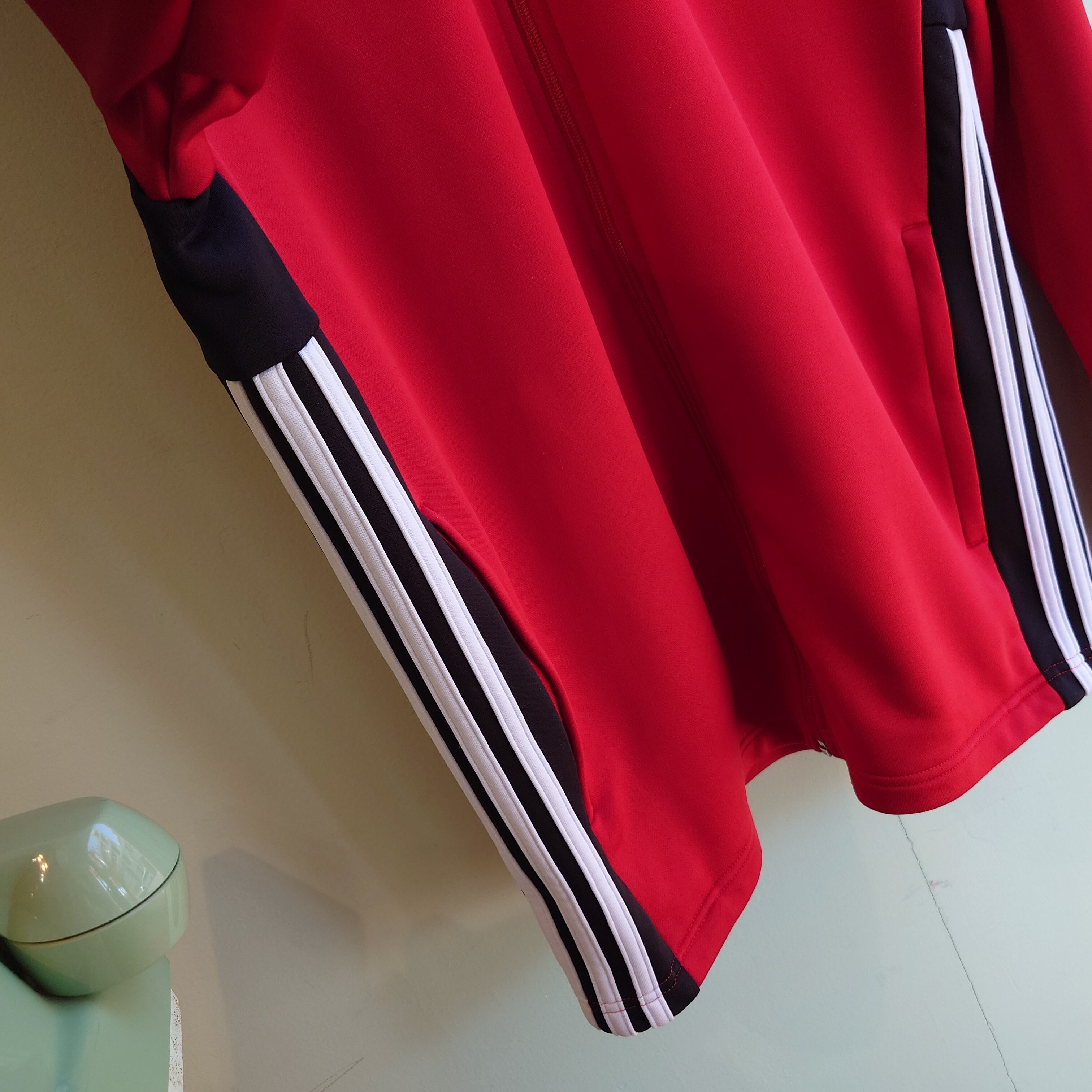 adidas トラックジャケット ジャージトップス フルジップジャージ 赤 黒 白 マルチカラー L