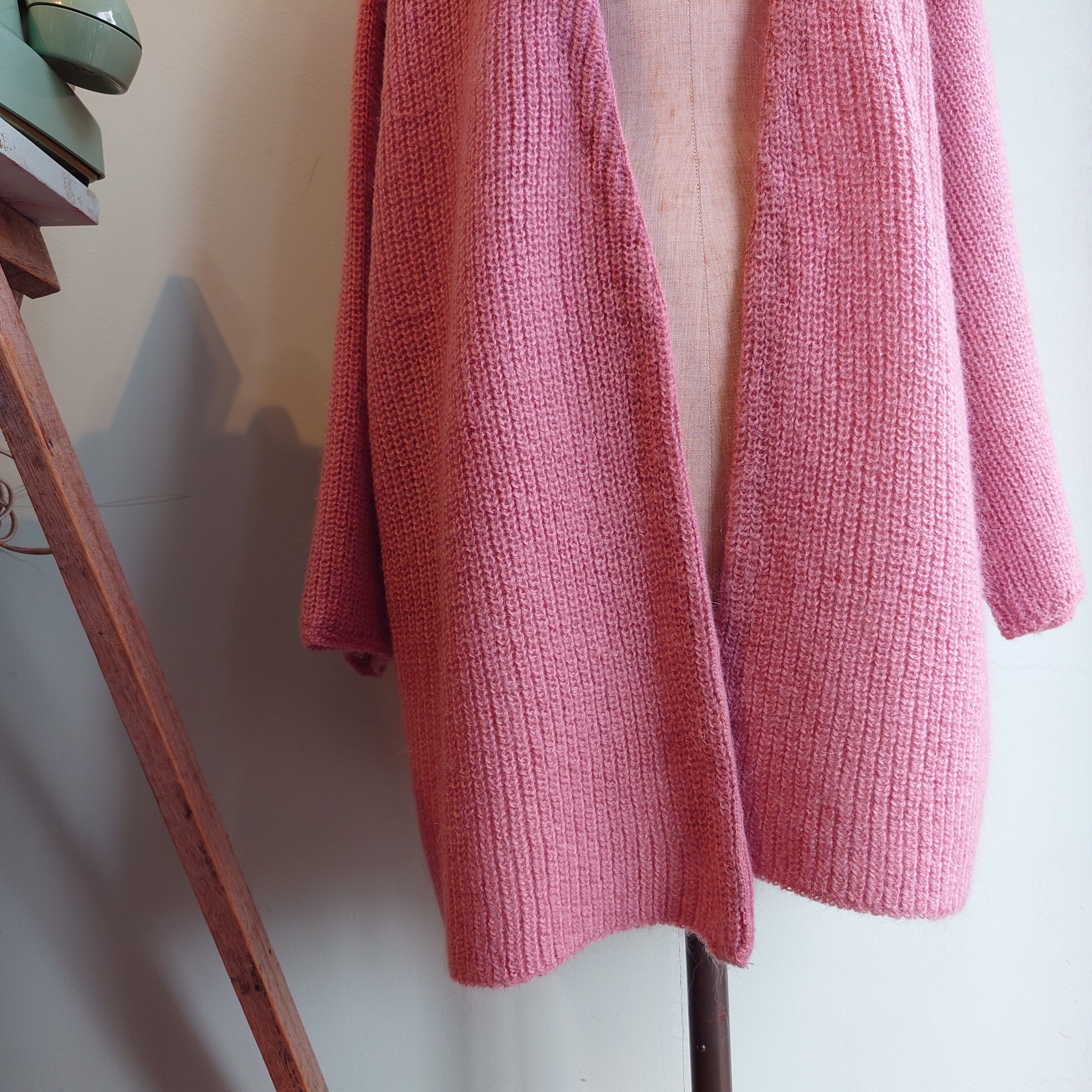 80〜90s vintage ユーロ系 モヘアニットカーディガン モヘアセーター ニットガウン ピンク系