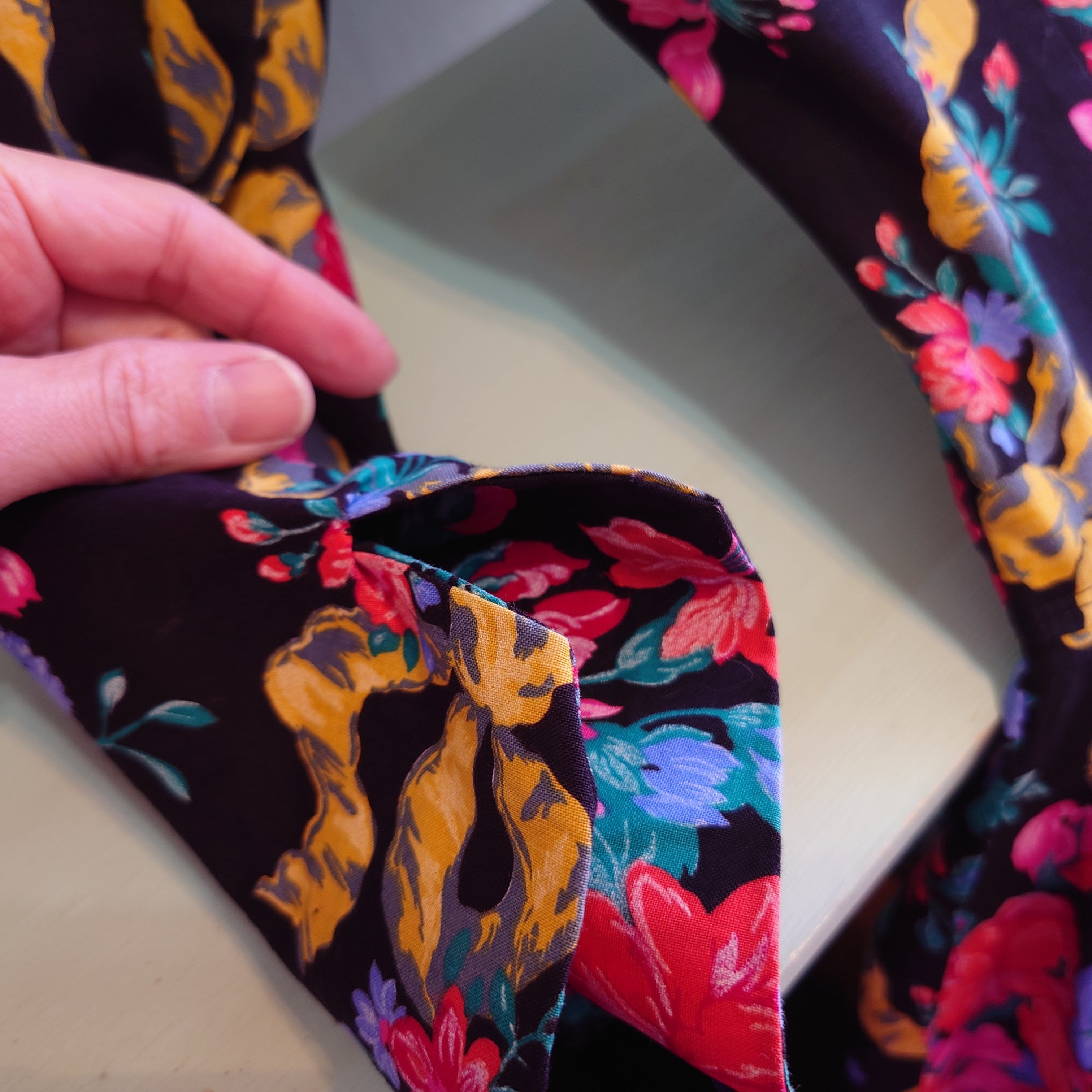 ◎〜90s vintage フラワードレス 総柄ワンピース パフスリーブドレス 黒 花柄 ハンドメイド系